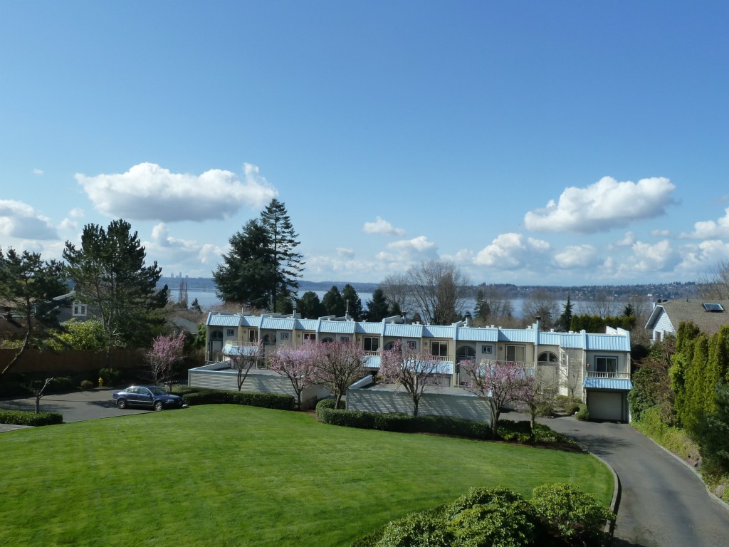 Price just reduced. Imagine a view +High End Remodeled finishes: Gourmet Kit granite counter tops, SS applncs, Delta touch faucet. Hickory flrs, new carpet, iron railings, Travertine/granite tile bth, Bosch Washer/Dryer. Panoramic views of Lake/Mnts/Skyline from both levels. Both Bedrms enjoy own luxury bth & walk-in closet. Lrg finished Bonus rm ideal for fitness/media rm. 2 car garage, garden courtyard. Just steps to Starbucks/PCC/Metro Market, Google. Walking distance to downtown Kirkland.