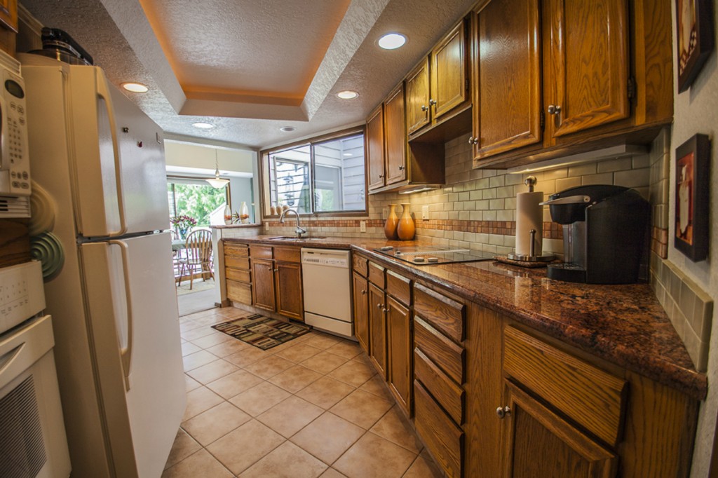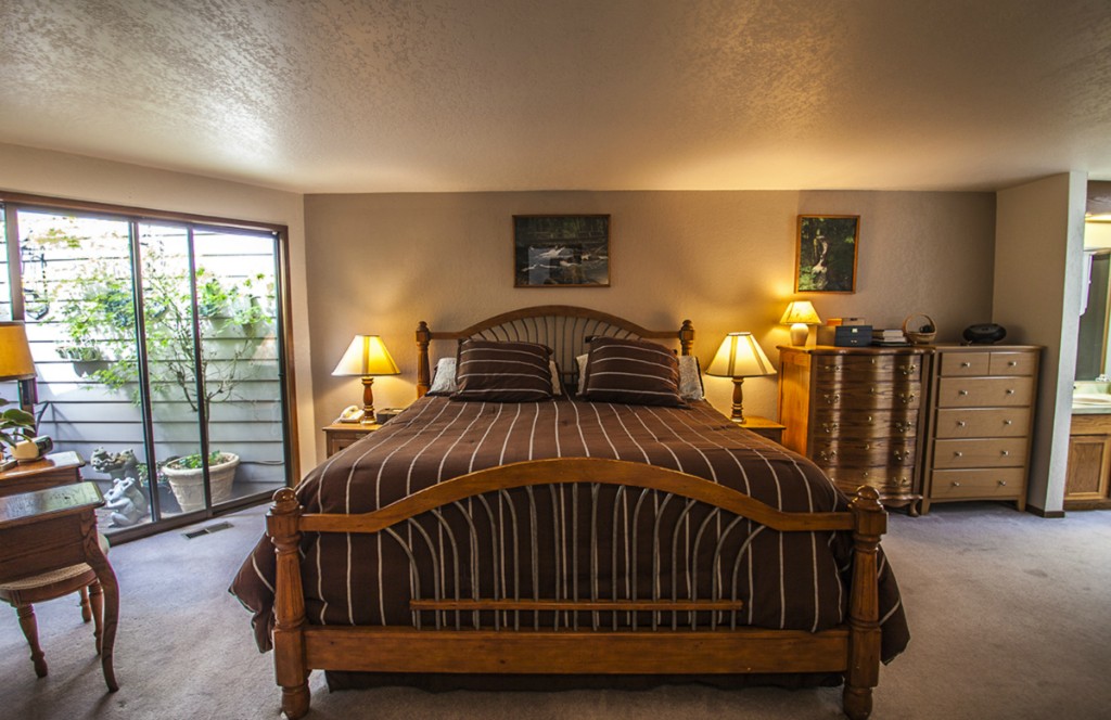 Welcome home to the heart of Mill Creek. This secluded gated-entry condo community boasts unobstructed views of the country club's 4th fairway. Property features soaring vaulted ceilings w/exposed beams, your own private atrium accessible via master bdrm; skylights, upgraded kitchen replete w/slab granite countertops, tile backspash & undermount sink. Basement includes office space & bonus room complete with 3/4 bath & wet bar. Large covered patio and deck ideal for year round entertaining.