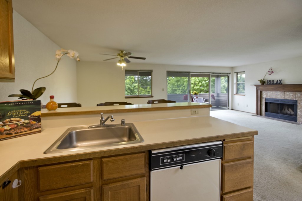 Location, location, location. An easy walk to downtown Kirkland restaurants, shops and transit stations. This 3 bedroom, corner unit is flooded with light and has a nice deck to enjoy the beautiful sunsets. Priced to sell, it's all original but a similar updated unit sold for $400K. 2 covered parking spaces and a nice storage closet off the private deck. Extra wide entry door and hallway allow for wheel chair access. Great investment property or customize and create a gorgeous home