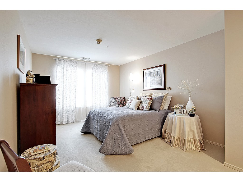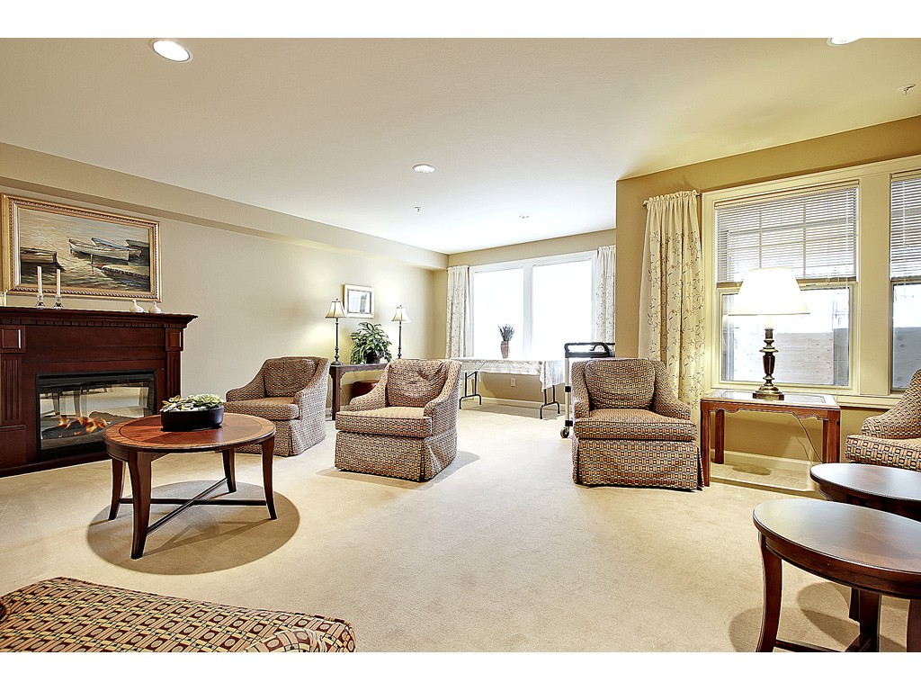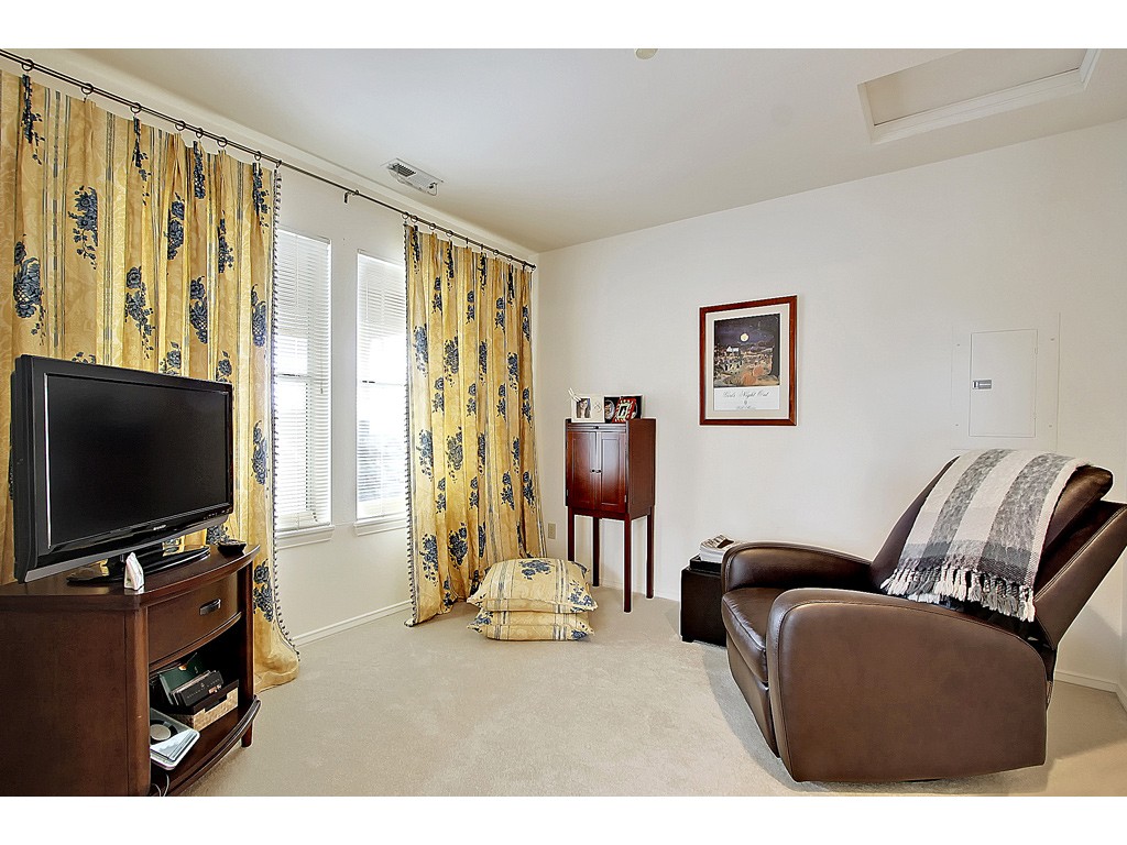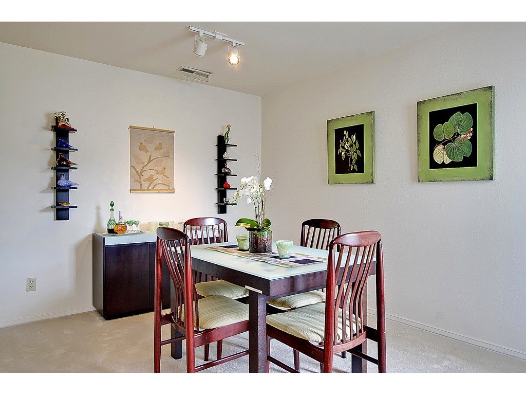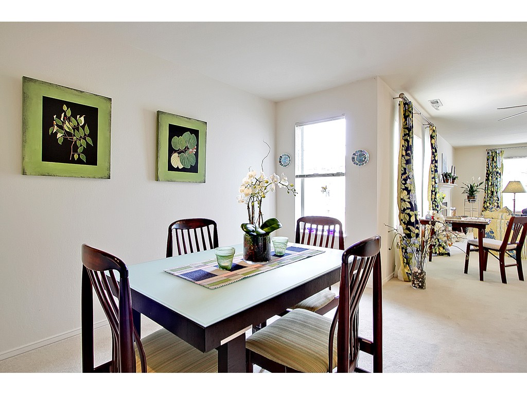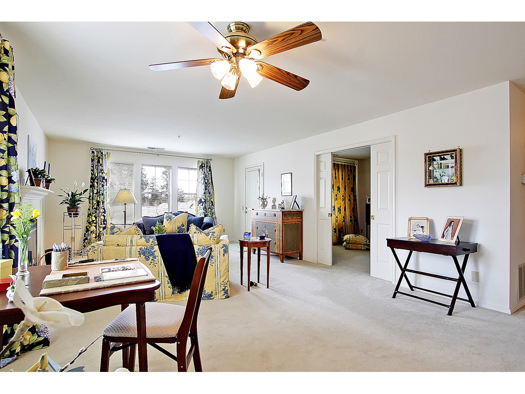 Beautiful top floor unit with nice territorial views. Great condition, light and bright with lots of windows and open floor plan. Spacious kitchen opens to dining room and living room. Nice buffet counter with storage beneath. Can have both casual and formal dining. Second bedroom has pocket doors and a nice closet and can double as a roomy den. Master suite has 2 closets and a big bath with walk-in shower. 2nd full bath. Cozy fireplace for winter and new deck for summer. Garage, secure bldg.