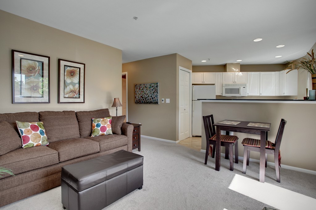 Bright & cheery, super sweet condo blocks from Greenlake in desirable Tangletown. Immaculate unit, one spacious bedroom w/nice big wall of closets. Perfectly sized full bathroom, small entryway for key placement, open kitchen and end unit means you are bathed in light, light, light! Washer/dryer in unit, one parking space in common garage and storage. A very cool private deck to sit and sip your coffee or cocktails. Incredibly close to everything you need. Smaller bldg. situated on the corner.