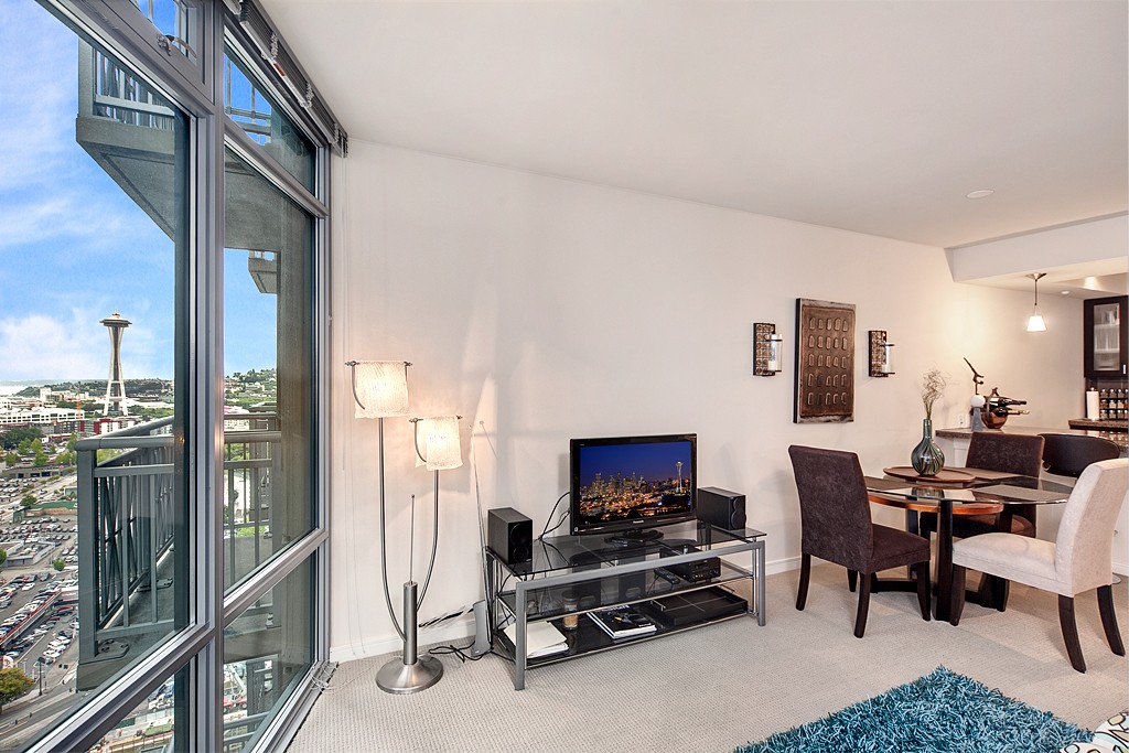 Enjoy Puget Sound & Space Needle views high up on the 28th floor of the renowned Cosmopolitan. The open functional floor-plan features floor-to-ceiling windows, contemporary finishes, espresso hardwoods, slab granite counters, quality stainless steel appliances, a den alcove off the entry & master suite w/ private view balcony & walk-in closet. 24-hr concierge, gym, sauna, hot tub, party room, business center & fabulous roof deck. No rental cap! Walk to Amazon, Whole Foods & Pacific Place.