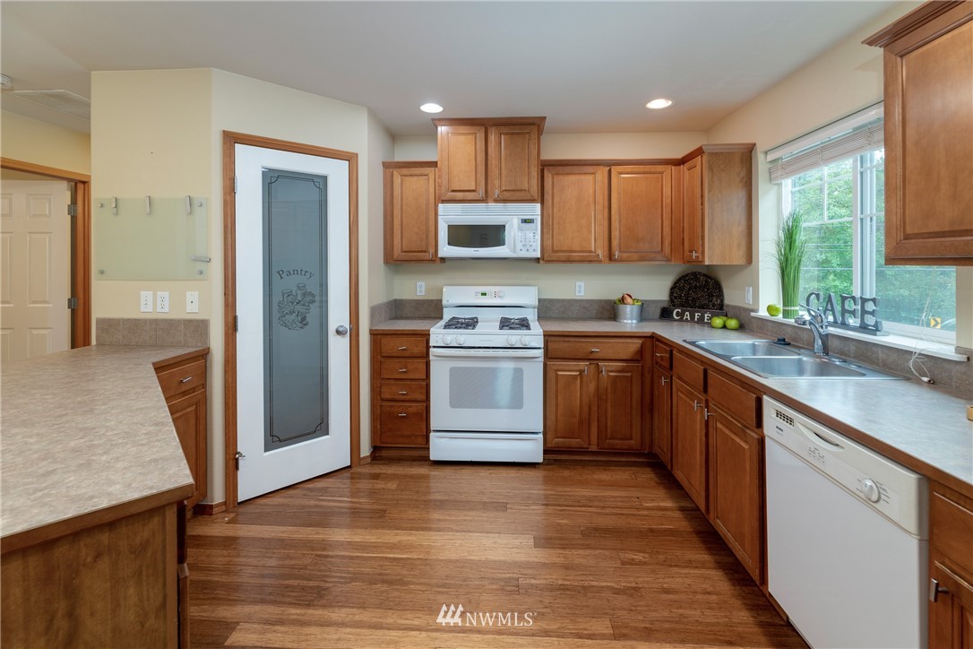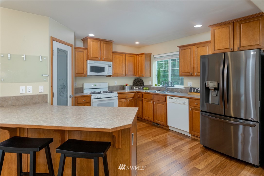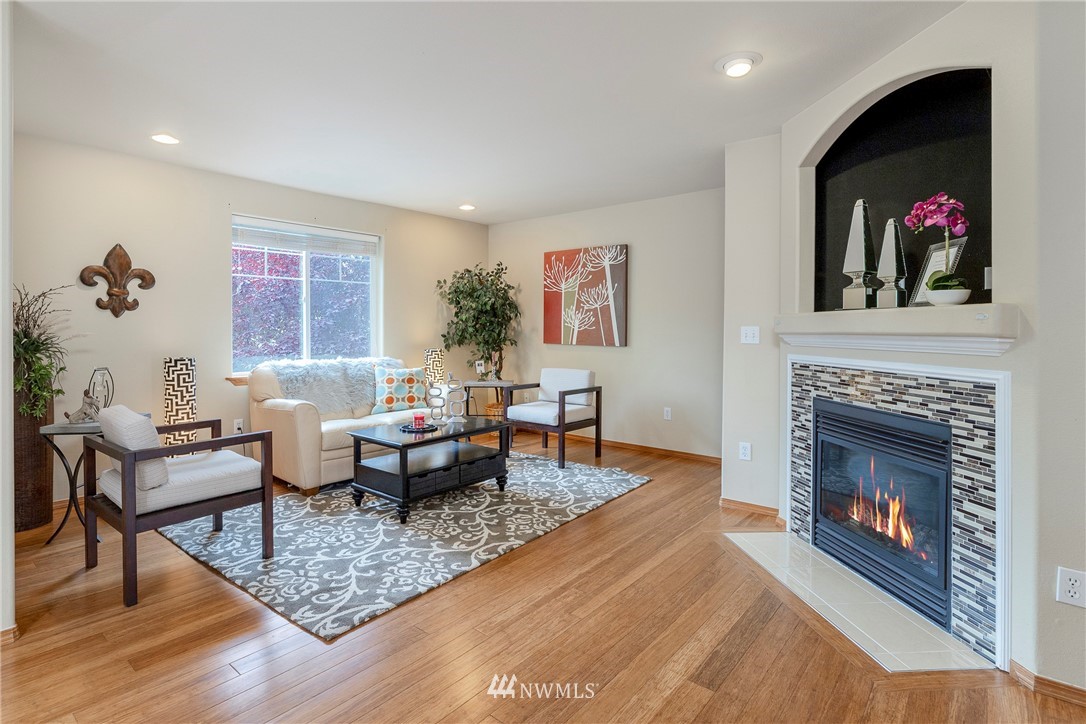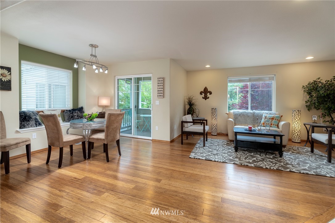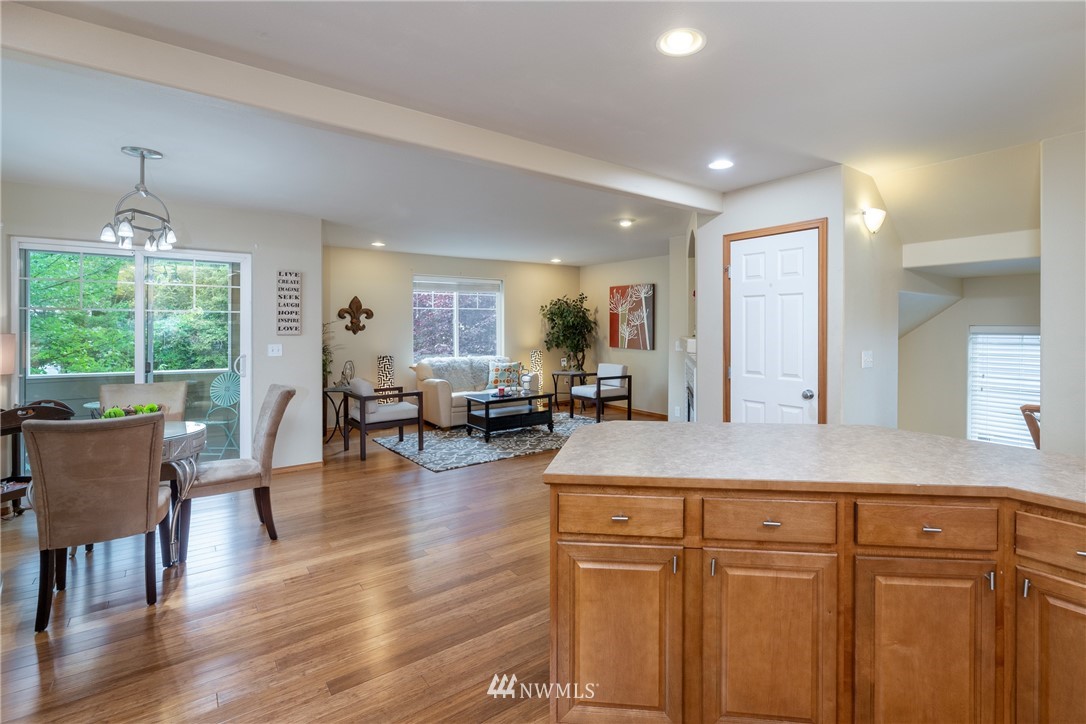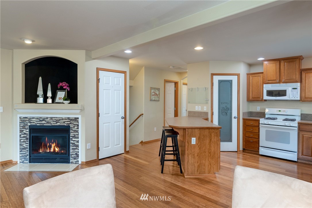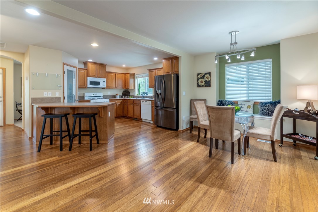 Main level w/beautiful bamboo flooring, a private office/den & kitchen w/pantry & breakfast bar opens to the family room w/fireplace & dining room!