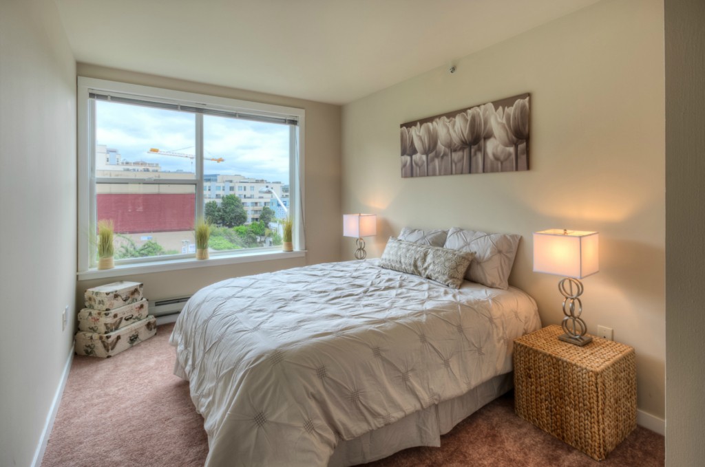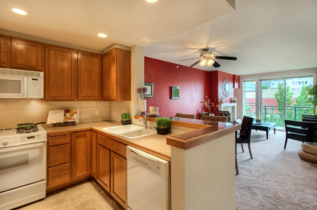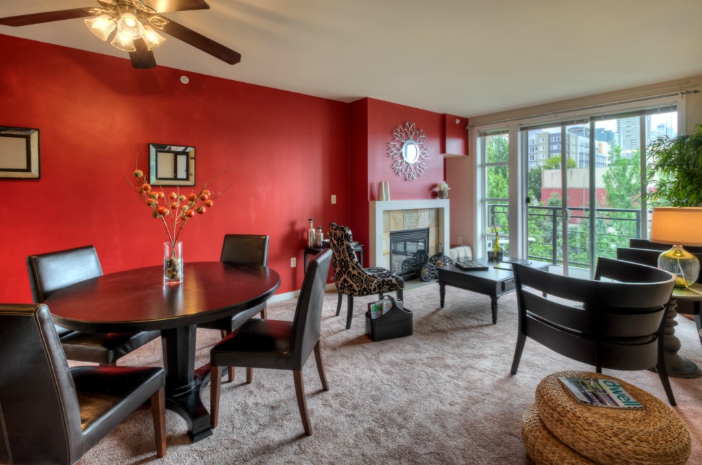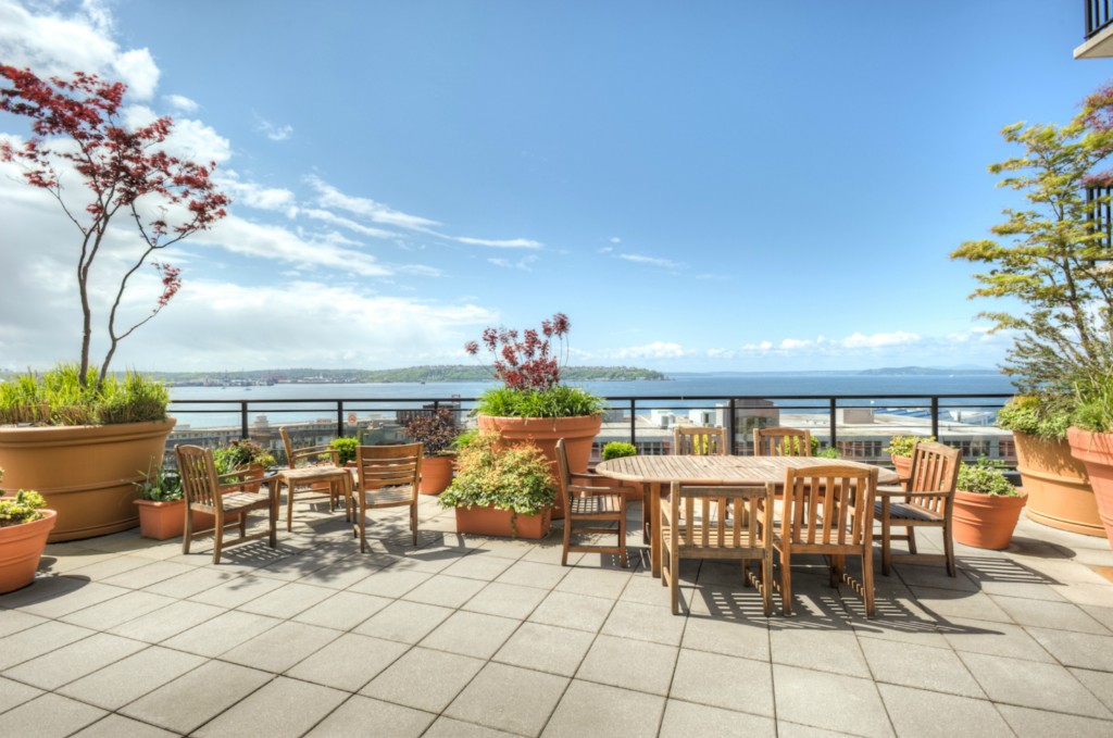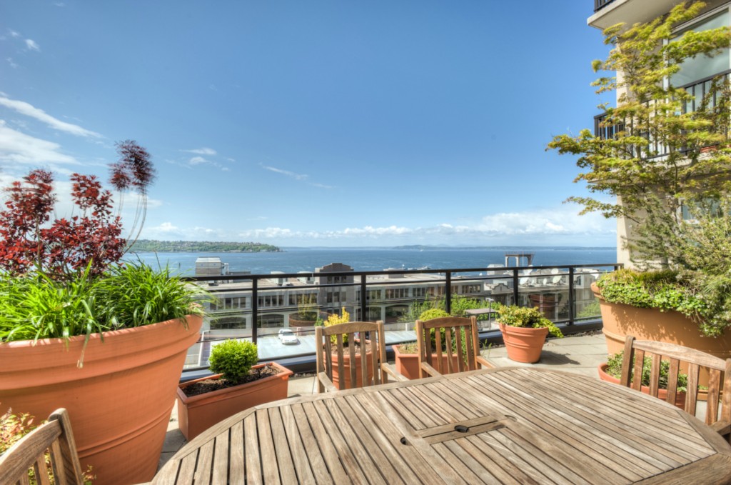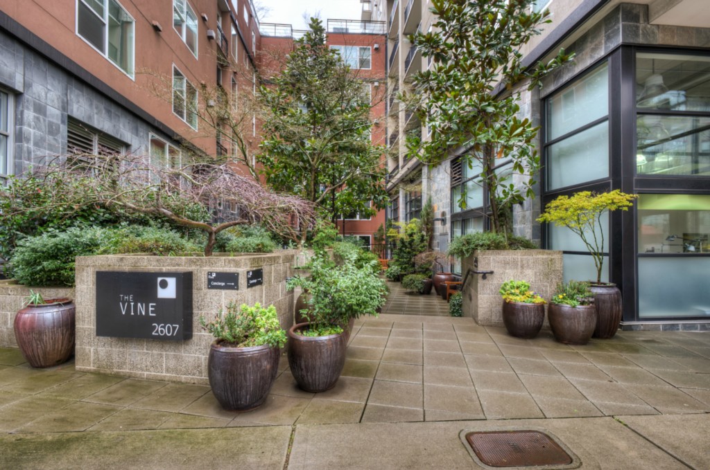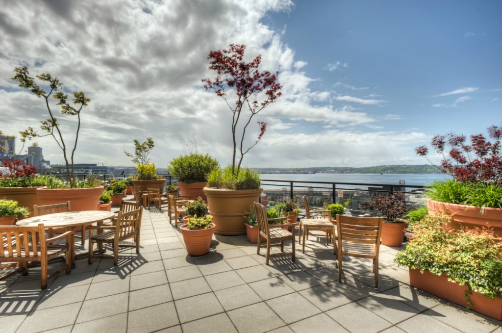 Fabulous in-city living in the award-winning Vine Bldg! This 1 bdrm/1 bath + Den/Office offers gorgeous southerly views of the Sound and downtown City lights. Spacious kitchen w/ breakfast bar/gas cooking opens to your light-filled dining area and living room feat a gas FP and view balcony. Luxury amenities incl incredible rooftop deck, gym, 24 hr concierge. Secured pkg/extra storage. 1 blk to MS Connector. Steps to Olympic Sculpture Park, Pike Place Mrkt, shopping, restaurants. Walkscore 92!