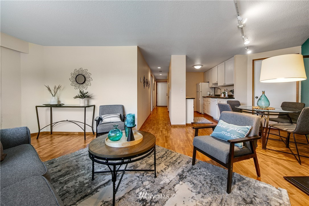 Welcome to this move-in ready condo, steps from the heart of Greenwood! Updates include: kitchen with granite countertops, California Closets, vinyl windows and laminate wood flooring. Ground floor unit with direct entry and one off-street parking space, located just outside unit. Spacious living area with Western exposure and dining space off kitchen. A rare side by side washer/dryer utility room with ample storage space. Don't miss the opportunity to live in this incredible neighborhood, close to restaurants, grocery, future light rail and more!