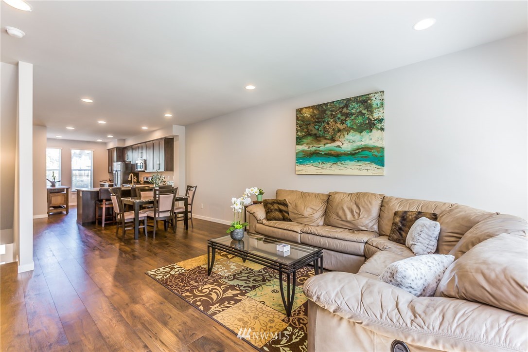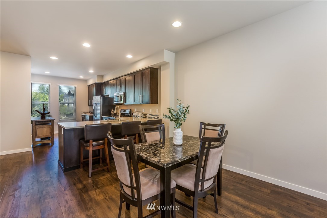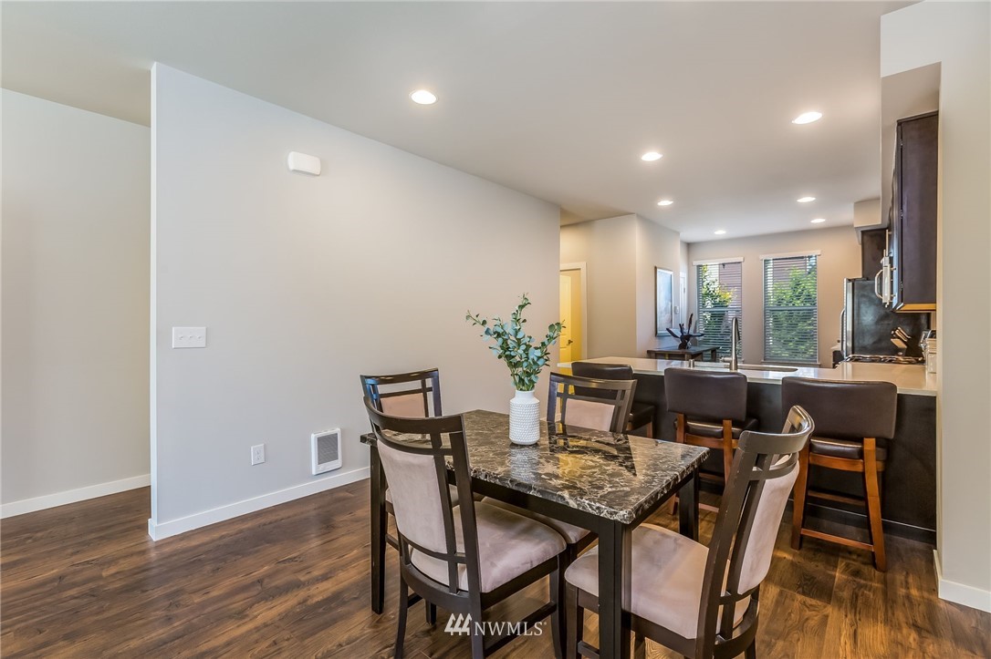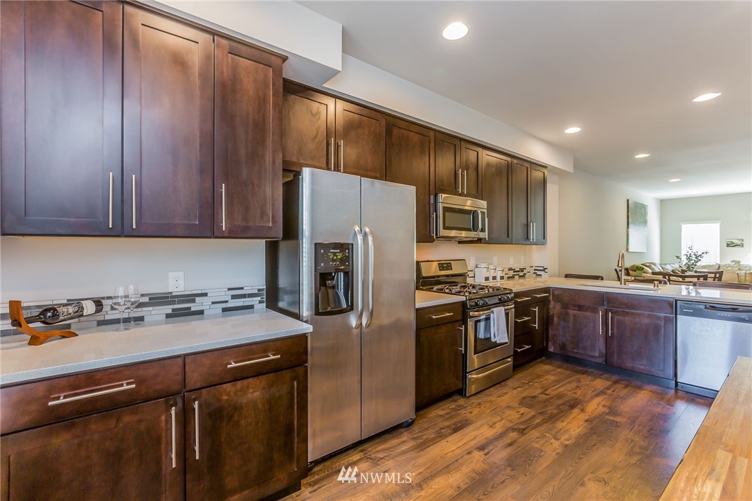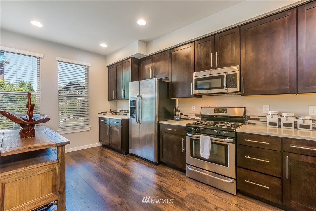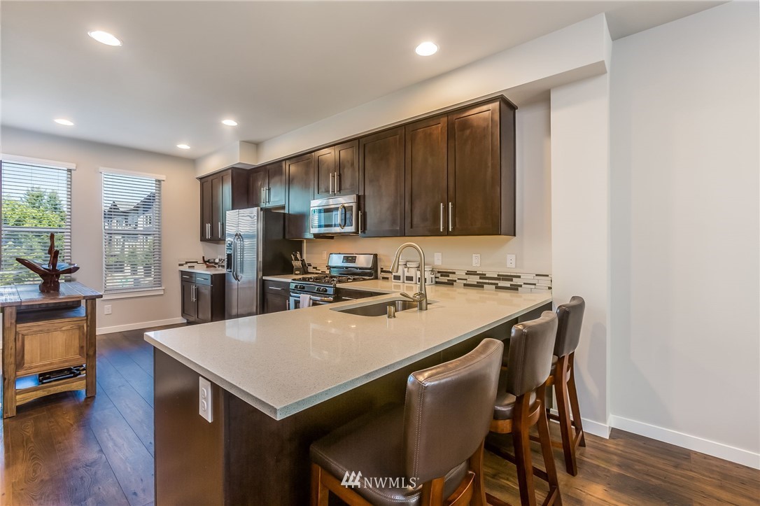 Pristine and impeccably maintained 2 bed, 2.5 bath townhome in Arcadia Terrace! Open-concept living makes entertaining easy in this extra large kitchen overlooking the dining and living rooms. Counterspace galore, giant breakfast bar, and refined finishes including laminate hardwoods, quartz counters, SS appliances and contemporary hardware. Upstairs owner’s suite boasts side-by-side closets and a luxurious full bath. Generous second bedroom lives like another master suite. Convenient upstairs laundry, lovely balcony for BBQing, tandem attached 2-car garage. Community ammenities include playground, soccer field, basketball court. Lake Stickney and dog park steps away. Close to Boeing and Paine Field. Mukilteo School District!