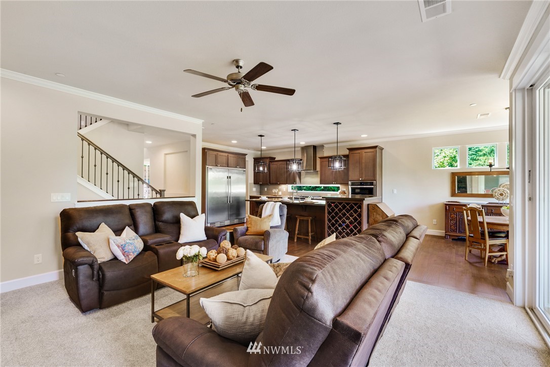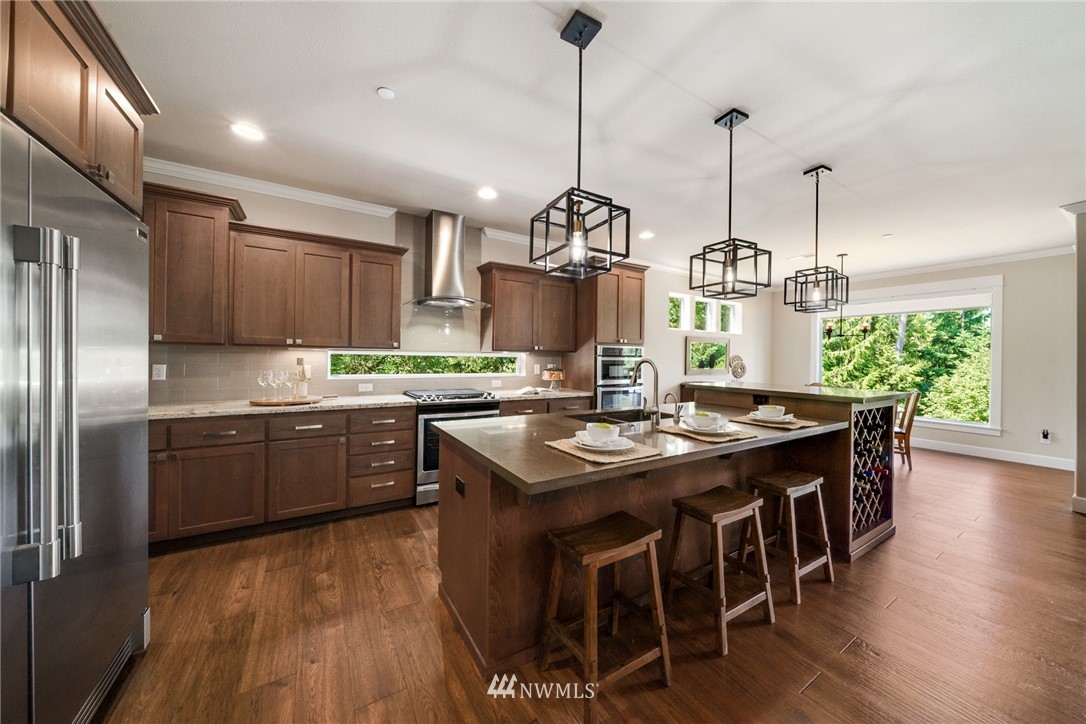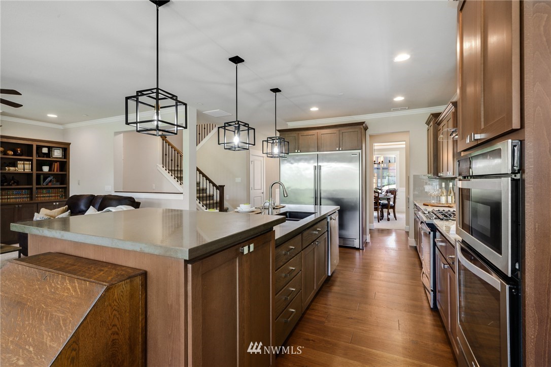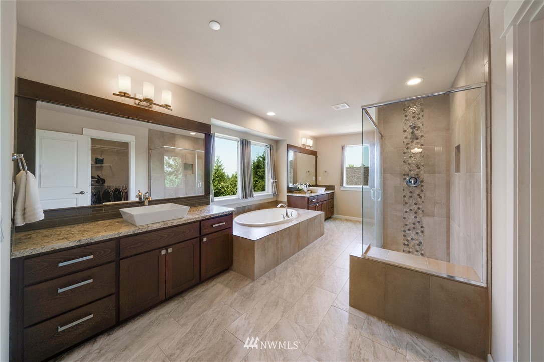 Stunning 6 bedroom Craftsman located in the desired community of Tehaleh. One of the most beautiful lots in Tehaleh, this spacious 4,427 home has everything the PNW has to offer. Close to hiking trails, parks and surrounded by a green belt, this gorgeous home features an open concept-vaulted ceilings-hardwoods-gourmet kitchen-top of the line appliances-quartz countertops-custom cabinets-butler's pantry-living room with built-ins-luxurious Master suite with his/hers walk-in closets-bedroom and full bath on main-fully finished daylight basement with bedroom-family AND media room-kitchenette-private patio-covered outdoor living space with gas fireplace-AC-sprinkler system-1 year home warranty. Close to restaurants, shopping, and schools!