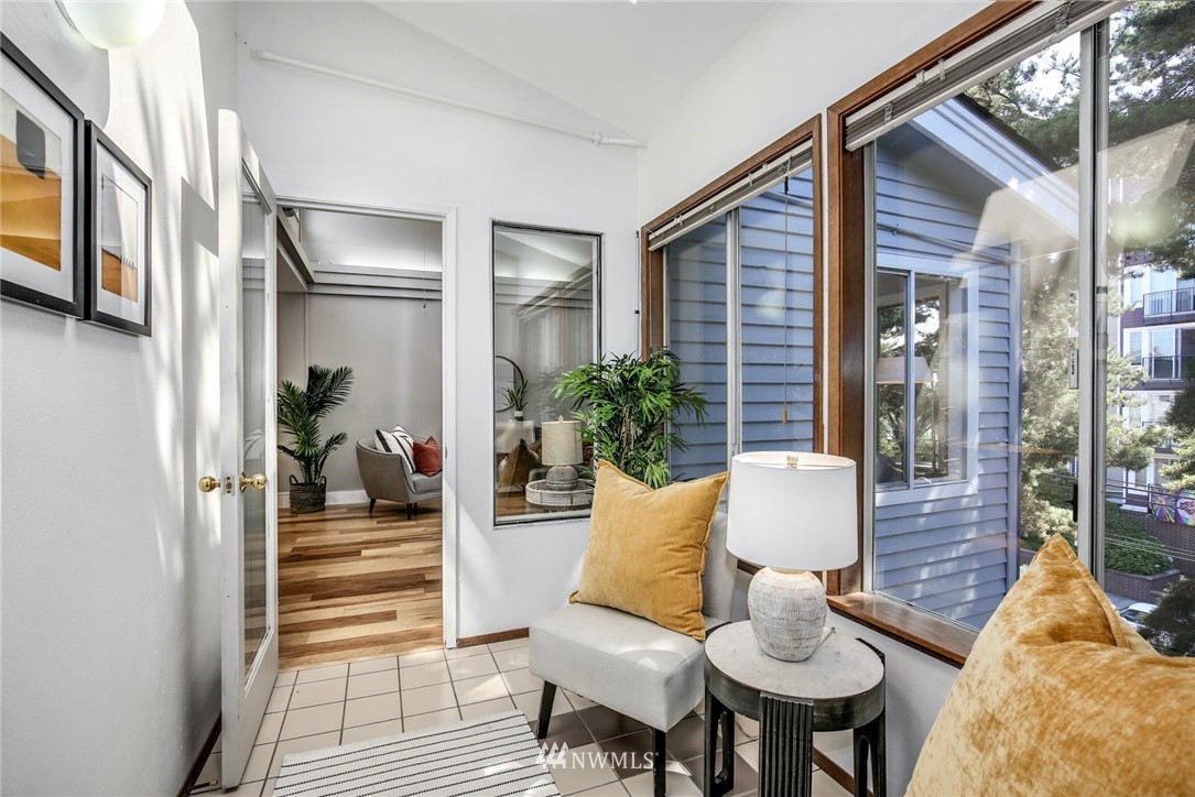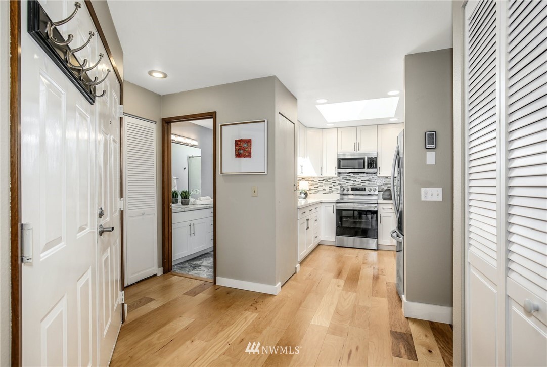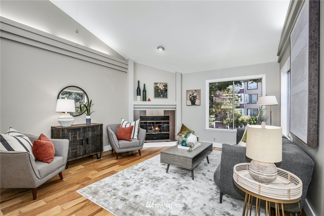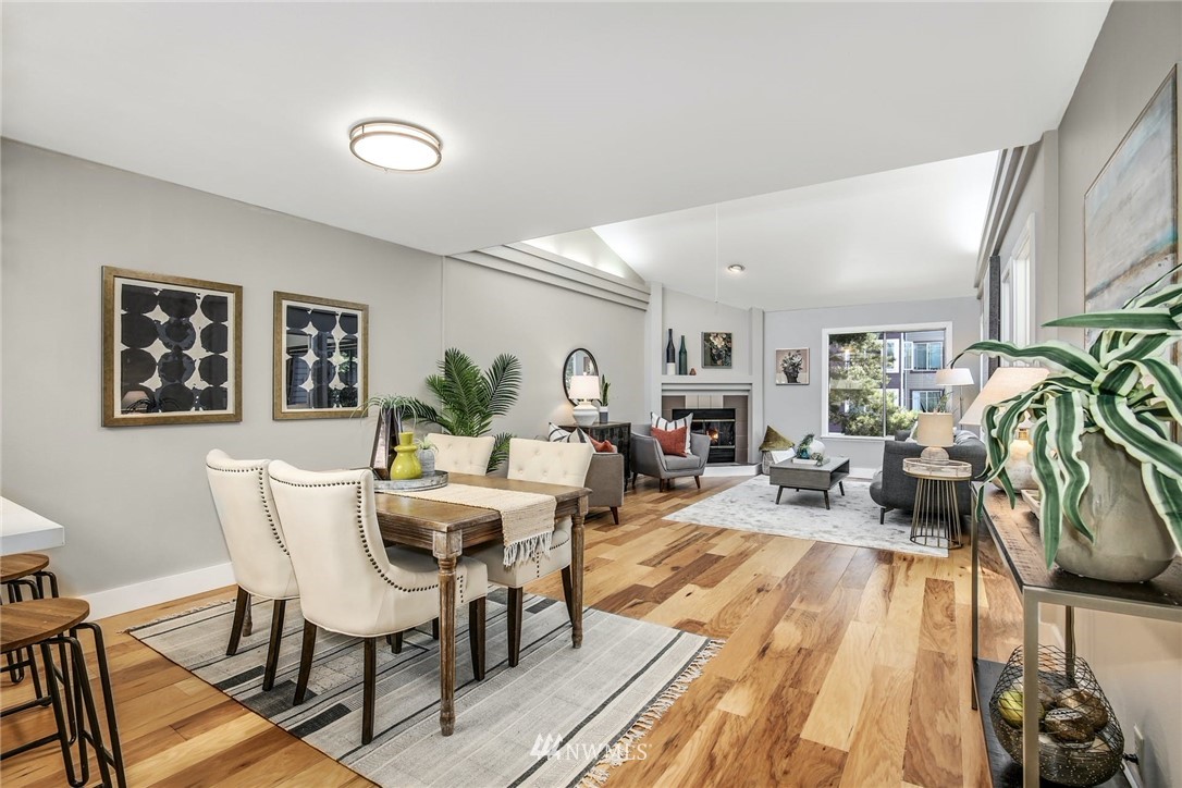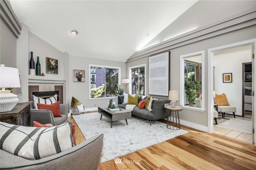Top floor unit in the Corniche, an 18 Unit Boutique Condominium located on Seattle's Capitol Hill. The unit is elevator accessible from either the foyer or the garage. Double entry doors lead to expansive open concept with plenty of natural light to kitchen, living/dining room. Vaulted ceilings, clerestory windows, ceiling fan, wood burning fireplace and cove ceiling lighting. New kitchen boasts SS appliances, cabinets, sink and quartz countertops. Engineered hardwood floors, new doors, updated 3/4 bath, new W/D. Pioneer heat pump heats or cools the main living area. 2 reserved parking spaces, 1 in lower level garage & 1 next to the building. Storage unit & bike storage. 98 walk score, with proximity to all Capitol Hill has to offer!