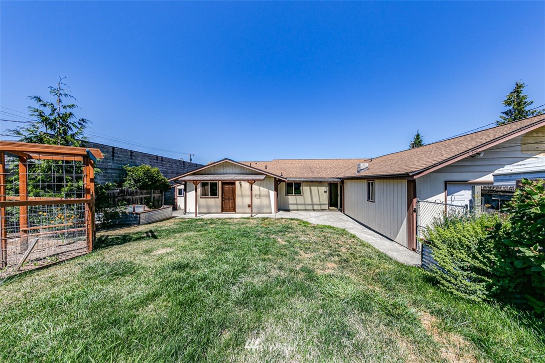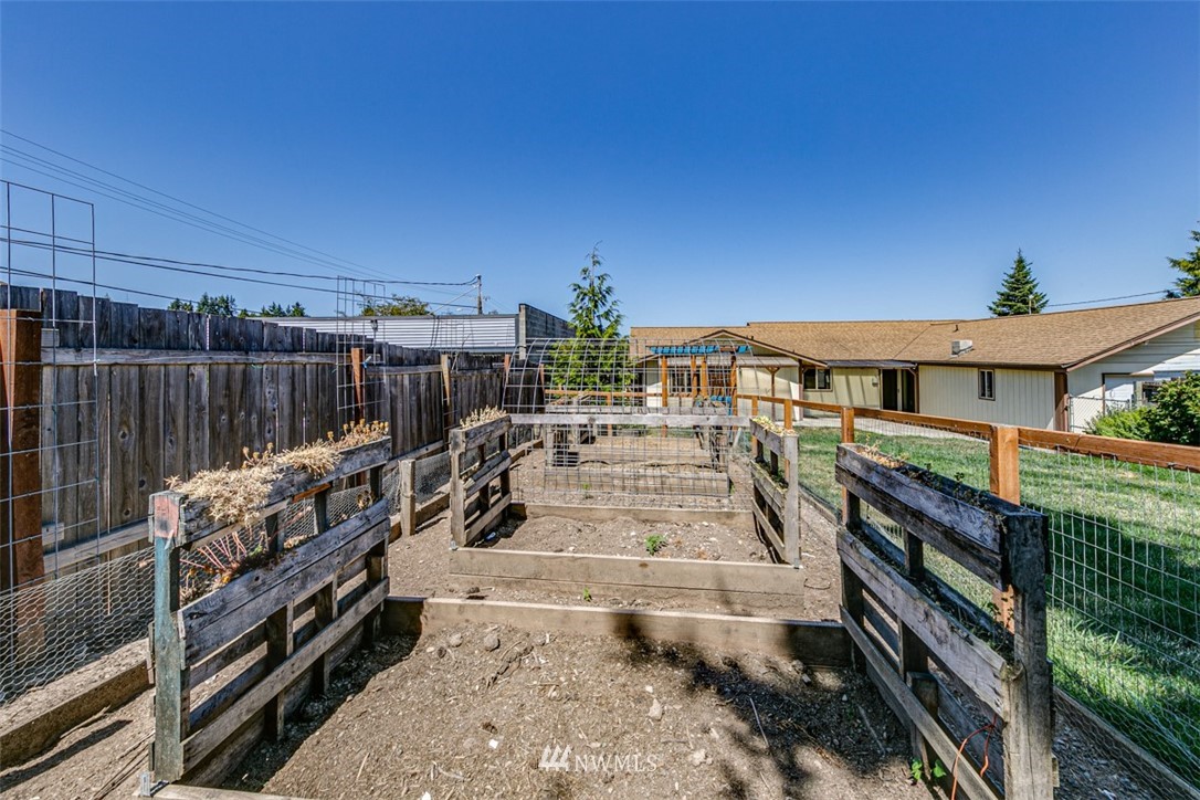 Cute curb appeal abounds for this 3BR 2BA, freshly updated home. New carpet in the living room and bedrooms, freshly painted walls, updated main bathroom, ADA bathtub in the master, slider to the back yard, and large laundry room connected to the 2-car oversized garage. Street or alley access, fenced backyard with enclosed raised garden beds, shed with power, and patio space to relax. Affordable and move-in ready!