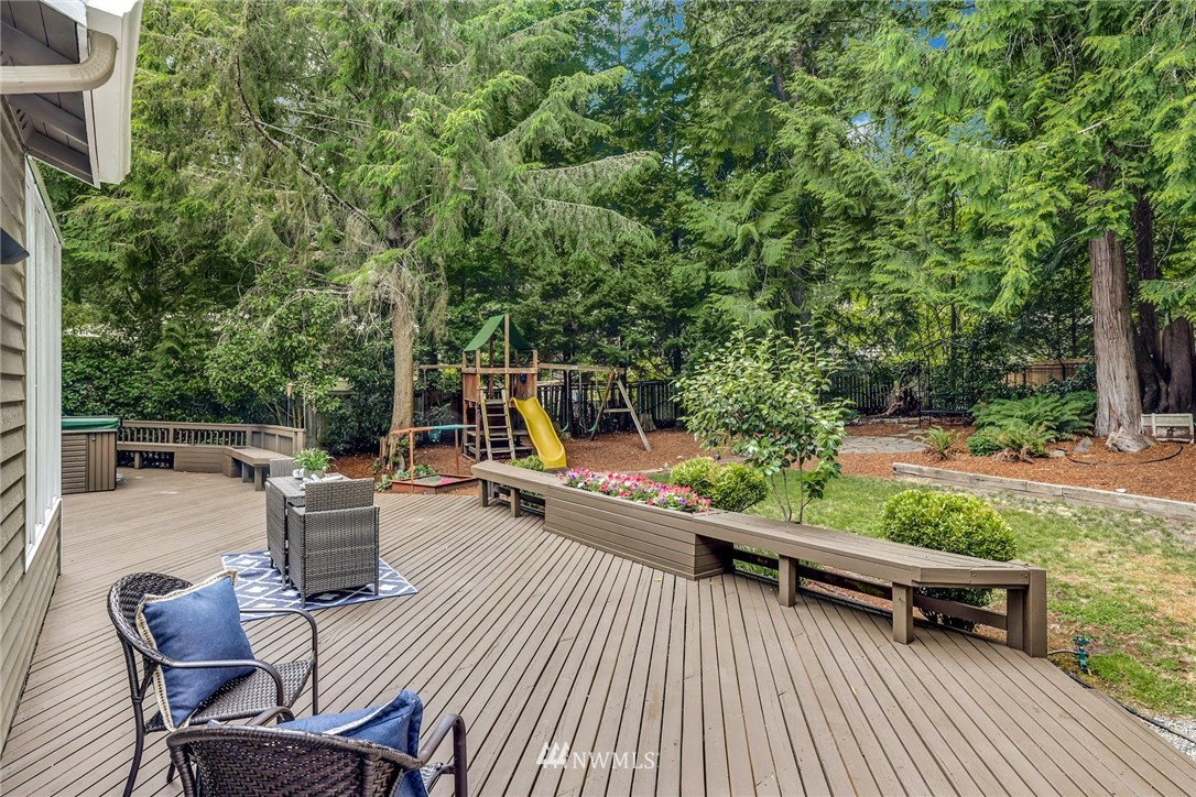Welcome to this beautiful 5 bed, 2.5 bath home in Hampton Woods! Located in a quiet cul-de-sac in Sammamish, this is the perfect suburban retreat! Large windows and a lovely kitchen solarium fill the home with plenty of natural light! With both formal and informal spaces, this thoughtful layout has ample space for work and play, perfect for WFH or entertaining! Plus, central air to keep cool during these summer months! The primary suite features an attached balcony, a large soaking tub in spacious bathroom, and a private outdoor entrance! The home bursts with storage space with a walk-in pantry, 2-car garage, surprise attic storage, and built-in recessed bookcases in the living room! Enjoy your own private paradise with this amazing home!