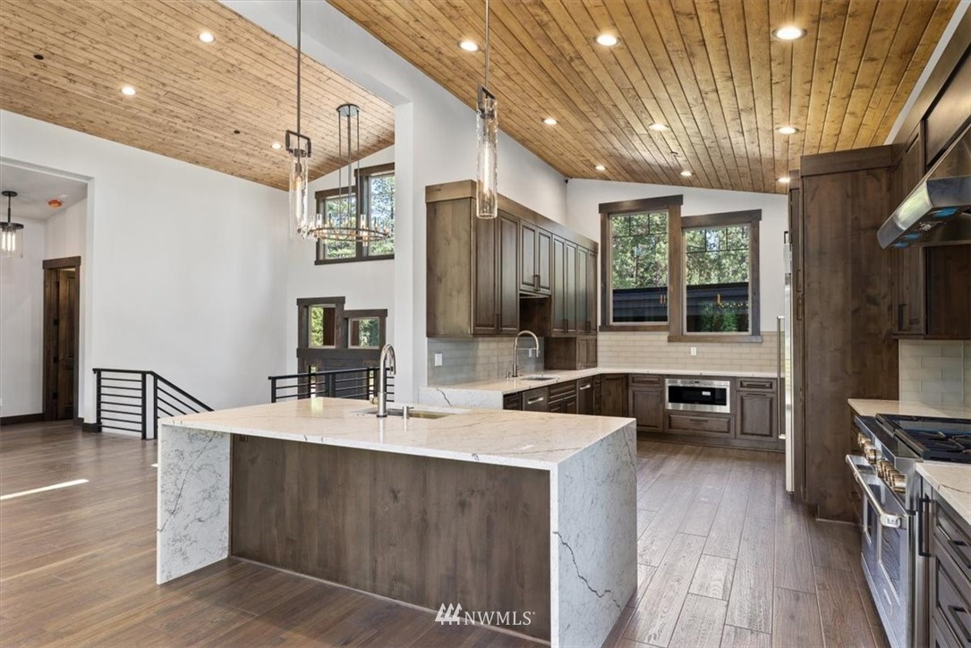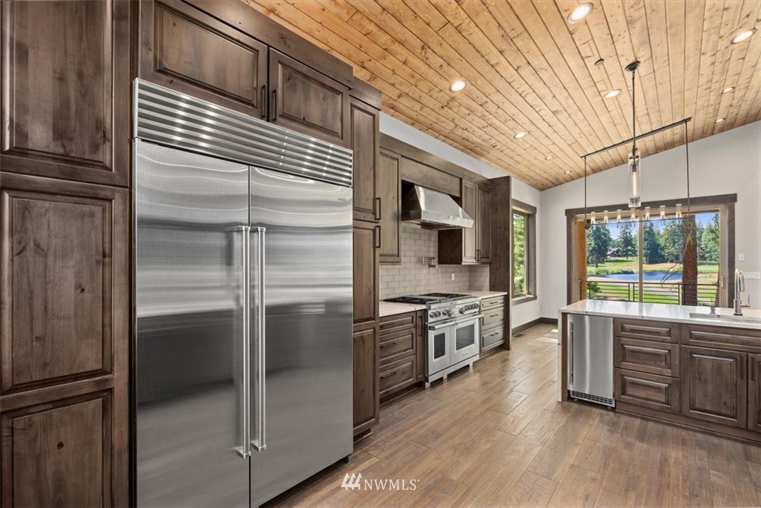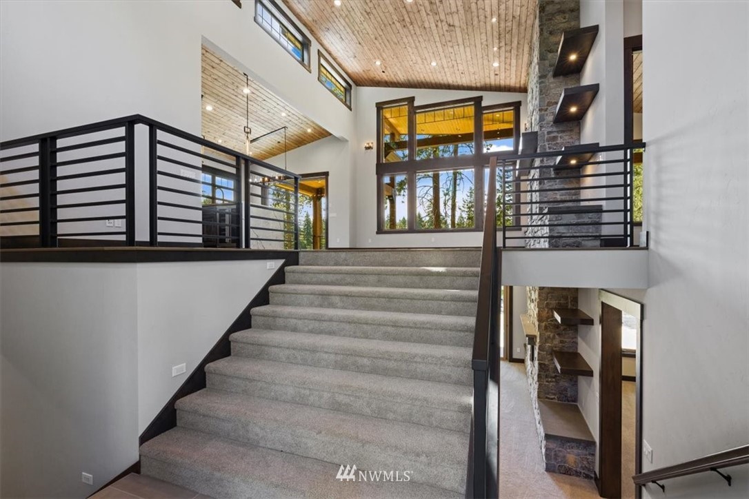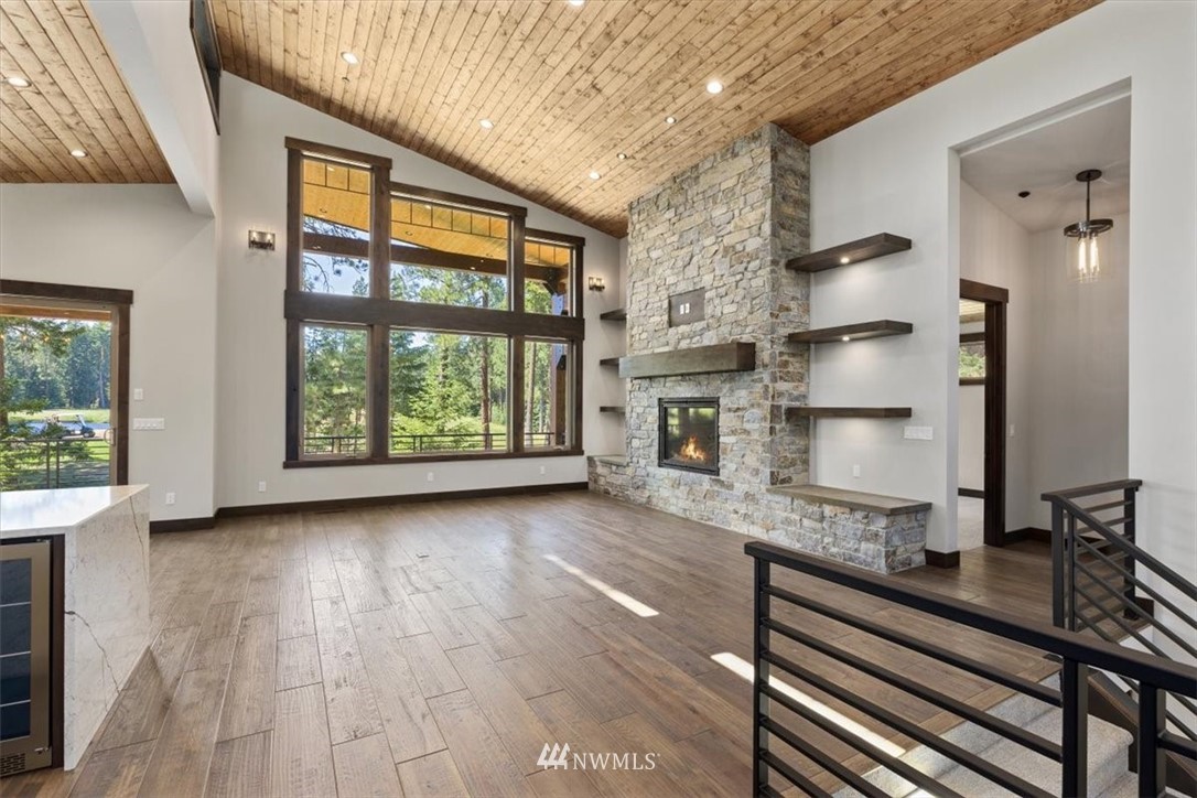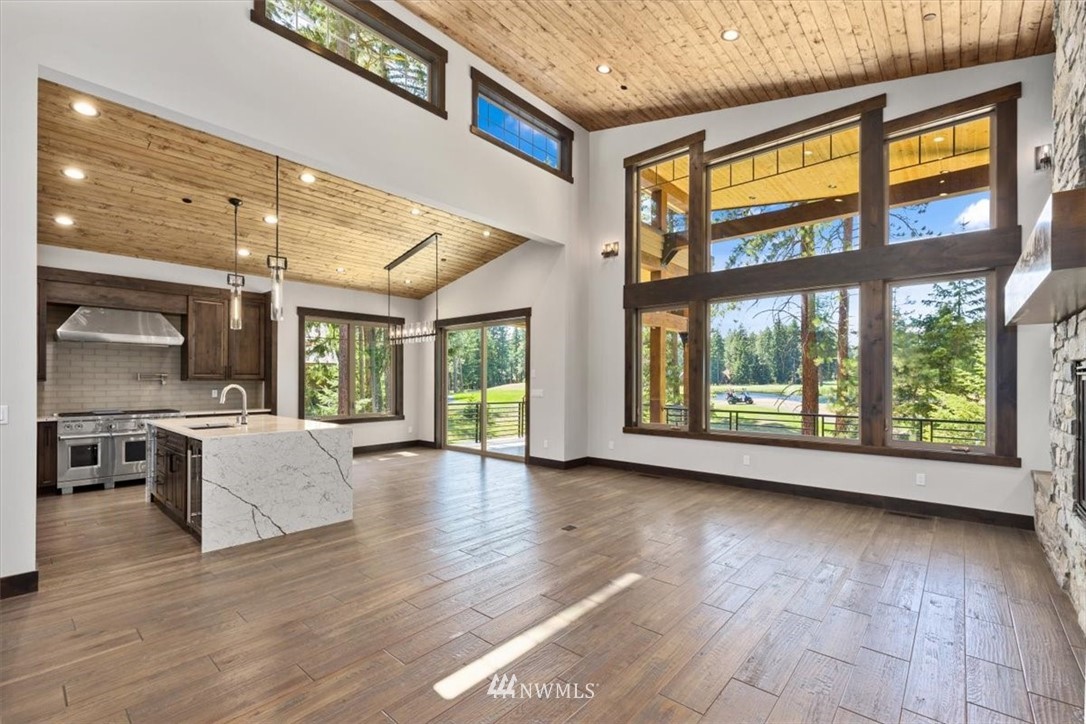 Newly completed golf frontage home in Suncadia! Enjoy sunsets overlooking the entirety of Prospector's spectacular 5th Fairway. A stone and concrete entrance opens to hickory flooring and an elevated main floor designed with entertainment in mind. Massive kitchen flows to the great room and dining area and right out to the covered decks with metal railing detail. All four bedrooms are ensuites and the lower rec room leads to a natural gas firepit. Stone fireplaces can be found in the great room and rec room.