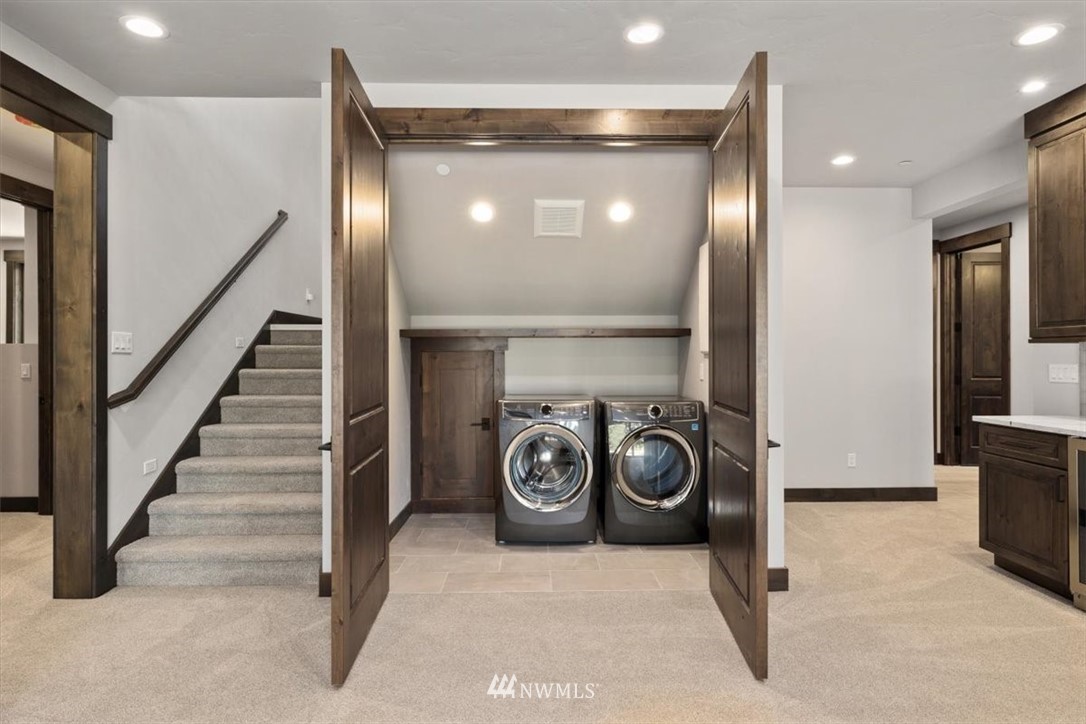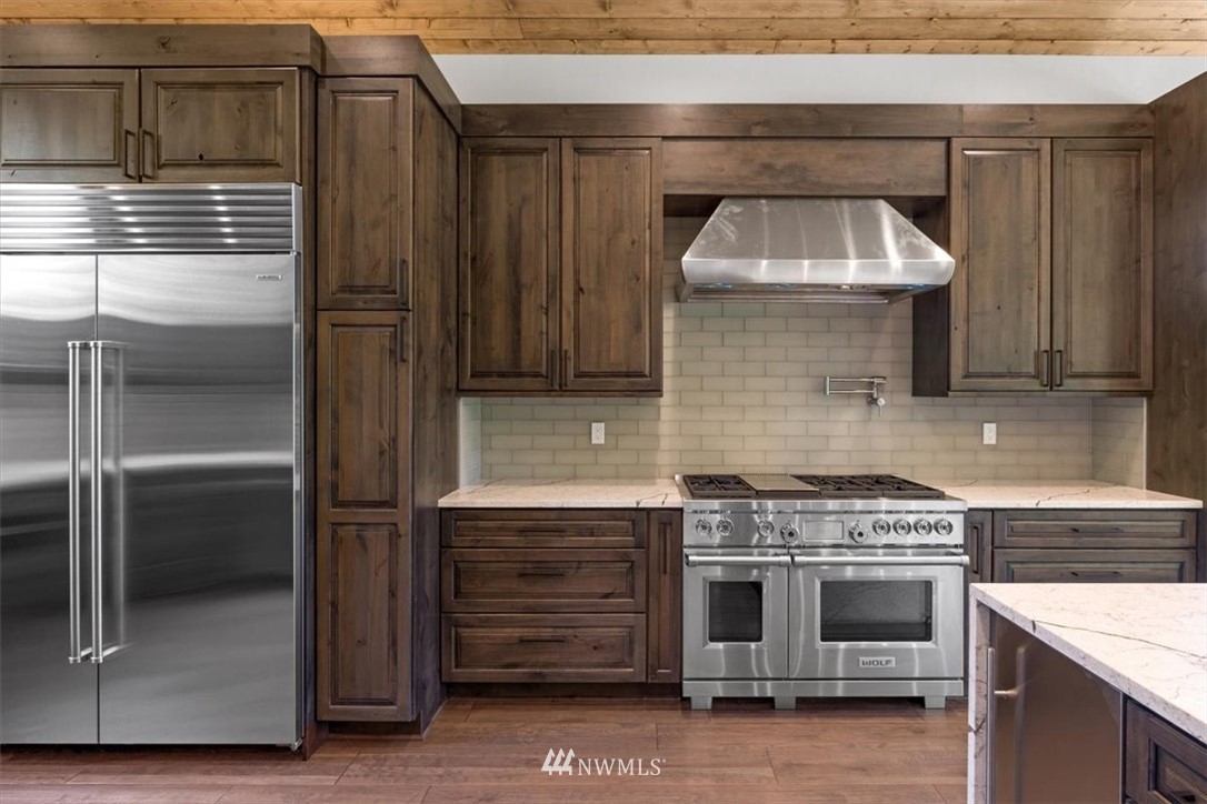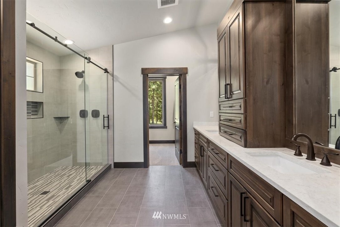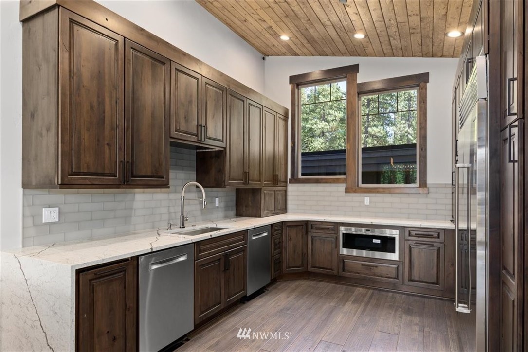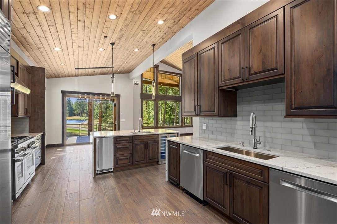 Newly completed golf frontage home in Suncadia! Enjoy sunsets overlooking the entirety of Prospector's spectacular 5th Fairway. A stone and concrete entrance opens to hickory flooring and an elevated main floor designed with entertainment in mind. Massive kitchen flows to the great room and dining area and right out to the covered decks with metal railing detail. All four bedrooms are ensuites and the lower rec room leads to a natural gas firepit. Stone fireplaces can be found in the great room and rec room.