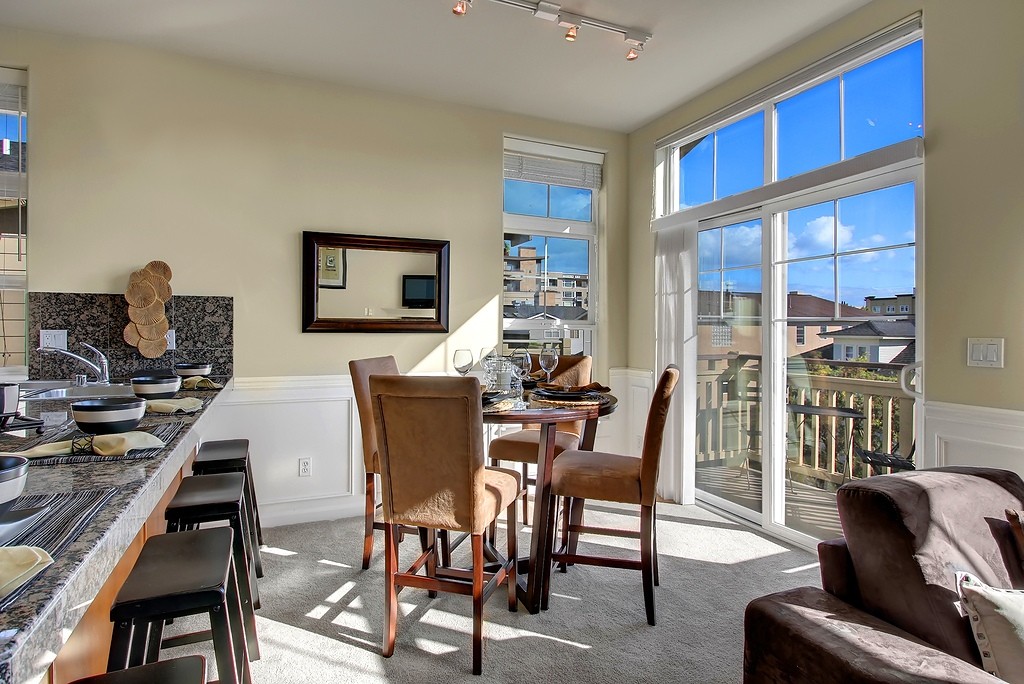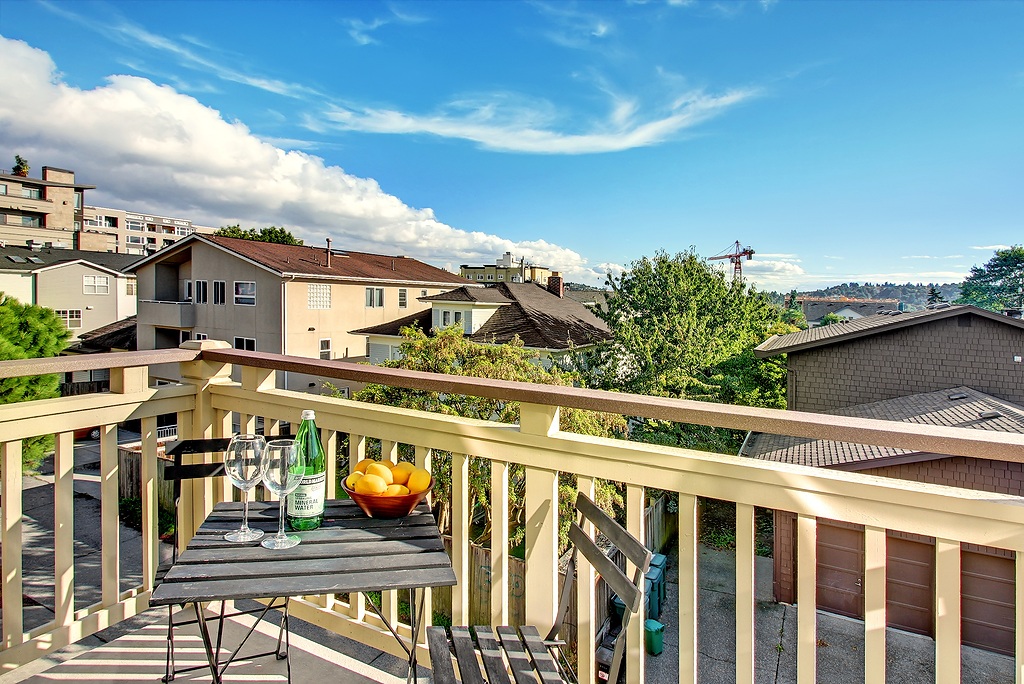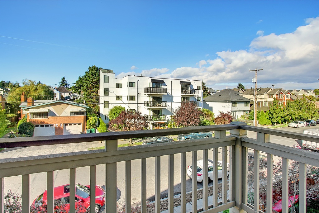 Start the day w/coffee on one of two private decks or head out the door 344 ft to Java Bean Coffee - 4X winner as Ballard's best coffee house! This top floor, SE corner home with a 92 Walk Score ("Walker's Paradise") makes a beautiful impression while offering incomparable comfort. Luxurious finishes, high end appliances, 12' ceilings + a spacious en suite master w/sitting area, deck & 3 closets! Deeded, covered parking. Well-managed, 6-unit, pet friendly bldg. Steps from QFC & downtown Ballard!