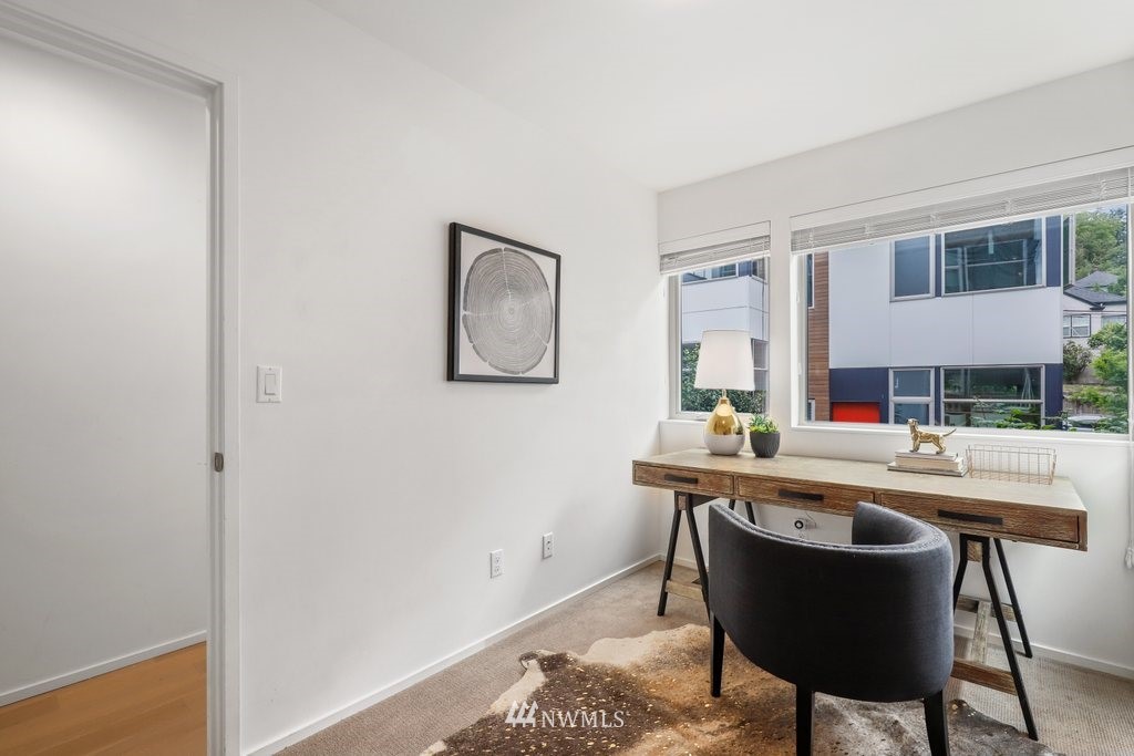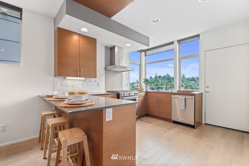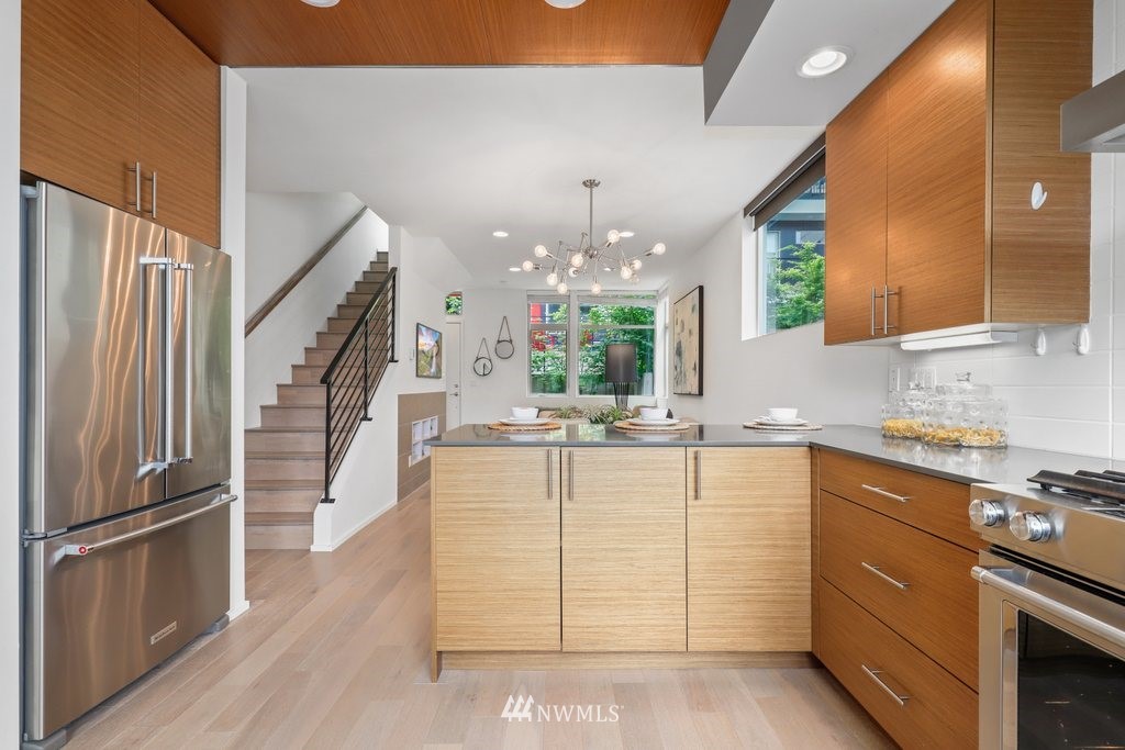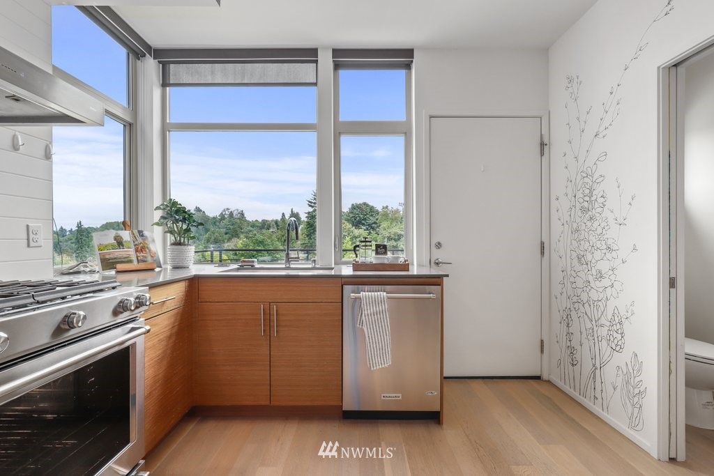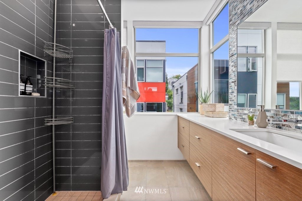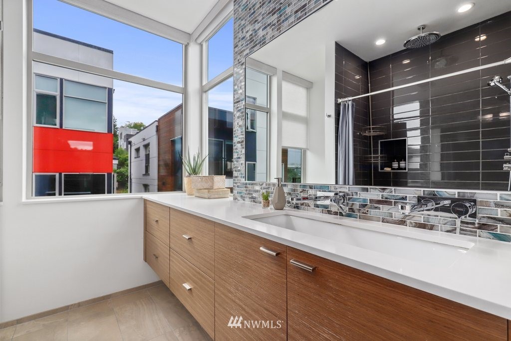 Welcome to this modern 3 BR Madison Valley home. Main floor centers around a sleek kitchen with a bar, open floor-plans, balcony off kitchen, & 1/2 bath. Up a level are 2 BR & a full bath perfect for guests or your home office. Topping off the design on the 3rd floor is the master retreat (A/C, walk-in closet, double sink vanity) & access to the rooftop deck for BBQs & 360 degree views of the valley. Off-street parking & a large storage in the back for skis, kayaks, & more! Hydronic heating, triple pane windows & extra insulation provide year-round comfort. Conveniently located near transit (15 mins by bus to Amazon SLU & Downtown). Madison restaurants & the Arboretum, or grab groceries at PCC & Trader Joes (all within 1 mile). No HOA dues.
