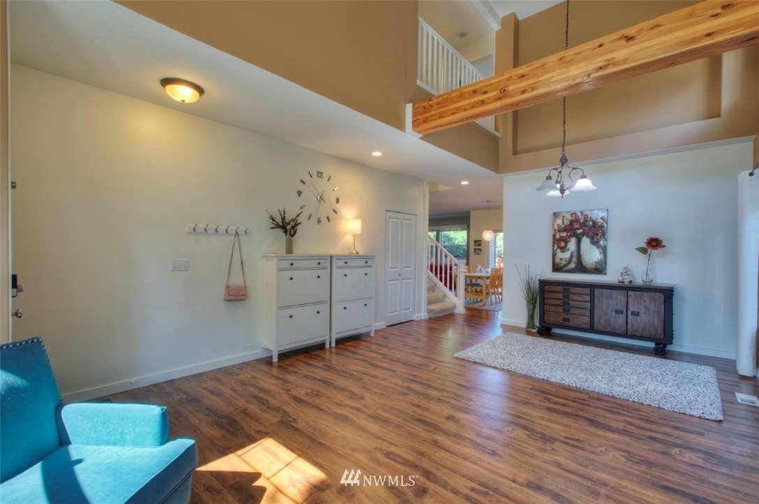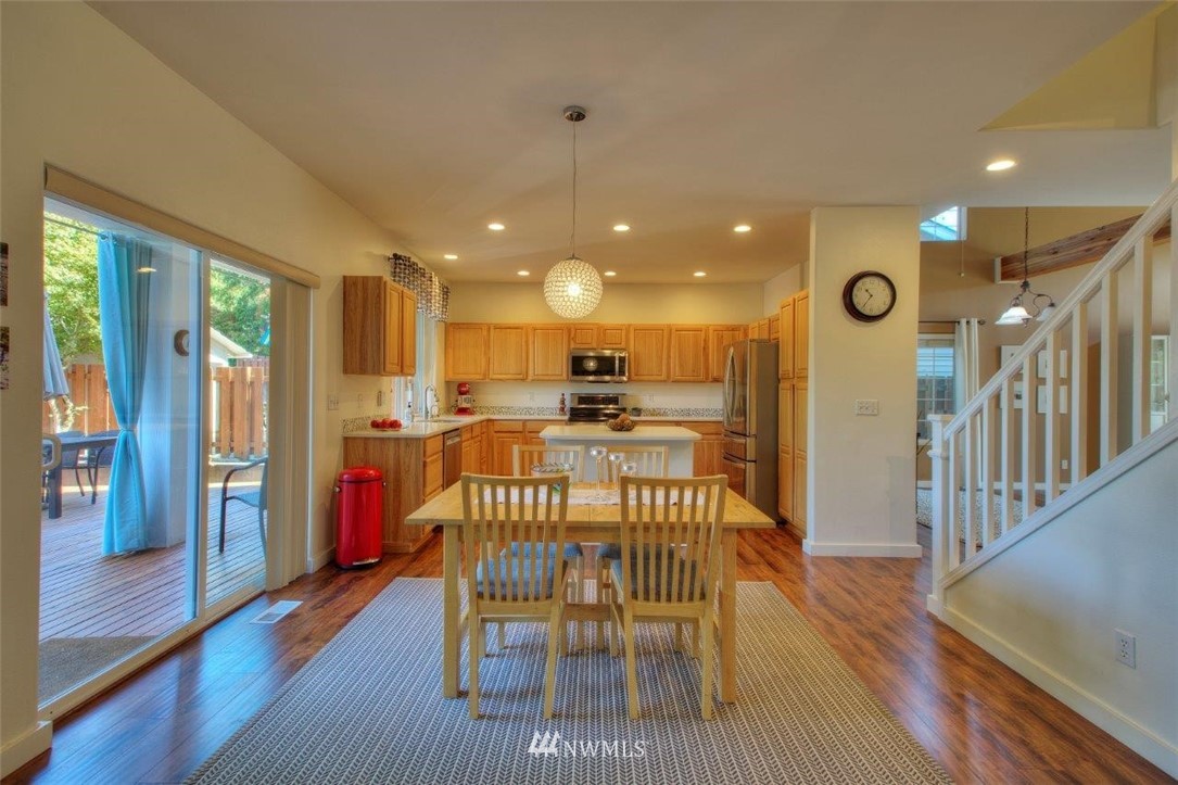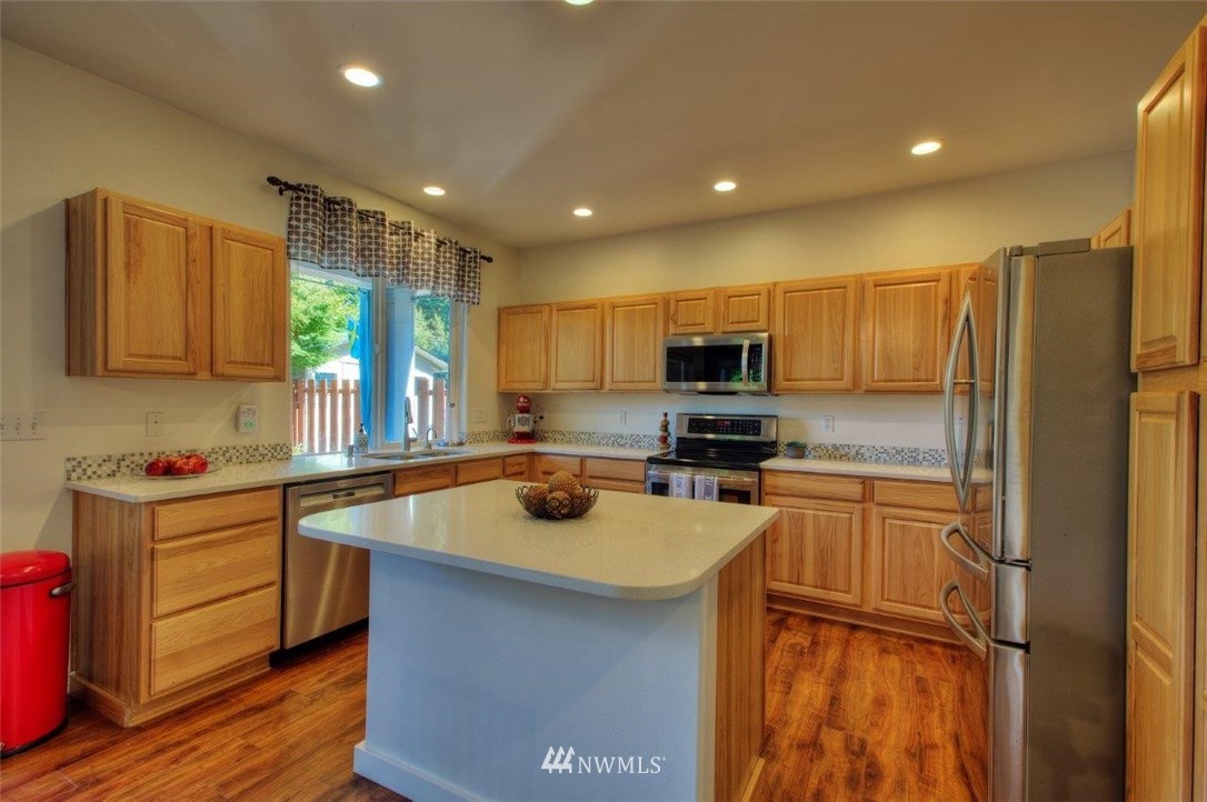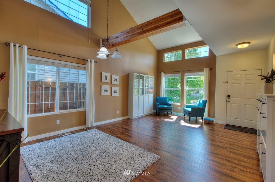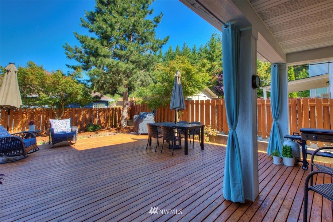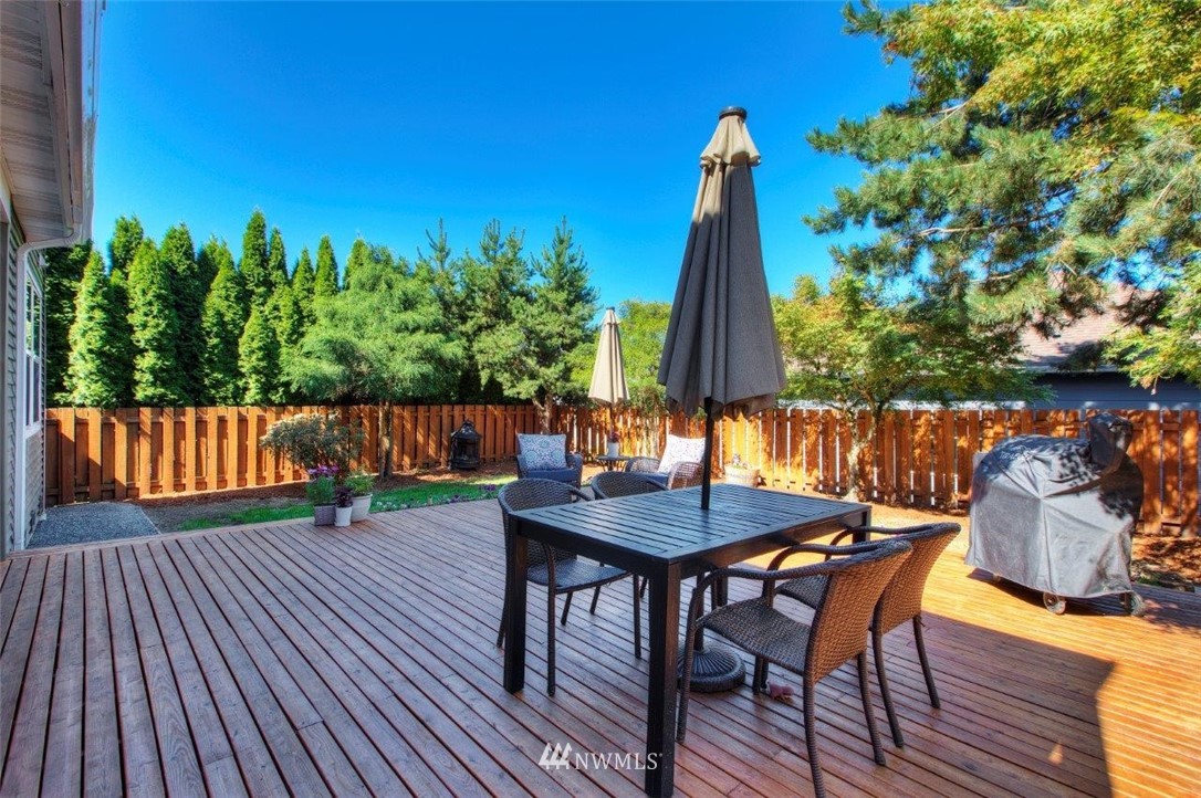 A rare find in Maple Woods! Only a handful of homes were built with this highly desired floor plan. Tall vaulted ceiling and exposed beam welcomes you. 2190 sq ft, 4-bedrooms with laundry up, 2.5 bathrooms. Chef's kitchen with hickory cabinets and stainless steel appliances. Romantic master suite with private balcony and 5pc master bath makes getting away from it all easy. Home features air conditioning and is wired for speakers and surround sound. Extra insulation in walls & ceilings. Beautifully landscaped and fully fenced yard with large deck for entertaining and summer BBQs. Walk to parks, playground, trails, shops & dining. Award-winning Tahoma Schools.