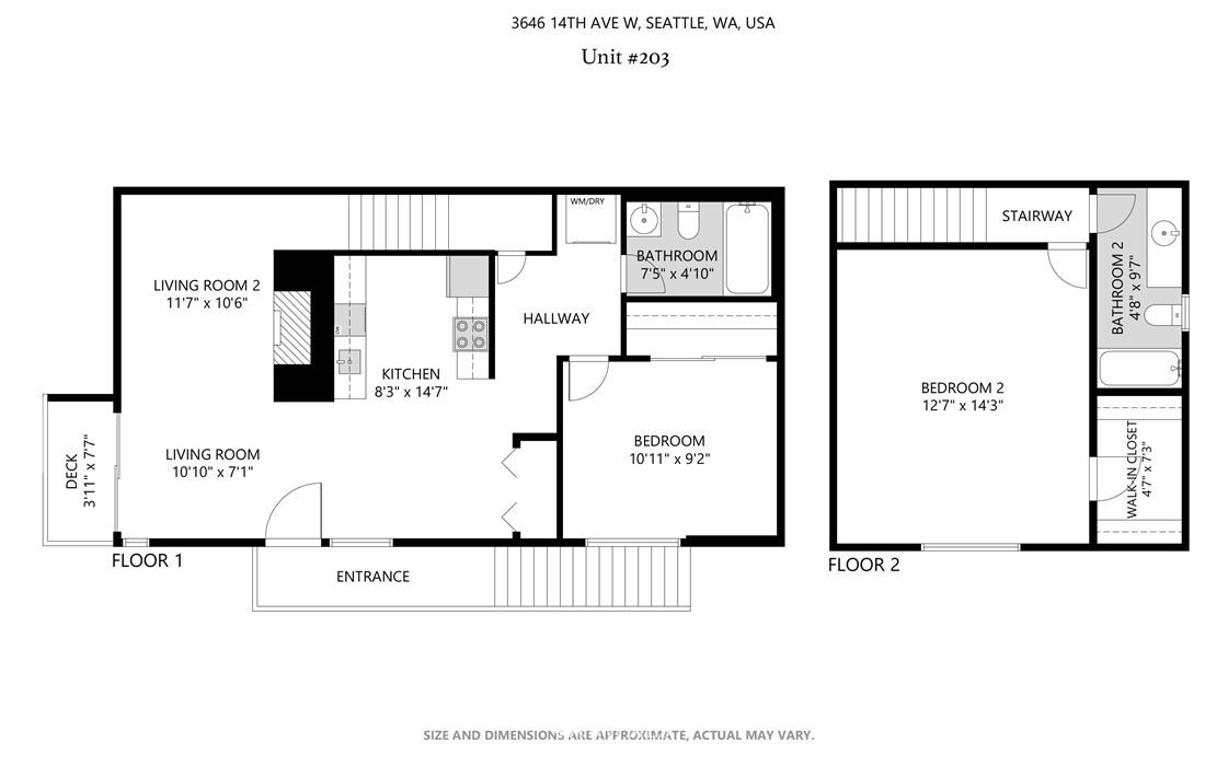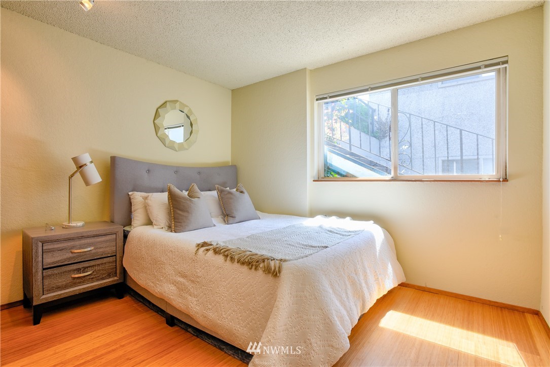 Sharp Queen Anne 2 bedroom, 2 bathroom on West Slope. Great location! Townhouse style with 1 bedroom, 1 full bath on main and 1 bedroom, 1 full bath upstairs. Deck off living room. Fireplace. Washer/dryer in unit. 1 uncovered parking space. Small building with very low HOA dues.