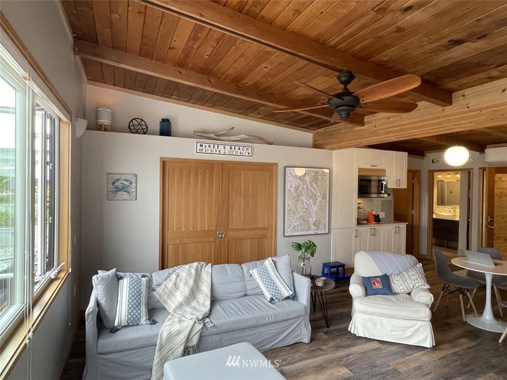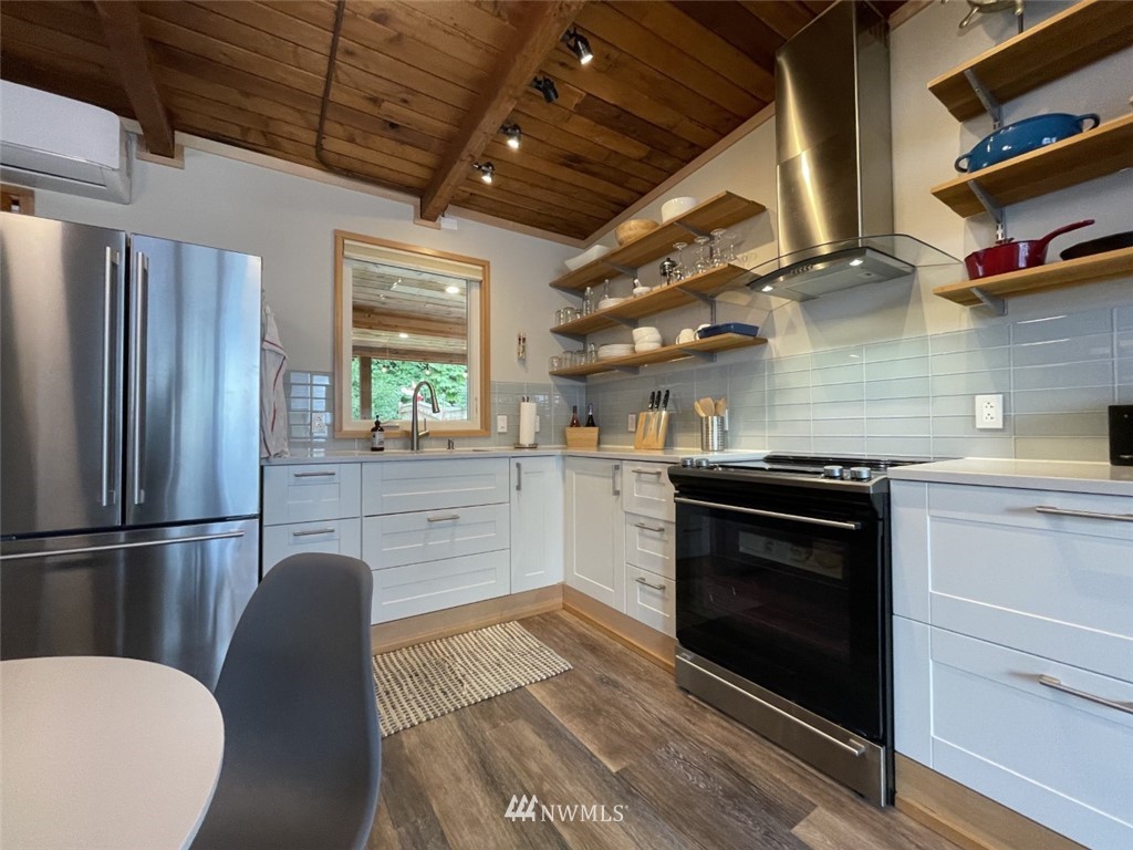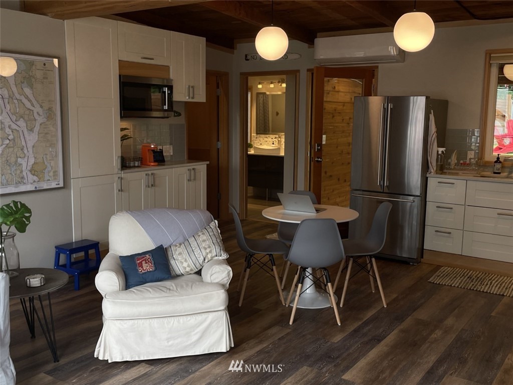 McKee's Beach year-round cabin ready for last half of summer! Recent remodel starting in 2019 (roof w/ 3” foam insulation, electrical, plumbing, kitchen, bath, sheet-rock, exterior) with many interior upgrades finished in 2021 (water proof laminate floors, paint, fir molding). Open floor plan, original fir vaulted ceiling, ductless heat & AC, tankless hot water, fenced grassy yard, storage shed, plenty of parking for toys/cars, steps away to boat ramp and miles of beach with Mt Rainier and Olympic Mt views. Come see: grey/orca whales, seals, eagles; go crabbing on beautiful Port Susan or start your own shellfish garden. Enjoying beautiful sunsets from the west facing McKee’s Beach. Furnishing’s negotiable. Boat mooring ball available too.