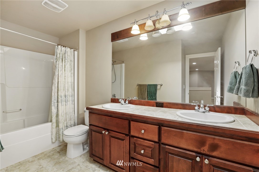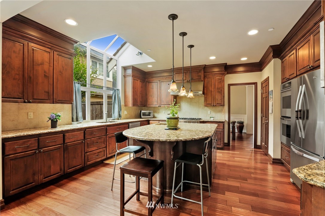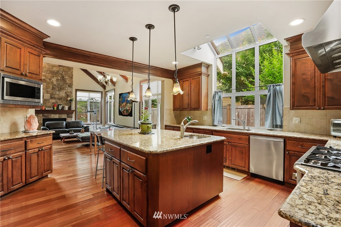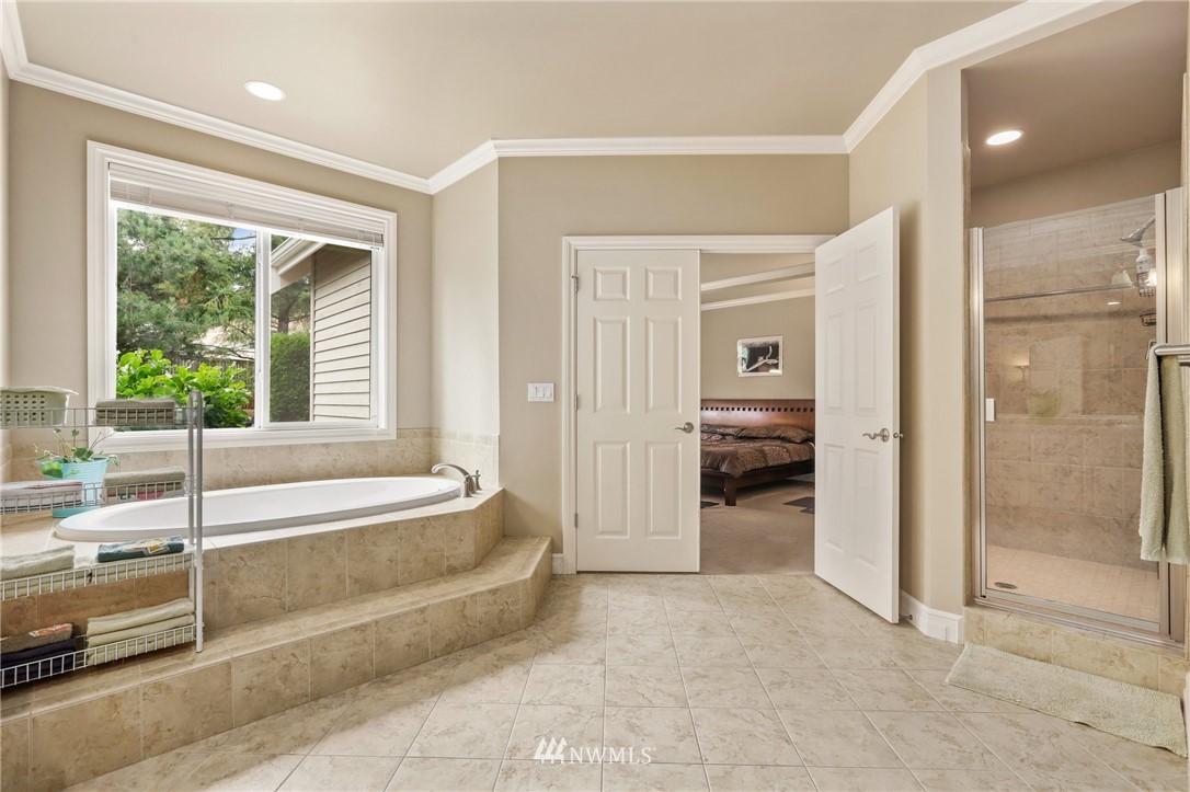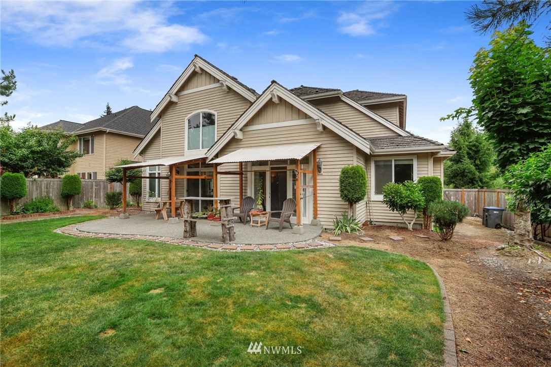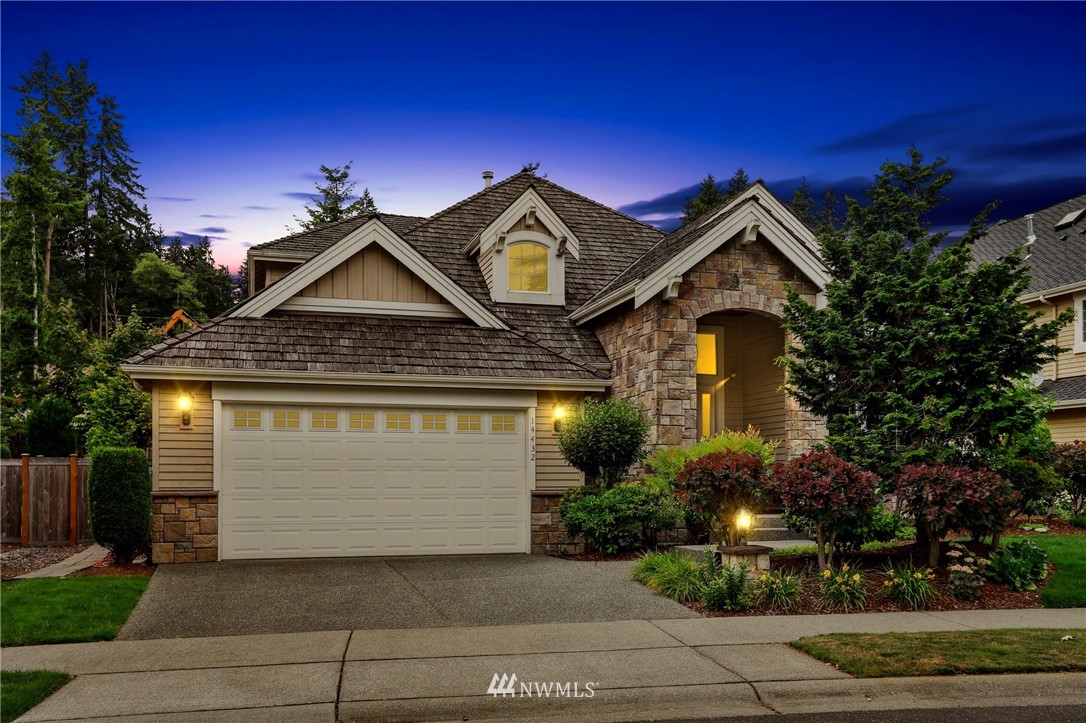 Luxury awaits at this beautiful River crossing neighborhood home! Tucked behind the beautiful Mill Creek Towncenter, this 3 bedroom, 3.5 bath ,3,477 square foot home sits on a 10,019 square foot lot, includes a bonus den and is built by the renowned Buchan team. High quality throughout, this alluring home features wonderful hardwood flooring, extensive mill work, gourmet kitchen w/ stainless steel appliances, slab granite counters, custom built cabinets, open railings, main level primary suite including 5 piece bathroom (double shower head!), California closet and has vaulted ceilings throughout! Centrally located, minutes away from Mill Creek Towncenter, restaurants, trails and more!