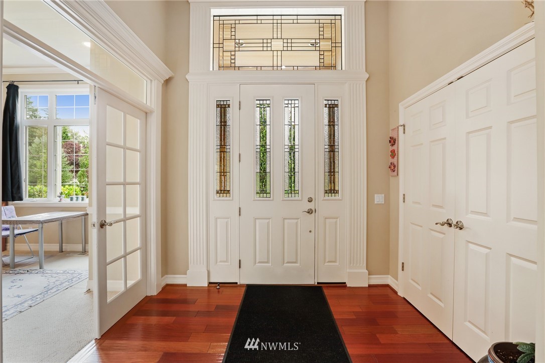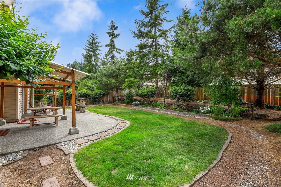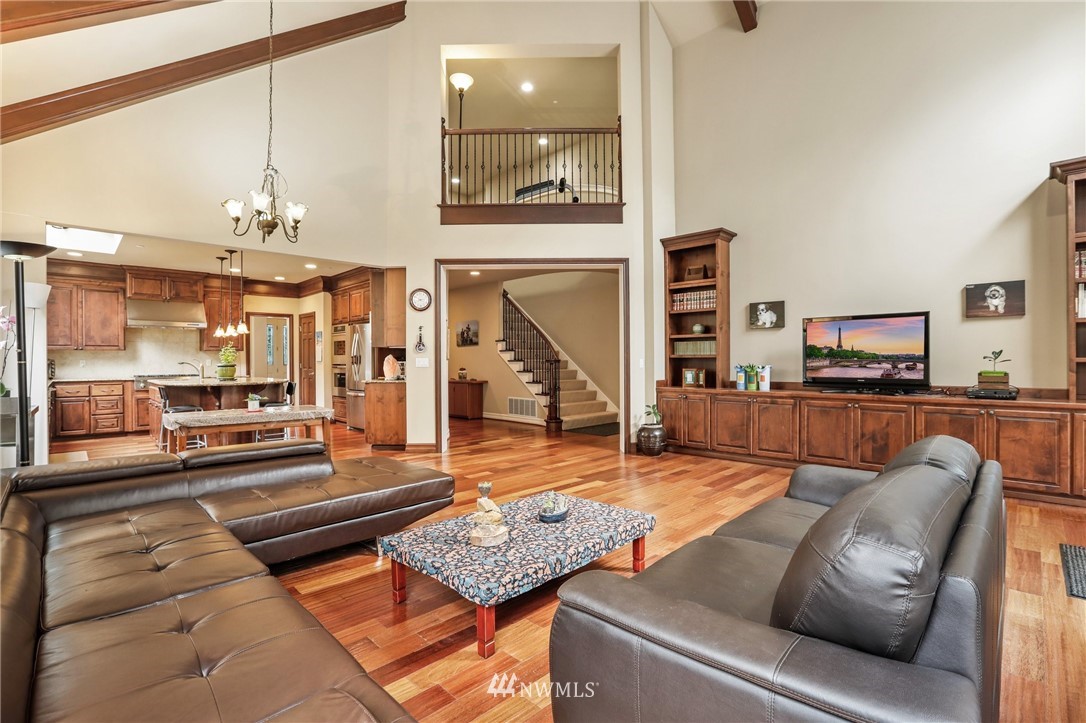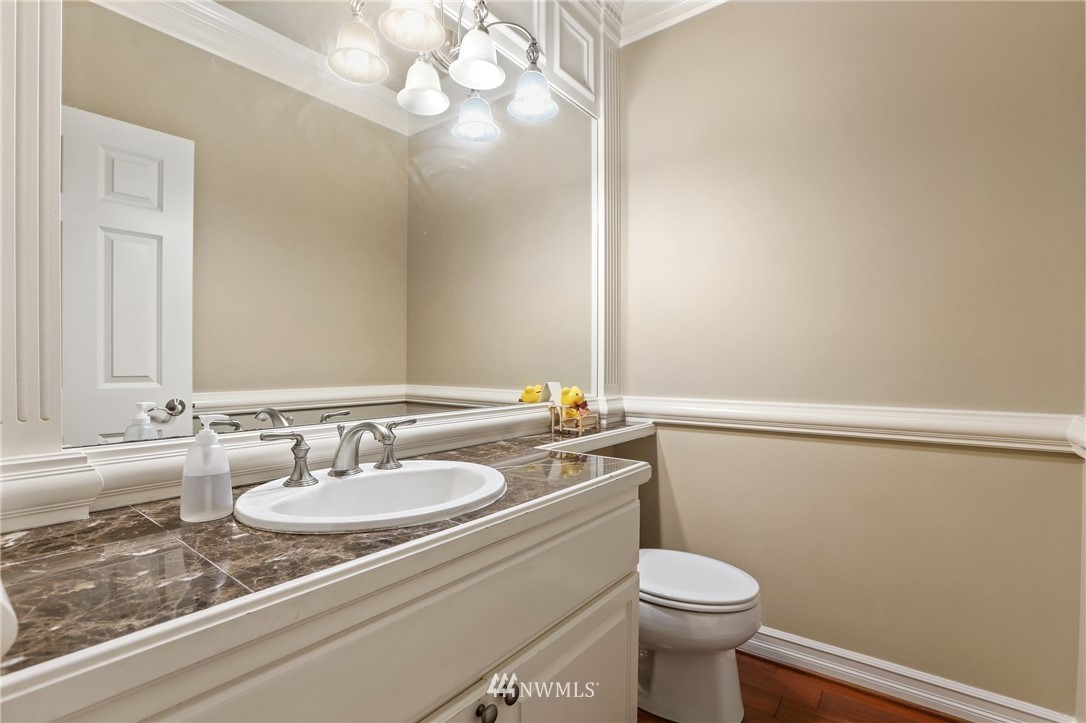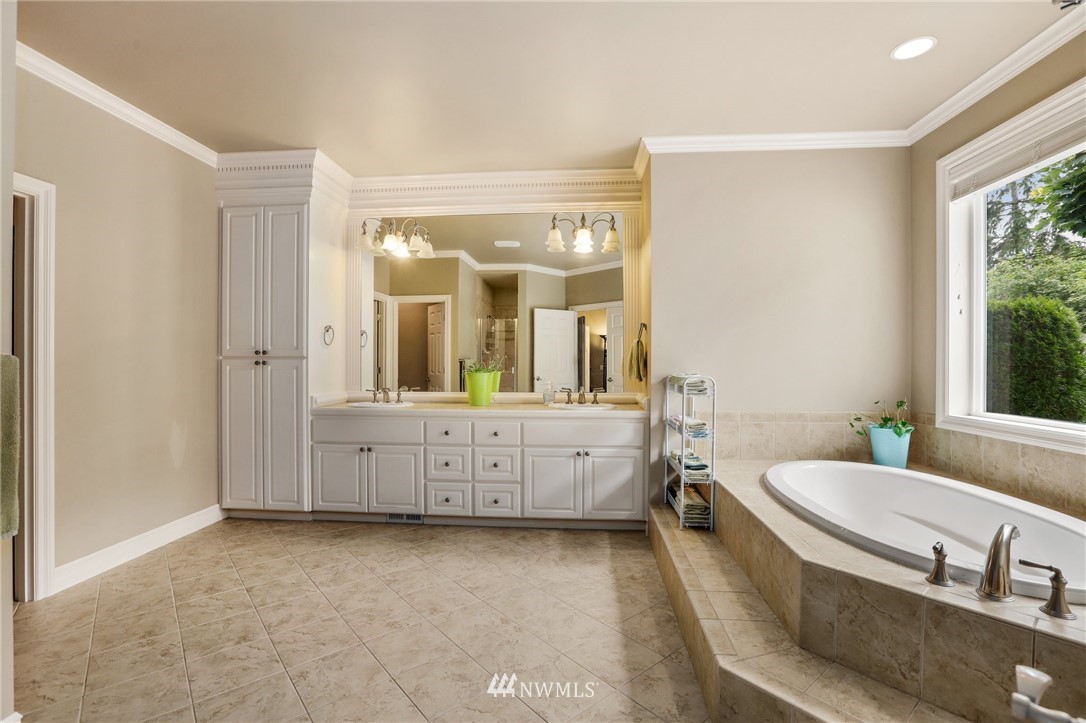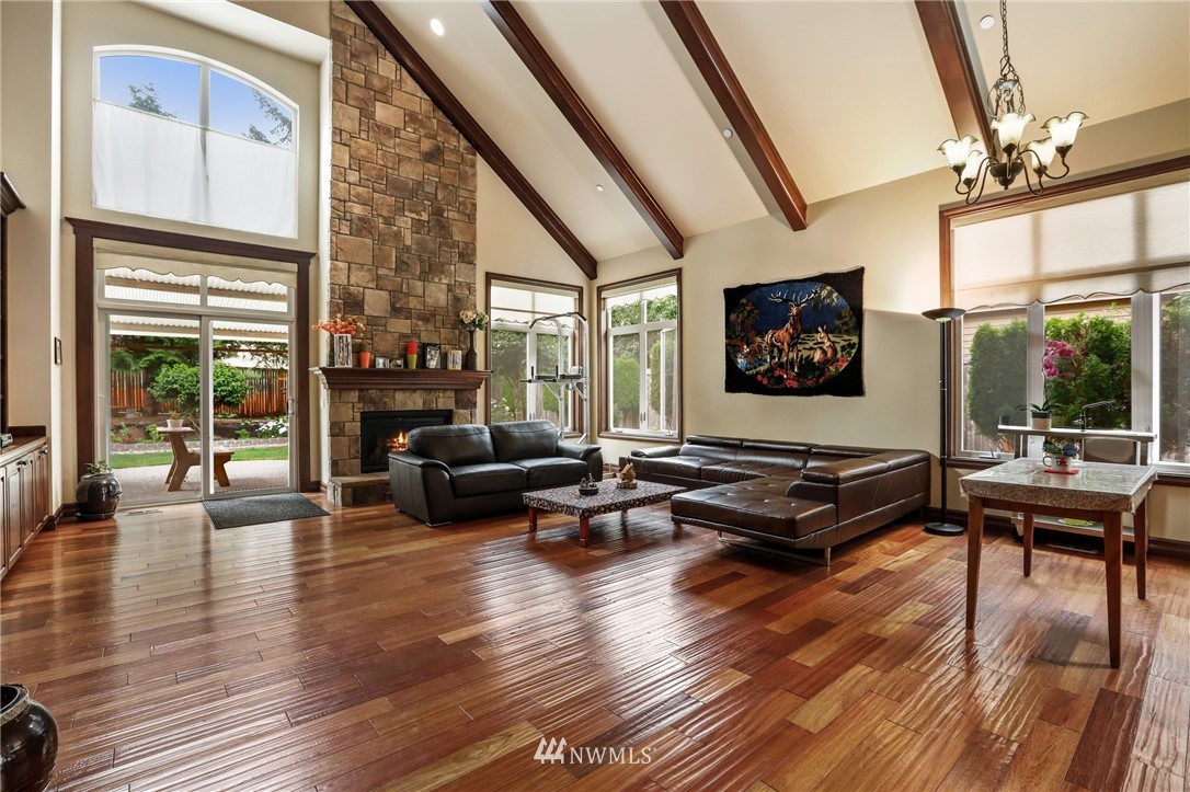 Luxury awaits at this beautiful River crossing neighborhood home! Tucked behind the beautiful Mill Creek Towncenter, this 3 bedroom, 3.5 bath ,3,477 square foot home sits on a 10,019 square foot lot, includes a bonus den and is built by the renowned Buchan team. High quality throughout, this alluring home features wonderful hardwood flooring, extensive mill work, gourmet kitchen w/ stainless steel appliances, slab granite counters, custom built cabinets, open railings, main level primary suite including 5 piece bathroom (double shower head!), California closet and has vaulted ceilings throughout! Centrally located, minutes away from Mill Creek Towncenter, restaurants, trails and more!
