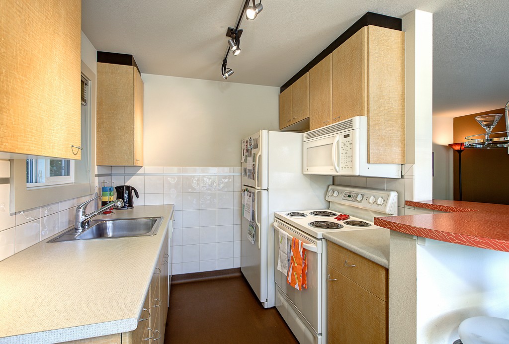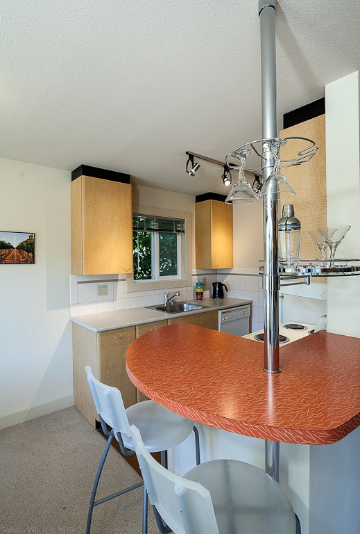 Like the space needle, this condo was built in the 60s. Rebuilt in 2002, systems and finishes were upgraded. In this former model unit the cool factor of an elliptical martini bar will make you smile. Corner unit, open floor plan & windows that emit so much light that happiness is living here. Connect with friends on your covered lanai detailed with industrial sheet metal or walk 3 blocks to restaurants, coffee or a wine bar. Storage plus bike locker. Quiet street with lots of parking.
