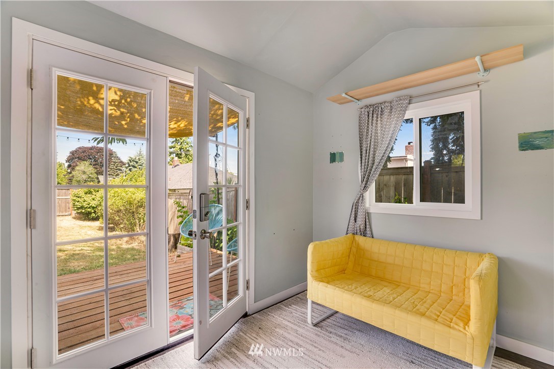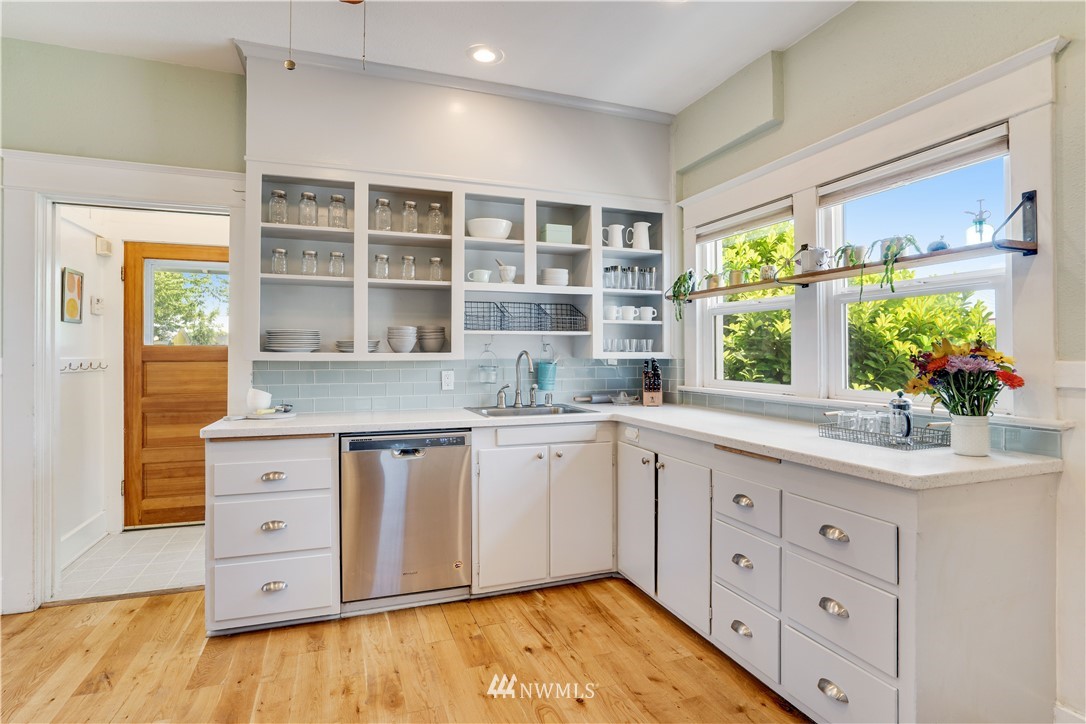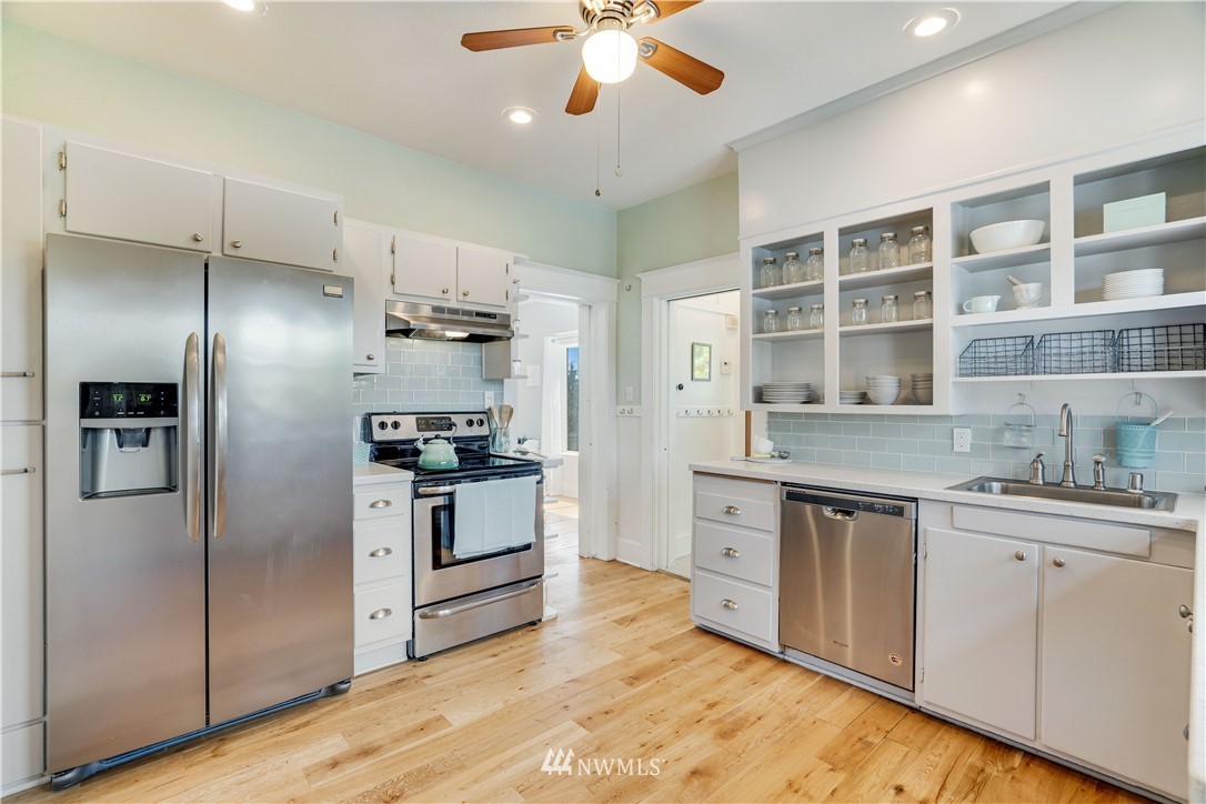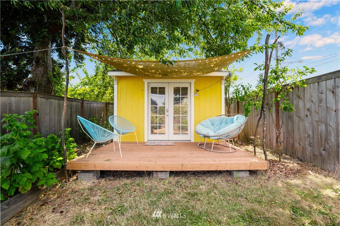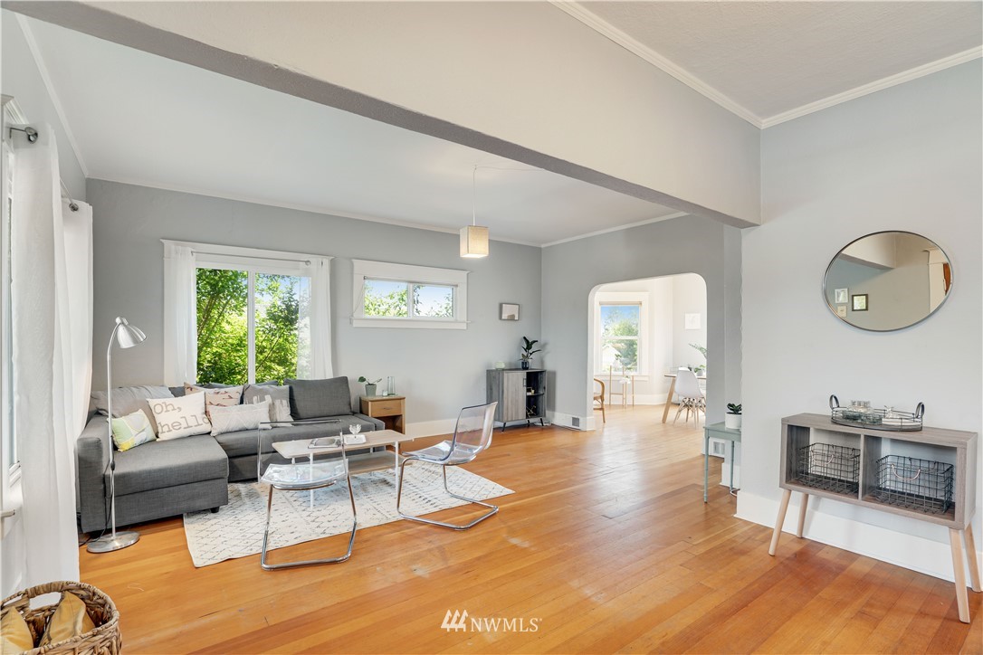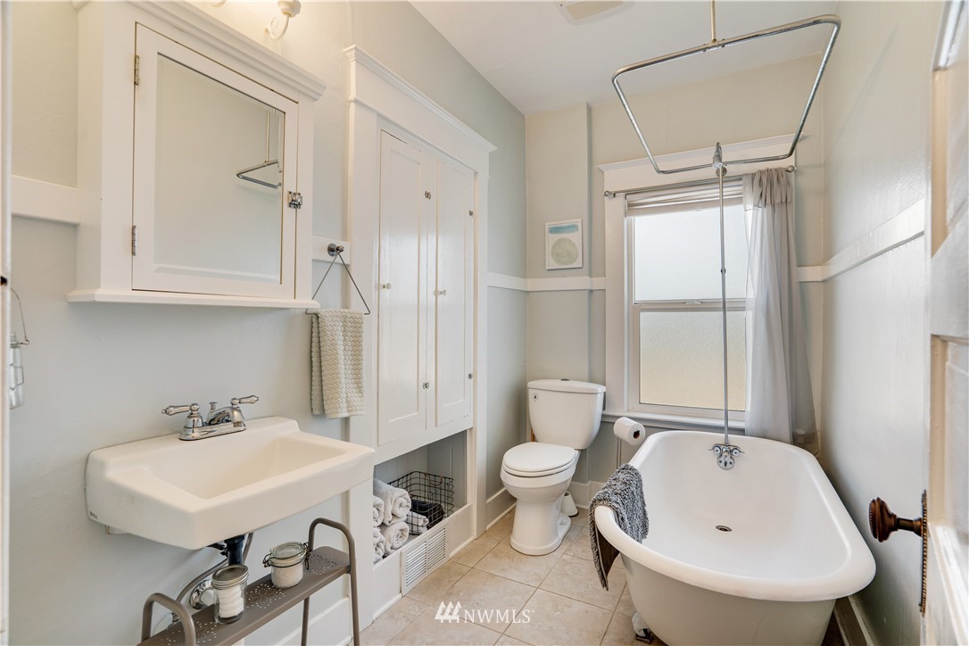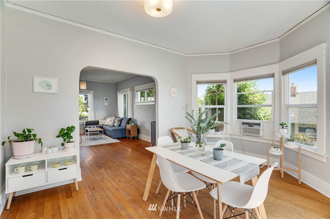 Perched on an elevated North End lot, this classic 1908 foursquare welcomes you with high ceilings, ample natural light, fir floors, crown molding and a bay window with Mt. Rainier views. The large, fully fenced yard includes a garden and fruit trees, a private patio, a bright backyard studio and 2 off-street parking spaces. Inside find bathrooms on 2 floors, 3 upstairs bedrooms, newer double-pane windows and a 2019 gas furnace. The home offers a comfortable balance of open spaces and cozy nooks with period details like the clawfoot tub and vintage cabinets in the updated kitchen with its tile backsplash and beautiful hardwoods. Less than a mile to Proctor Farmers’ Market, 1 block to Kandle Pool and a 10 minute drive to downtown and I-5.