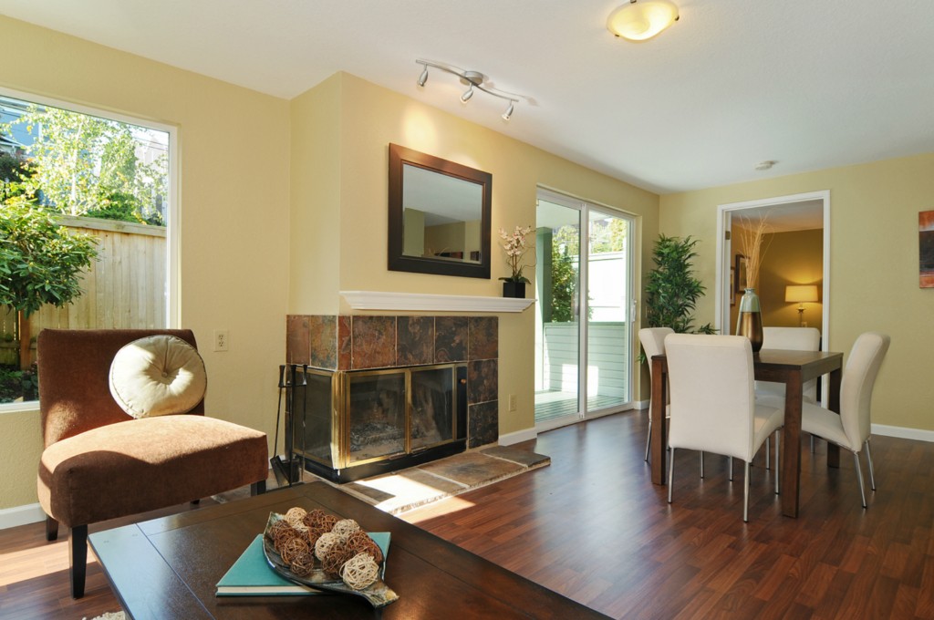 On a quiet residential street, East View Condos is in a wonderfully central location in our city. A short jaunt to the charming shops of Madison Valley & close to bustling Capitol Hill. A unique feature: large yard & patio space perfect for taking in fresh air, an outdoor dinner party, gardening or just relaxing. Inside you’ll find an open layout, updated kitchen & bathroom & bedrooms on opposite sides of the condo, great for privacy. Updated w/new paint, hardwoods, carpet & fireplace surround.