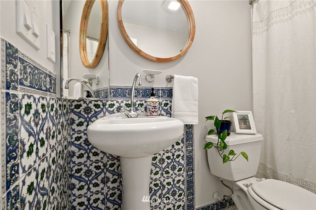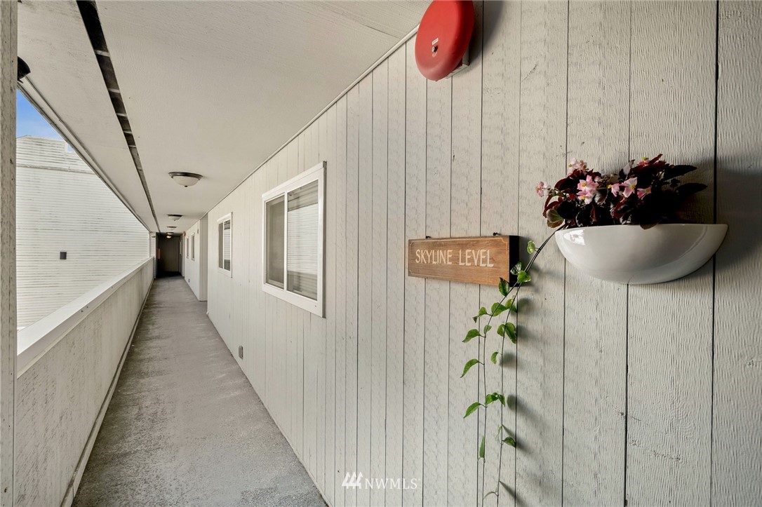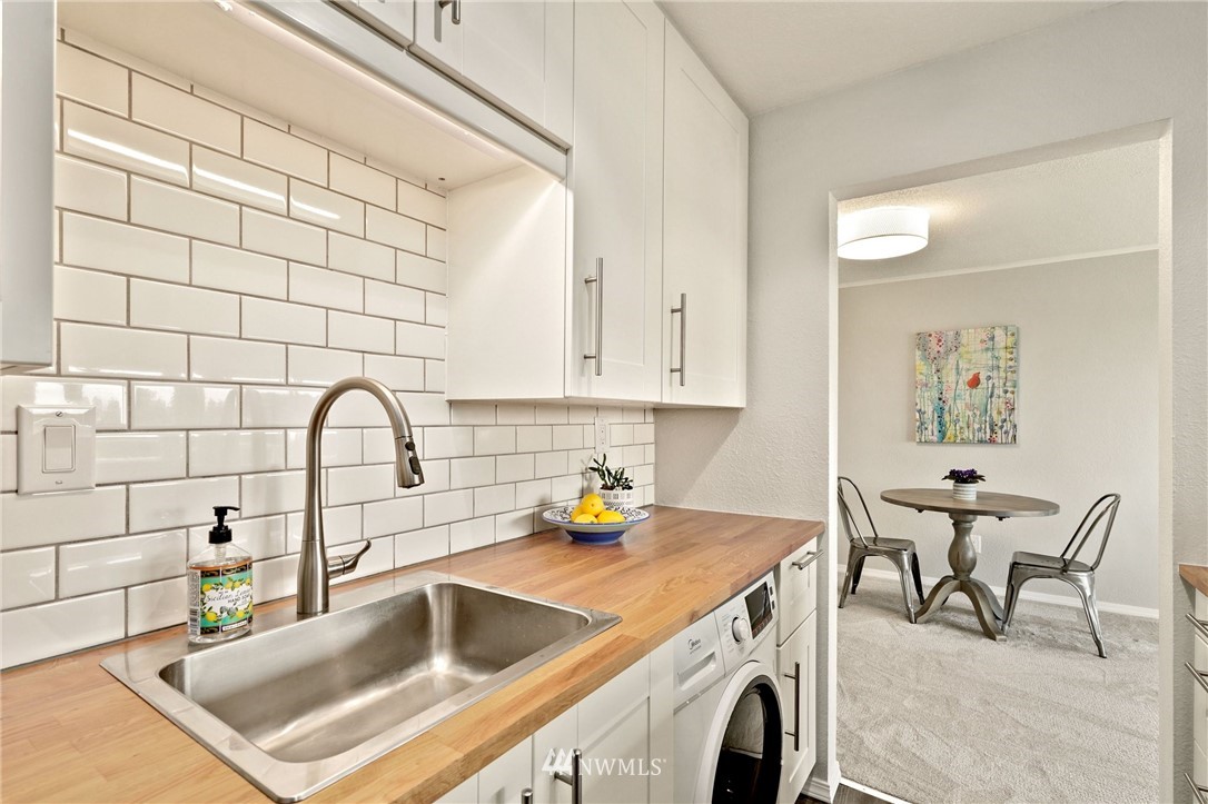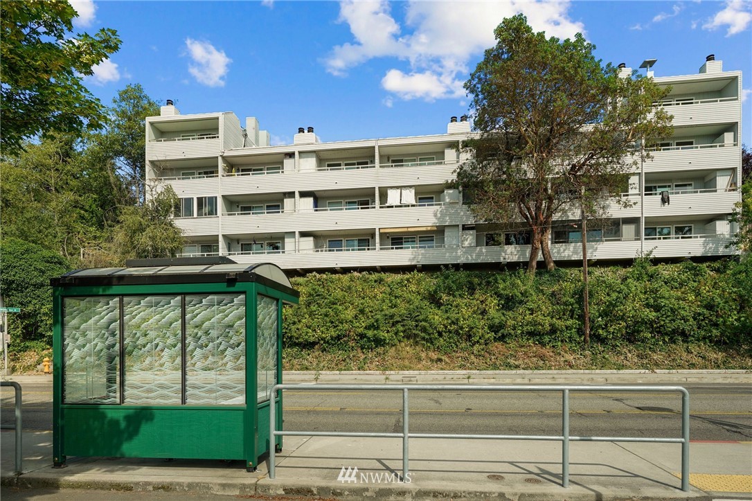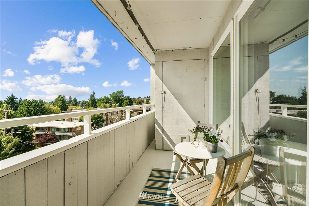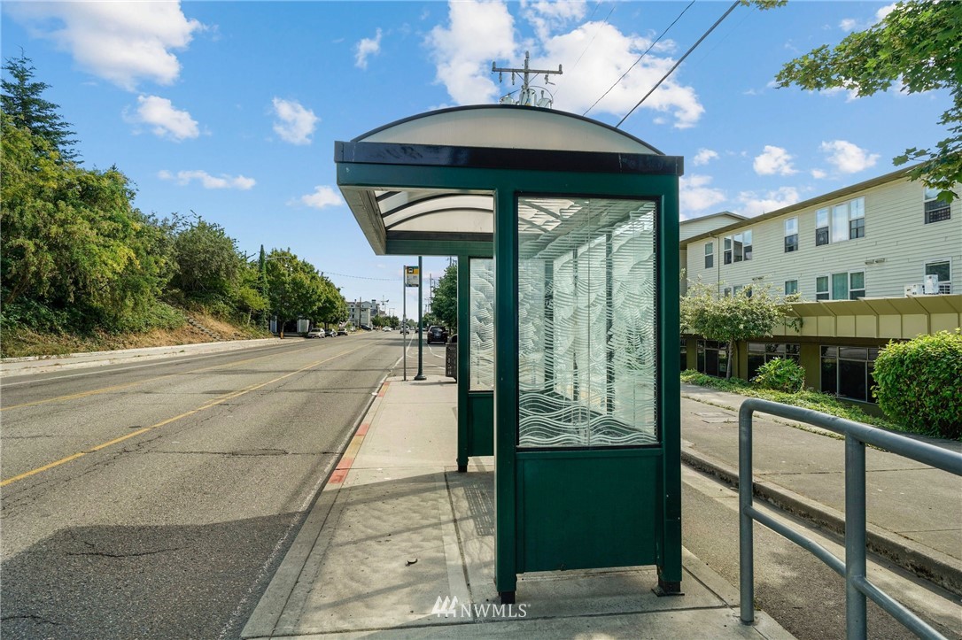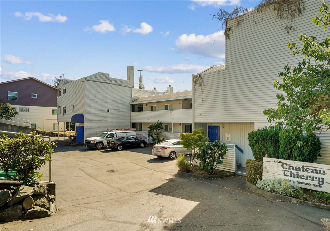 Recently updated top floor 1 bedroom condo in great Greenwood location. Enjoy beautiful sunsets and the amazing mountain views from your private deck or living room. Updated kitchen has white shaker cabinets with new hardware, butcher block counter-tops, stainless steel appliances and subway tile back-splash. New LVP & carpet throughout and fresh interior paint. 1 assigned parking spot. Minutes to vibrant Greenwood District where you can enjoy a variety of restaurants, bars, cafe's, boutique shops and parks. Easy commute to Seattle, with bus access just outside your door. Dues include: water/sewer, garbage & common space. HOA to replace siding and decks in 2022, seller to pay special assessment at closing.