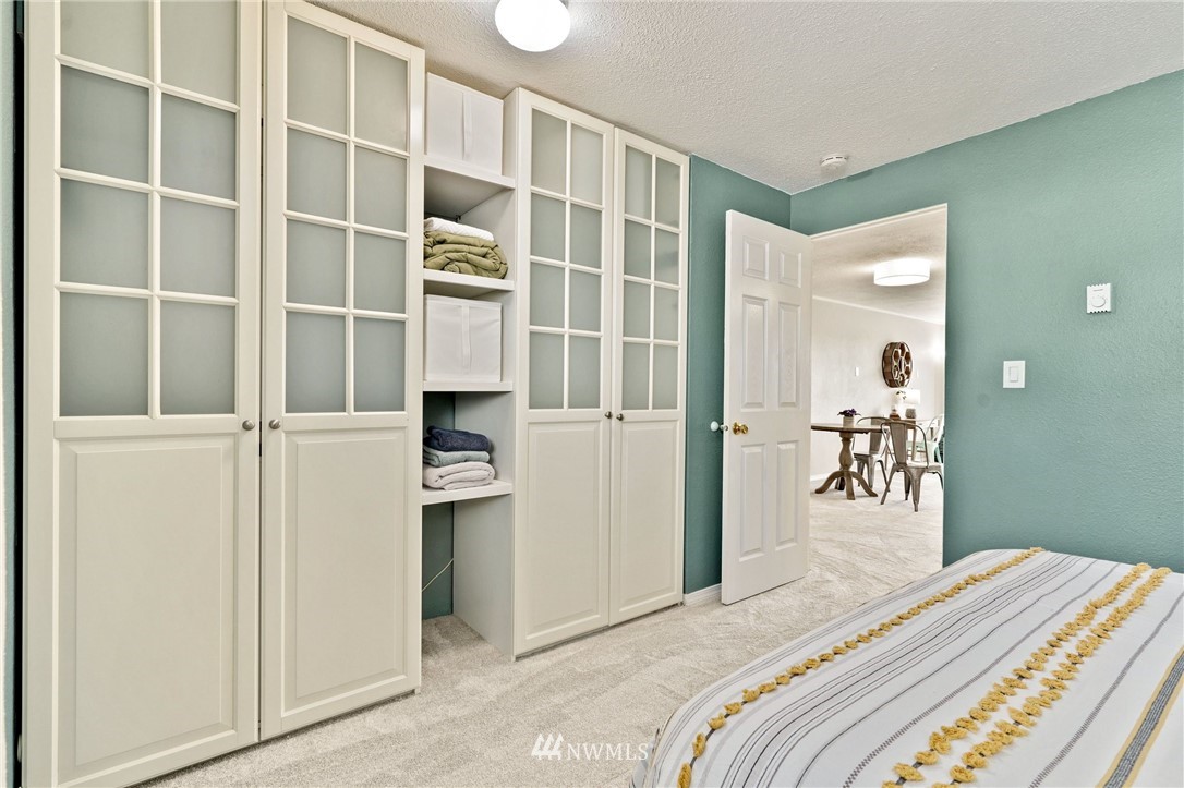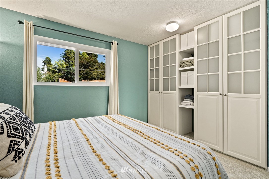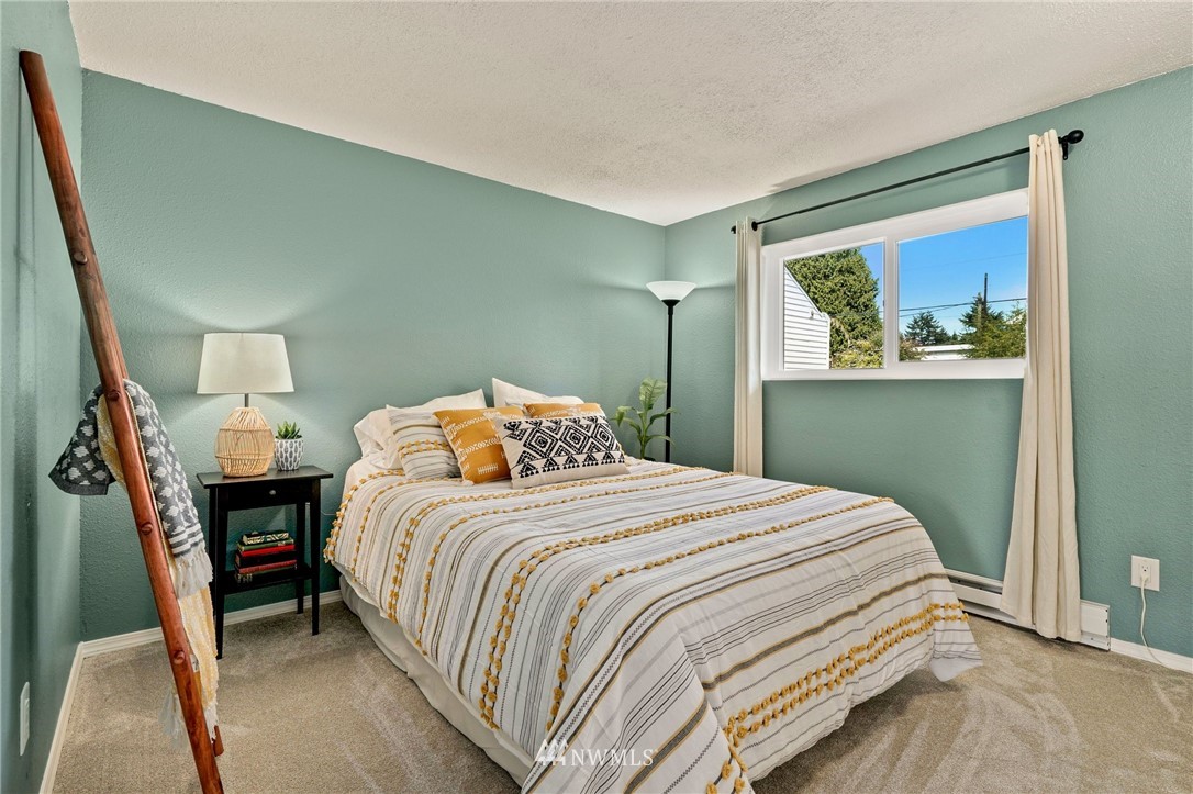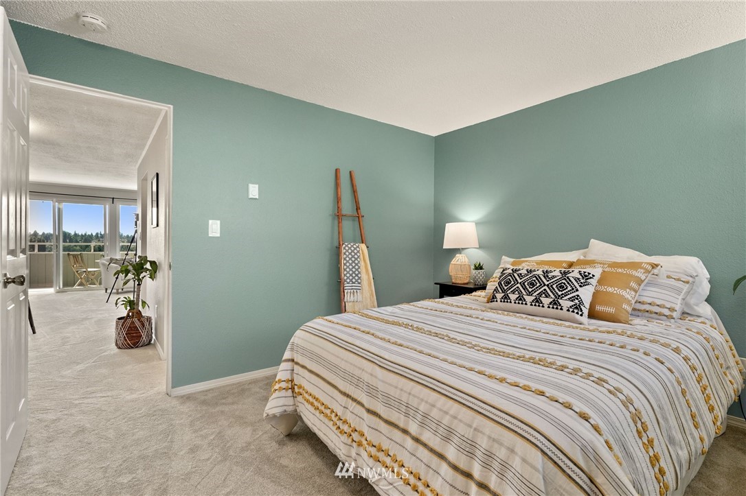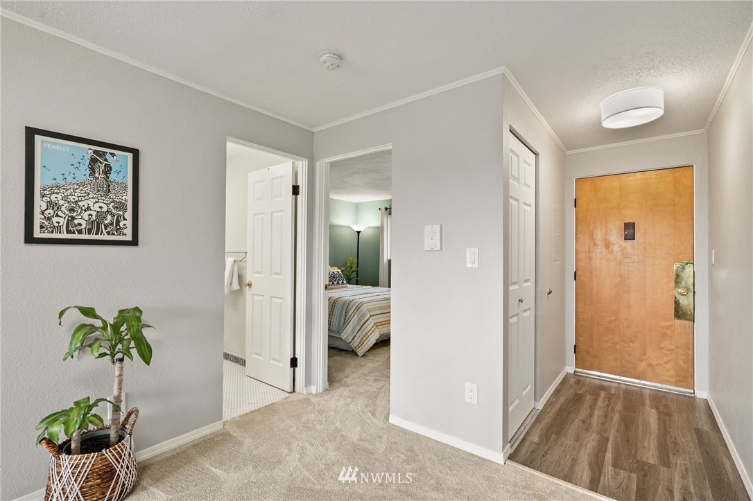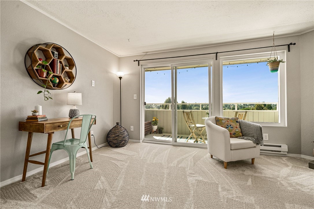 Recently updated top floor 1 bedroom condo in great Greenwood location. Enjoy beautiful sunsets and the amazing mountain views from your private deck or living room. Updated kitchen has white shaker cabinets with new hardware, butcher block counter-tops, stainless steel appliances and subway tile back-splash. New LVP & carpet throughout and fresh interior paint. 1 assigned parking spot. Minutes to vibrant Greenwood District where you can enjoy a variety of restaurants, bars, cafe's, boutique shops and parks. Easy commute to Seattle, with bus access just outside your door. Dues include: water/sewer, garbage & common space. HOA to replace siding and decks in 2022, seller to pay special assessment at closing.