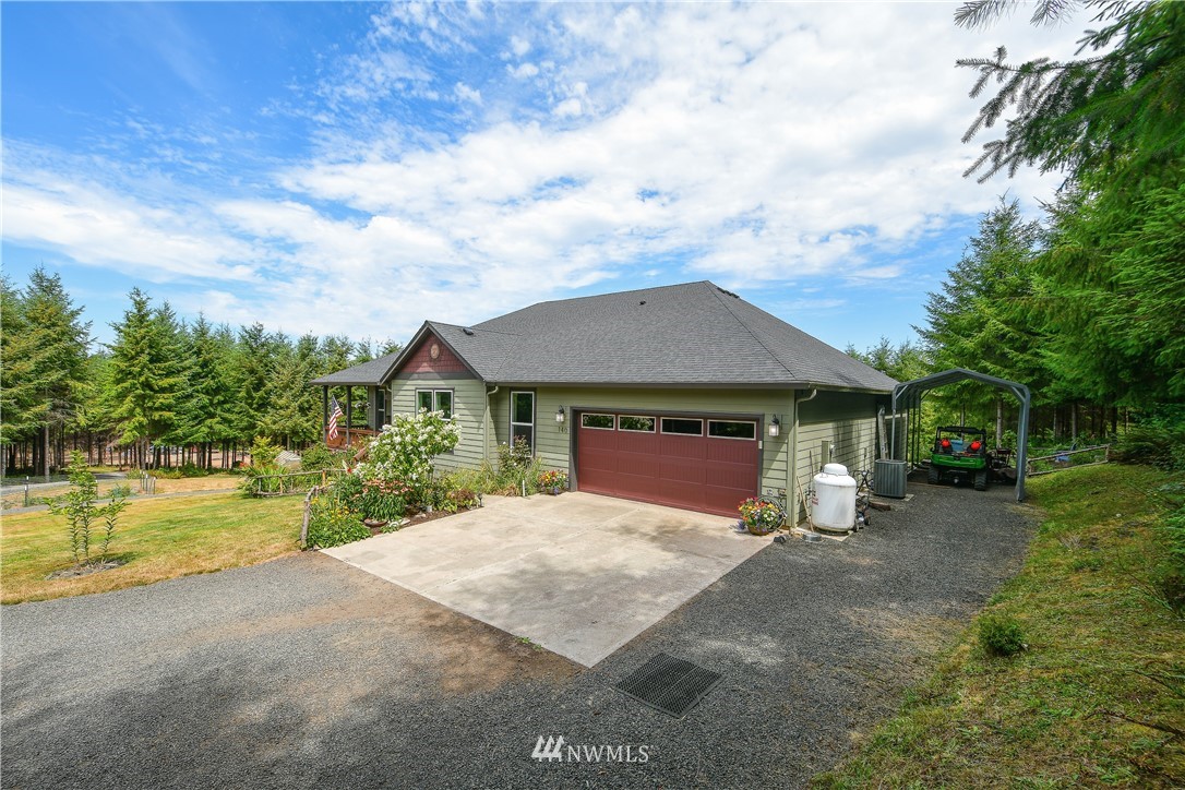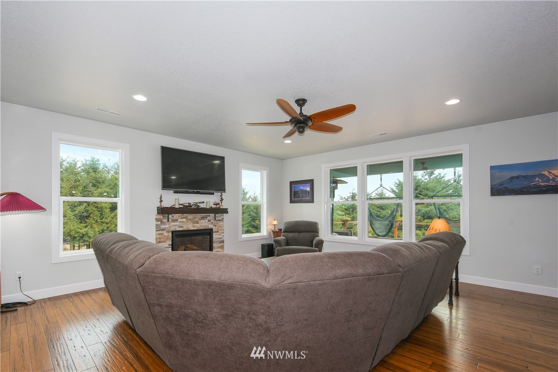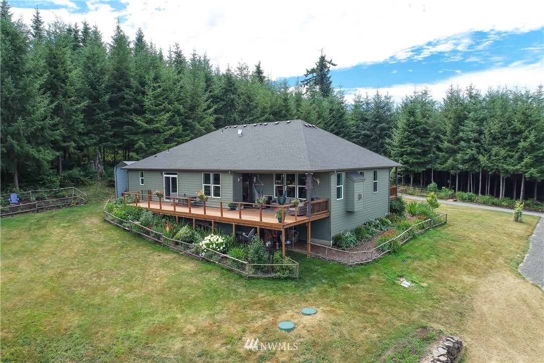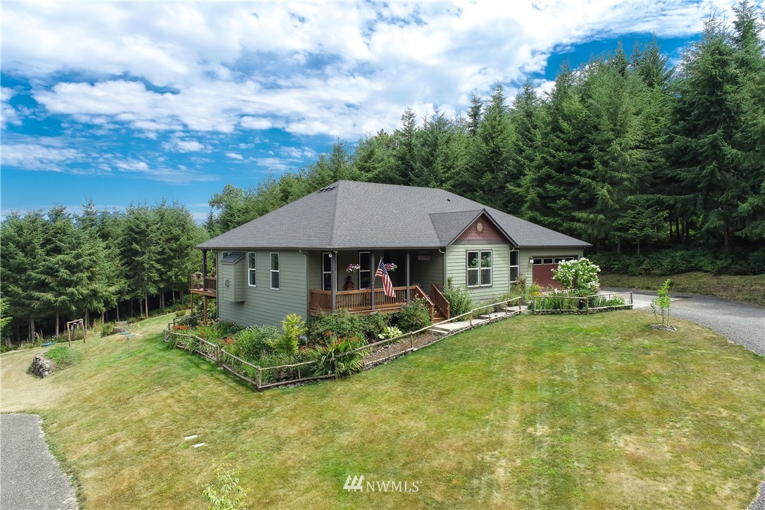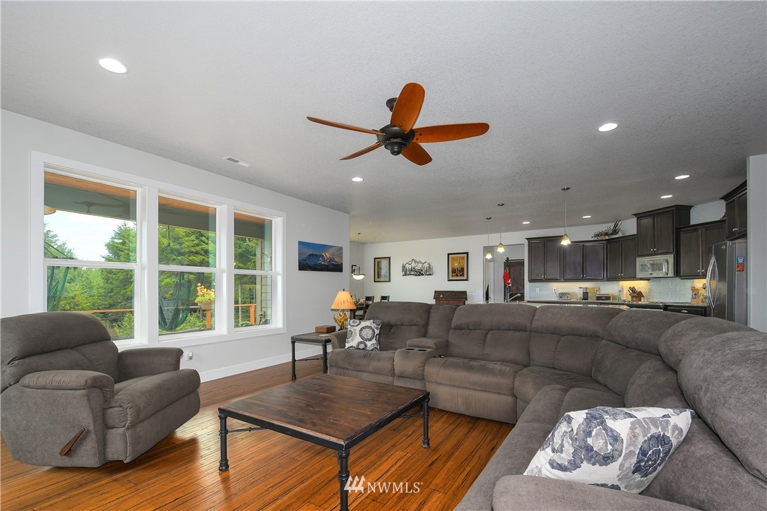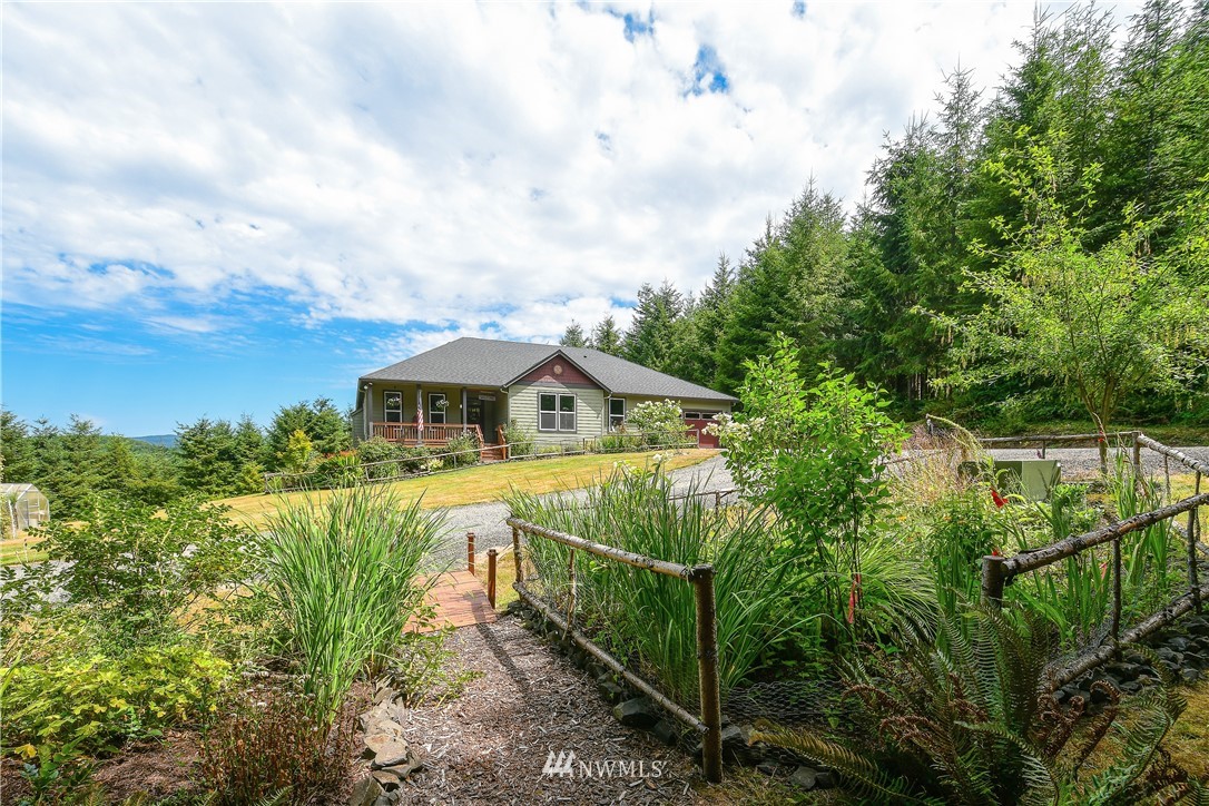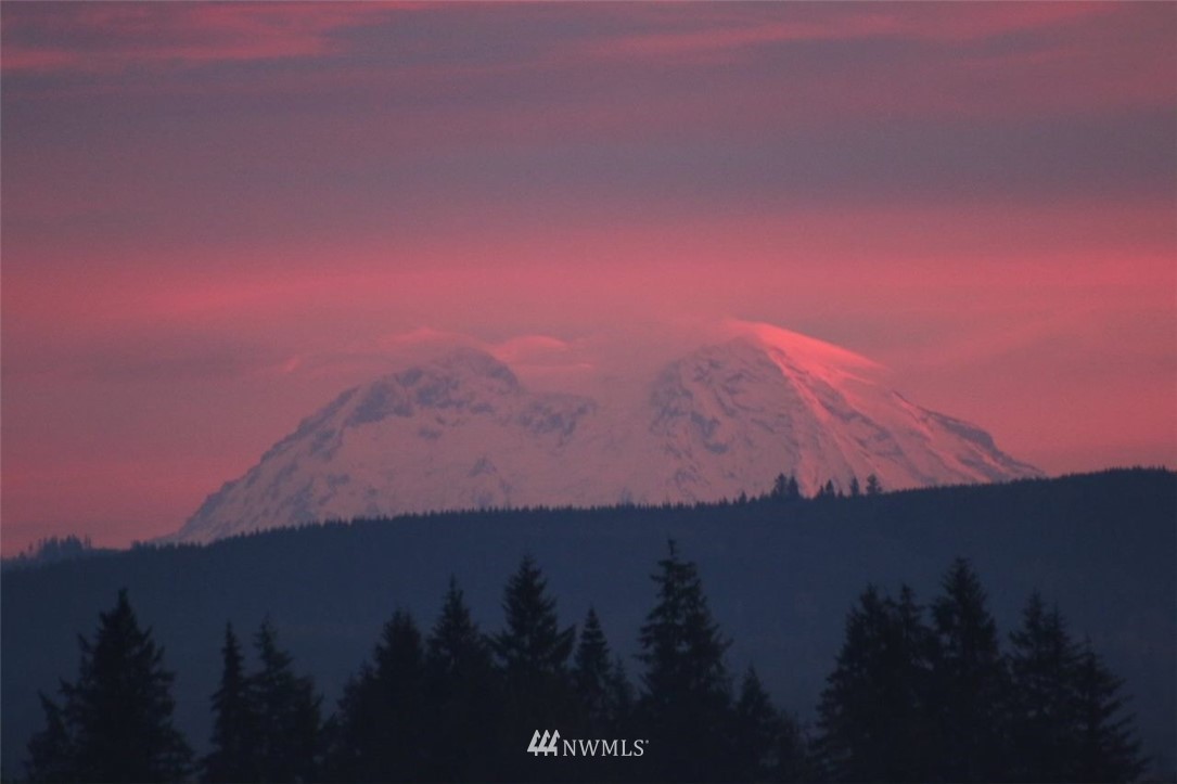 Luxurious one level home in a private gated community on 7 secluded acres with views of Mt Rainier! Pristine home boasting 3bdrms, 2 bthrm, Great Room living w/vaulted ceiling, light & bright frml living rm, dining rm w/door to viewing deck, Gourmet kitchen w/custom cabinetry-granite countertops-large island-SS appls, spacious mstr suite w/exquisite tile shwr-walkin closet-slider to deck, hardwood Bamboo plank flooring, generous utility rm, oversized 632 SF garage w/shop area, inviting covered entry deck, heat pump, cement plank siding, sweeping circular driveway, RV parking w/carport, crawlspace designed for possible daylight bsmt, manicured grounds w/gorgeous flower gardens, fire pit, fruit trees, garden space & plenty of room for a shop.