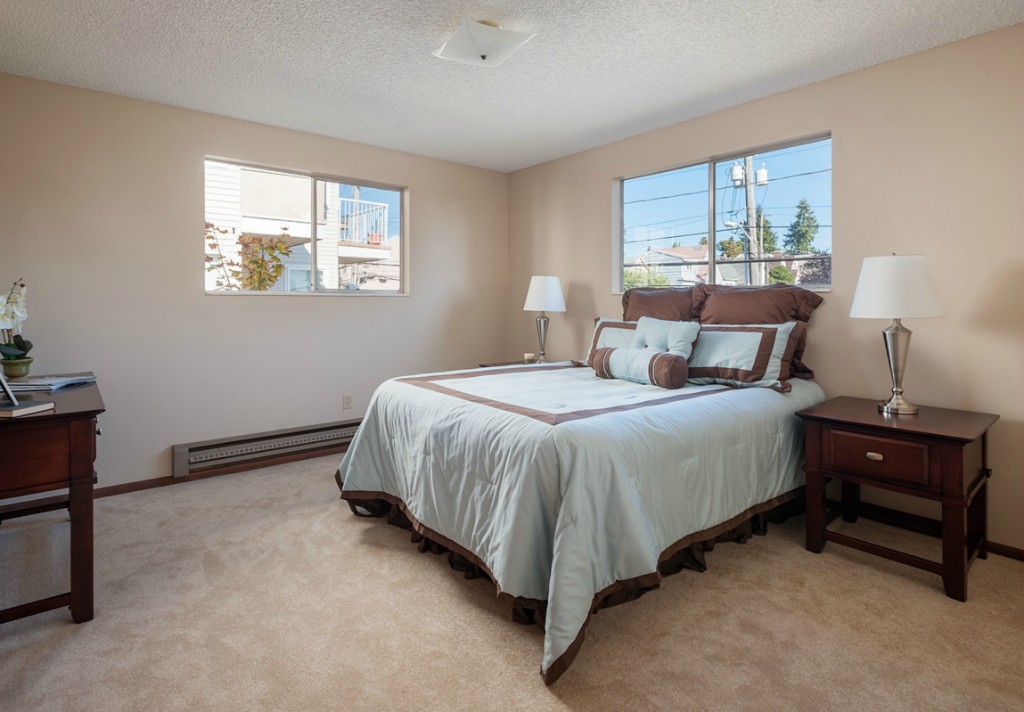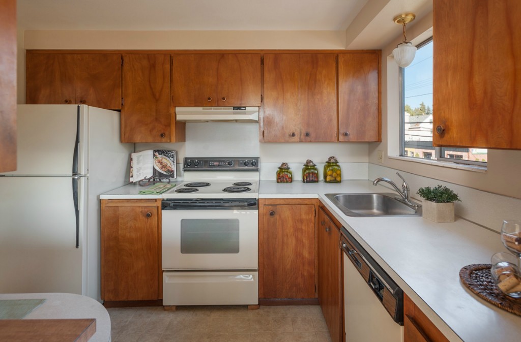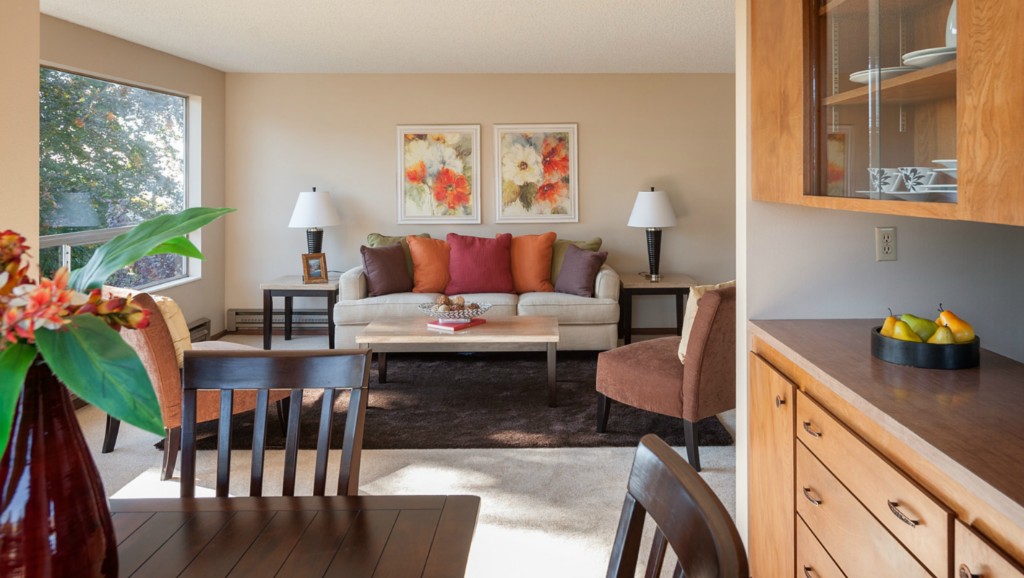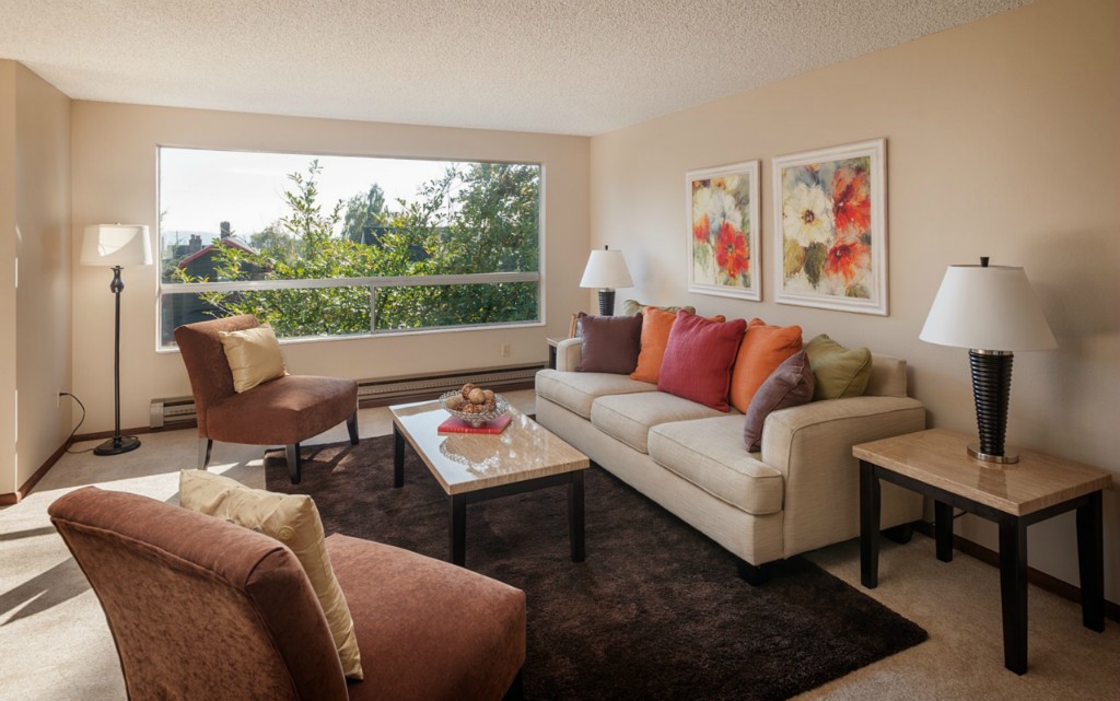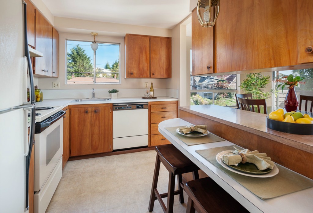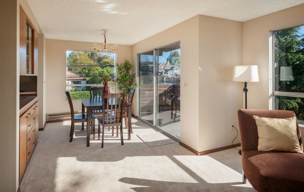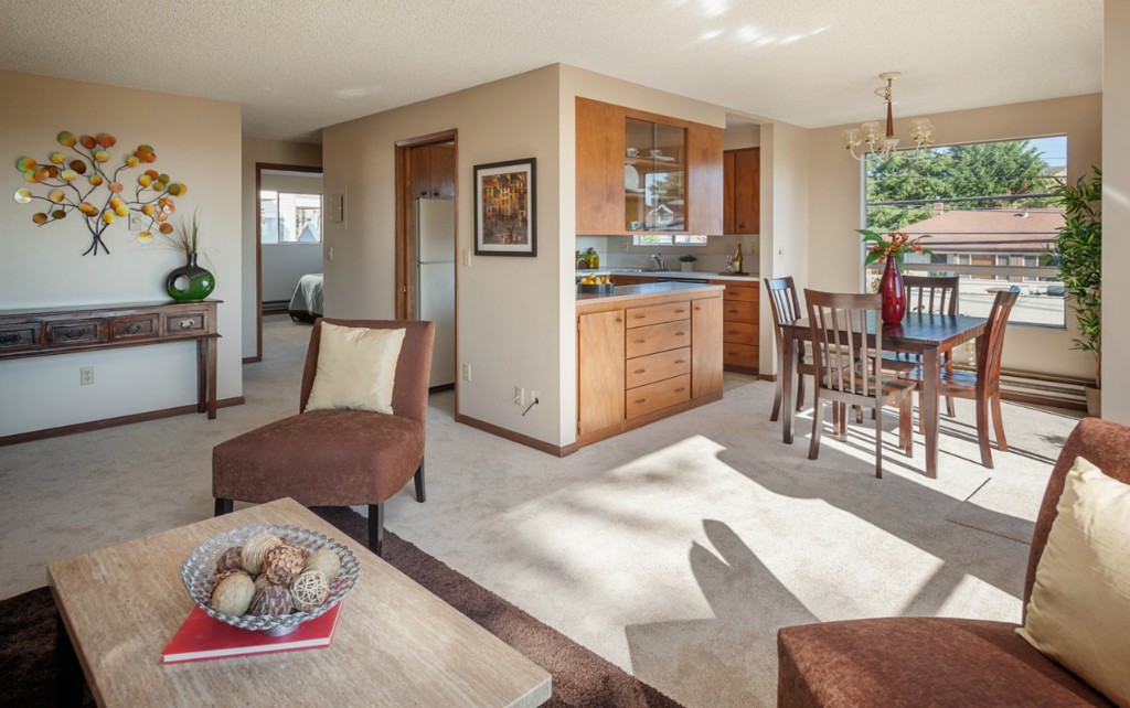 Spacious top-floor corner unit with great natural light & open living spaces. Enjoy territorial & peek City views from inside and from the balcony! Common-sense floor plan with dining room & a kitchen with ample prep & eating space! Newly carpeted throughout, covered parking, 9-unit building! Great Maple Leaf location close to Green Lake, U Village & the UW. Easy access to I-5 & the bus line.