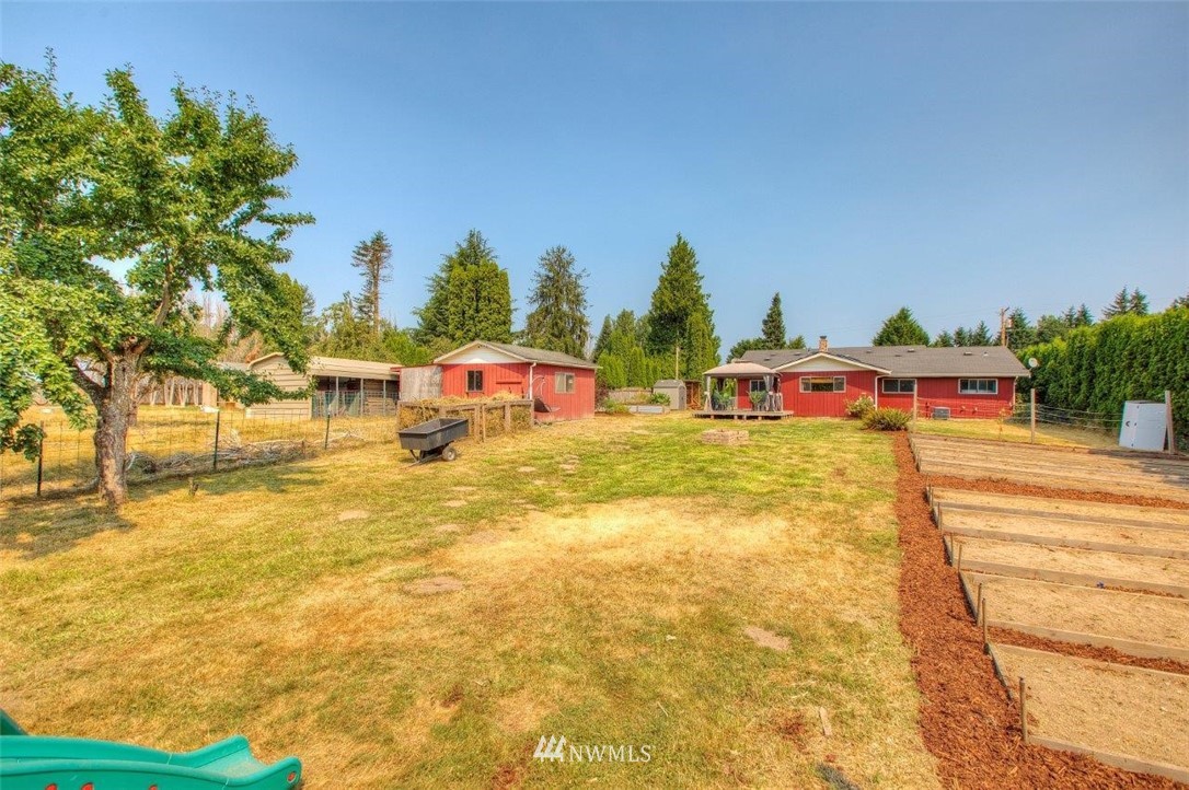 Home Sweet Home! 3 bedroom 1.75 bath rambler on 2.28 acres. You will love the private setting. New high end LVP flooring, trim & paint in the living room. Owner's Suite with private 3/4 bath & ceiling fan. The open floor plan is ideal with 2 living areas. The kitchen has a breakfast bar and walk in pantry. This is the ideal spot for privacy, acreage and great commuting access. The lovely backyard features: A deck with gazebo, outbuildings, mini barn, blooming pear, plum, walnut & hazelnut trees. 1,000 sq ft raised bed garden! Plenty of space for RV Parking. A/C for those hot summer days. All appliances included.