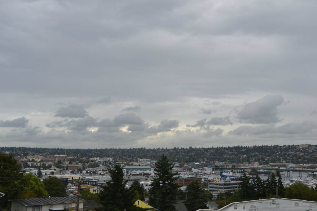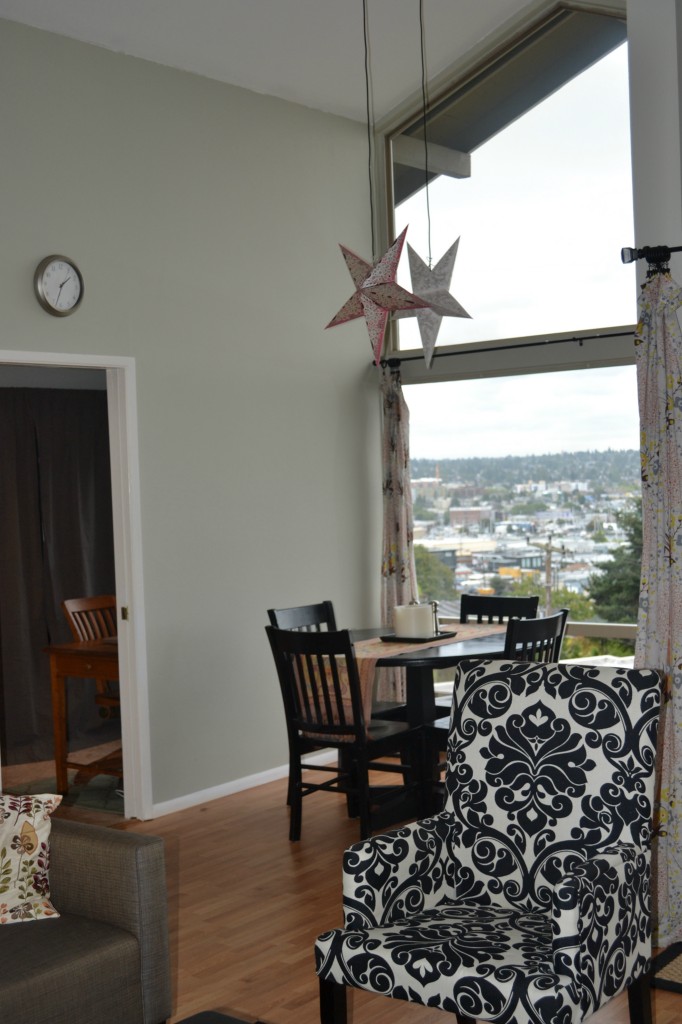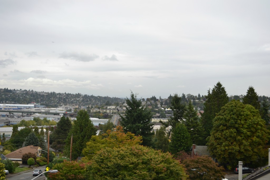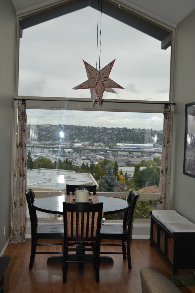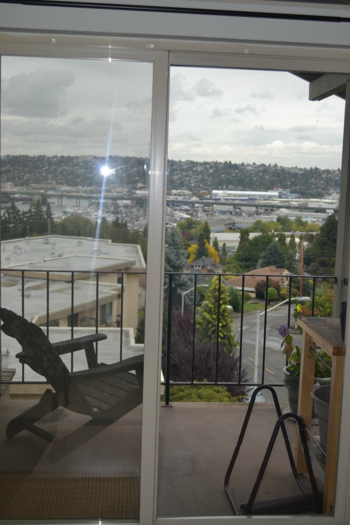 The VIEW is the thing - wall of windows opens to the Cascades, the Canal and lights of Queen Anne and Ballard. This top floor corner unit, best in the complex, includes a well-sized view deck, the perfect spot for morning sunrises or evening barbecue. Light filled Living and Dining rooms feature vaulted ceilings and cozy wood burning fireplace. Eat-in kitchen has it's own window. There are 2 large bedrooms, master with en suite, and a 2nd bath. Dues only $207! Pets OK. Only 9 units in complex.