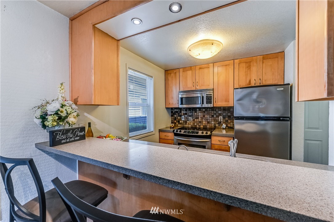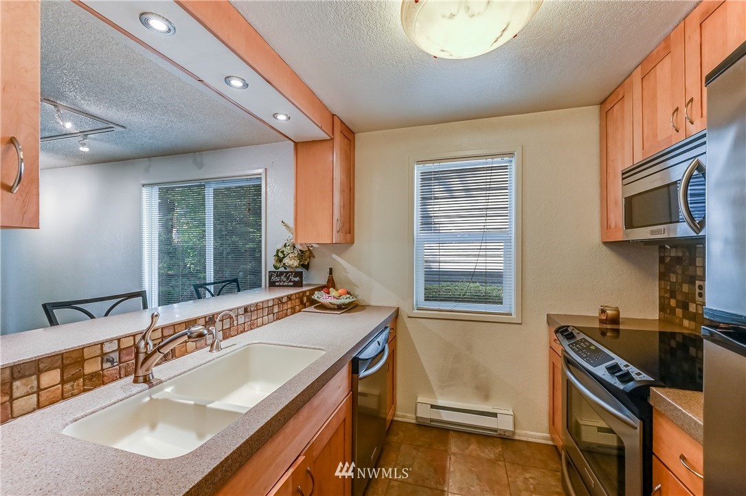 Why Rent! Own a nice 2 bedroom condo with an individual Garage. Walk to bakery, produce stand or one of 3 parks in the area. Two large Bedrooms, 1 Full Bath, Kitchen overlooks open living/dining area. In North Everett with easy access to I-5, Marysville, Snohomish River, Everett Community College, Providence Hospital and Historic Everett. Huge 11' x 23' attached and secure garage and additional storage and parking spaces. Association dues cover water, sewer, garbage, yard maintenance and reserves.
