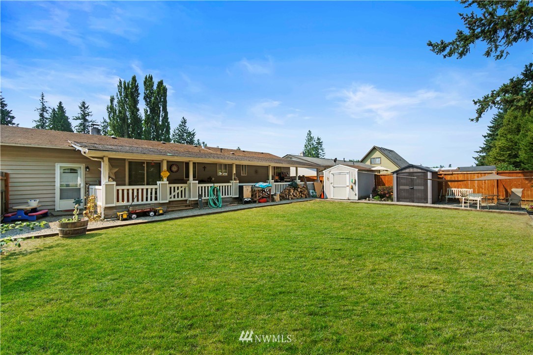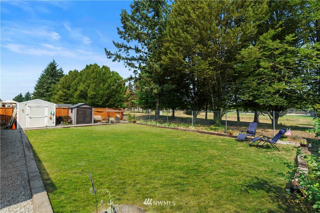 Charming rambler in AMAZING Location! Sitting on a quiet street this adorable 3 bed, 1.75 bath home has an inviting living area that is centered around a cozy fireplace that is just steps from the kitchen so that you are never far from your guests. Off of the living room is a rec-room/office/MIL that offers a sink, counter area and a bathroom with a separate entrance out to the backyard! Speaking of the backyard, this is where this house is truly set apart from all others. The outdoor, fully covered living space runs the full length of the house, so you can enjoy the outdoors no matter what the weather looks like! And not to be out done, the house backs up to Game Farm Park, where you can run play & watch baseball! Don't Dream it, Own it!