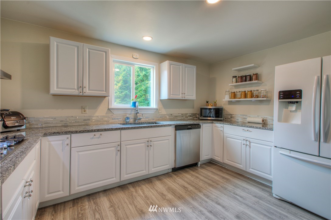 There are some features of a home that are impossible to add later, and this home has that in abundance. Located on a quiet and private 2.43 beautiful open acres with room for a potential ADU, this 2 story home has recently undergone some important updates. The kitchen includes newer cabinets with Quartz counters, a 5 burner gas cooktop, SS Range and a brand new dishwasher all on new laminate flooring that extends into the bonus room, a great area for play or entertaining. A large newly built deck overlooking the property on the second level provides the main floor entry a nice covered patio. Fresh paint on the exterior and a brand new wellhouse are just a few more of the updates. Great home with potential to expand!!!