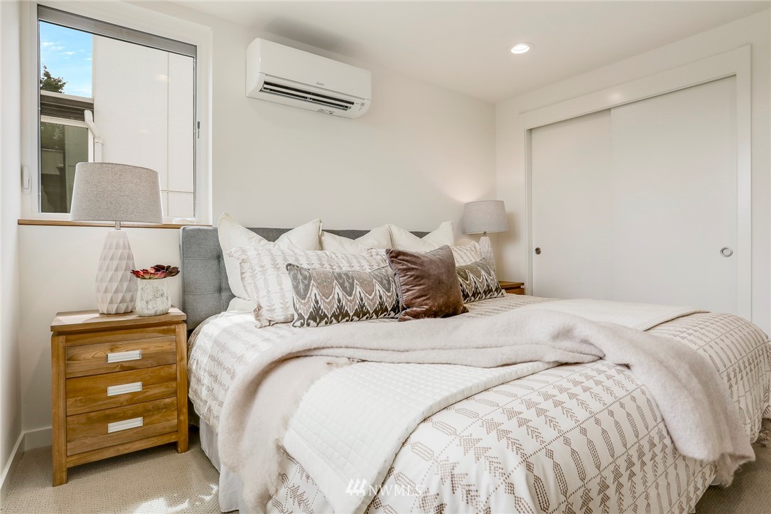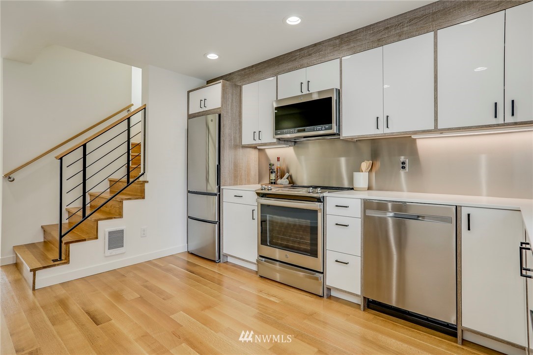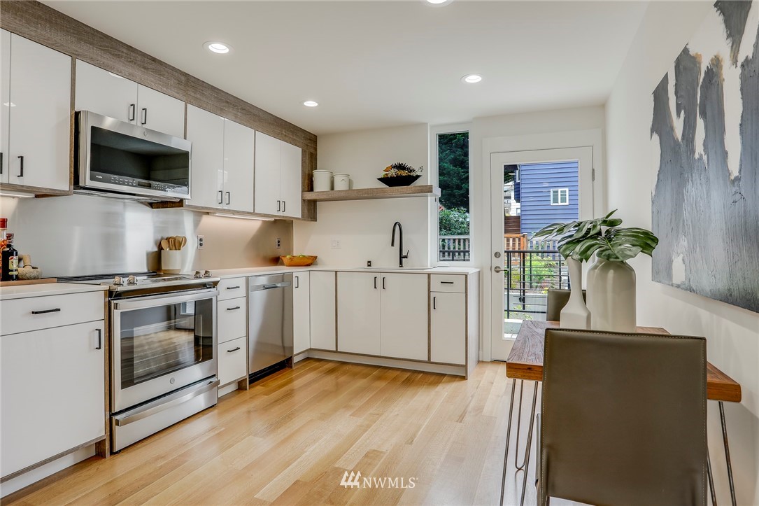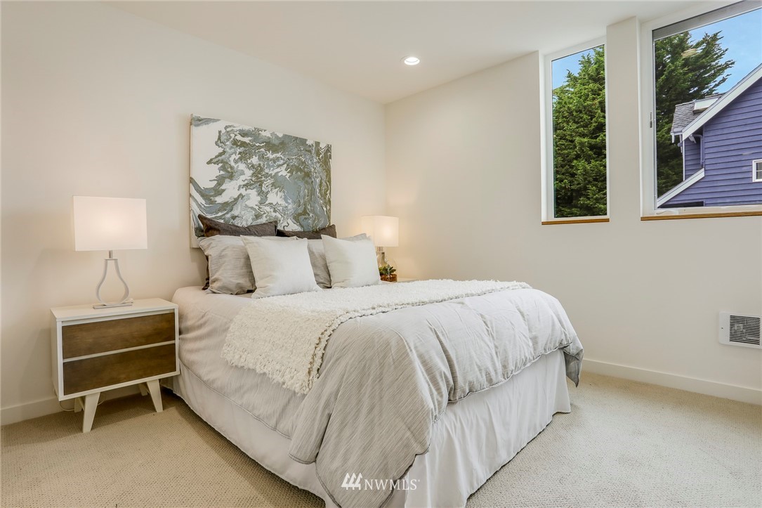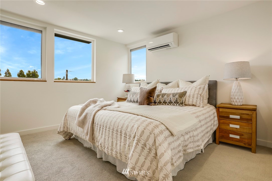 Stunning new construction townhouse by one of Seattle's premier builders Build Sound. Stylish and spacious end unit, with stunning lofted ceiling and large windows provide spectacular natural light throughout. Featuring beautiful solid oak hardwoods, designer lighting, GE Profile stainless appliances, quartz countertops, and two-toned custom cabinetry. Mosaic-tiled baths, glass-enclosed rainfall showers and bidet. Efficient heat/AC mini splits provide cool summer months. Roof top deck perfect for summer BBQs and entertaining. Walking distance to Breweries, Cafes, Pubs, and Restaurants including Fisherman's Terminal.