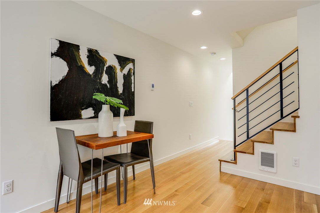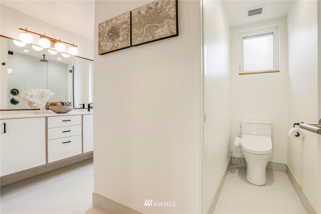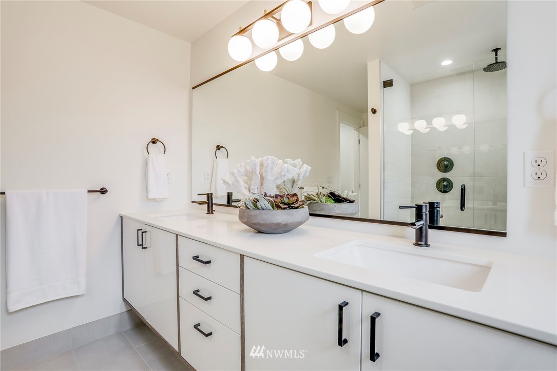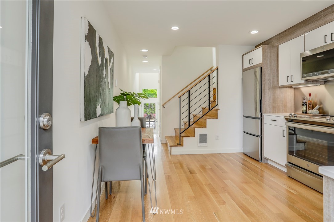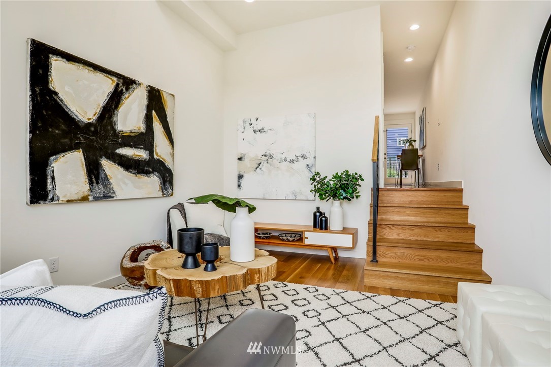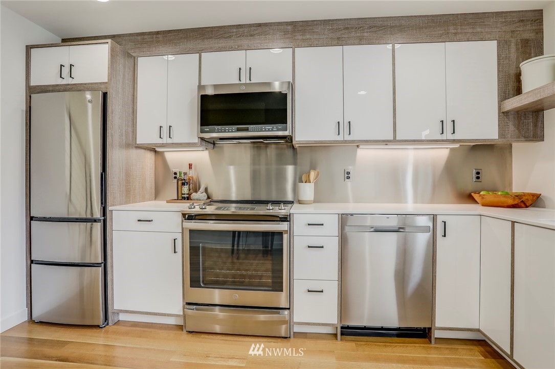 Stunning new construction townhouse by one of Seattle's premier builders Build Sound. Stylish and spacious end unit, with stunning lofted ceiling and large windows provide spectacular natural light throughout. Featuring beautiful solid oak hardwoods, designer lighting, GE Profile stainless appliances, quartz countertops, and two-toned custom cabinetry. Mosaic-tiled baths, glass-enclosed rainfall showers and bidet. Efficient heat/AC mini splits provide cool summer months. Roof top deck perfect for summer BBQs and entertaining. Walking distance to Breweries, Cafes, Pubs, and Restaurants including Fisherman's Terminal.