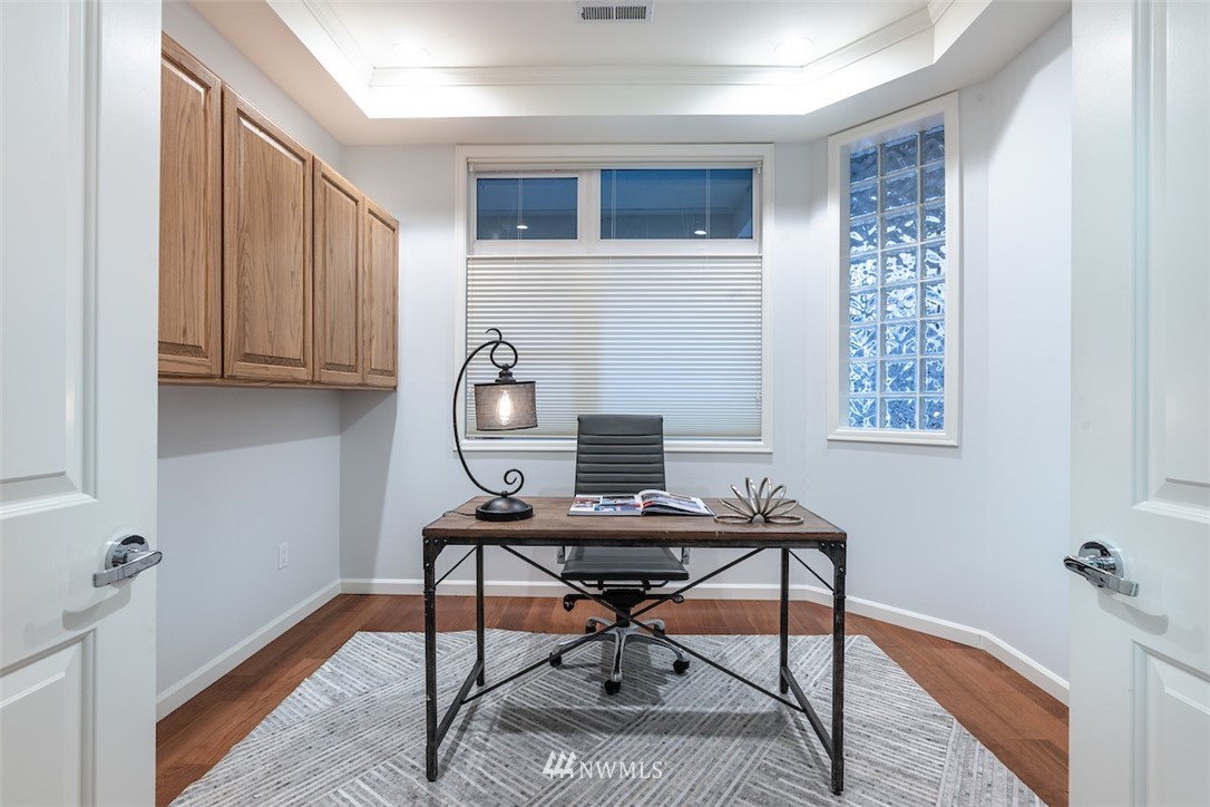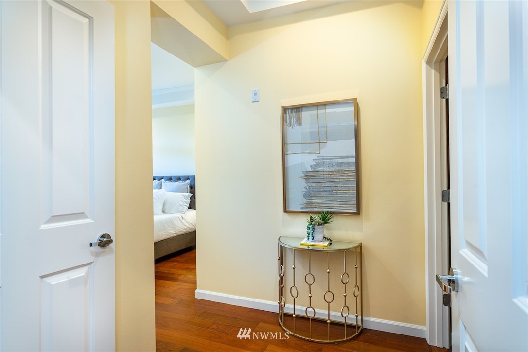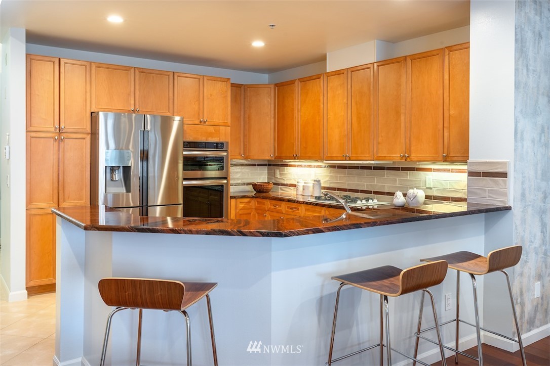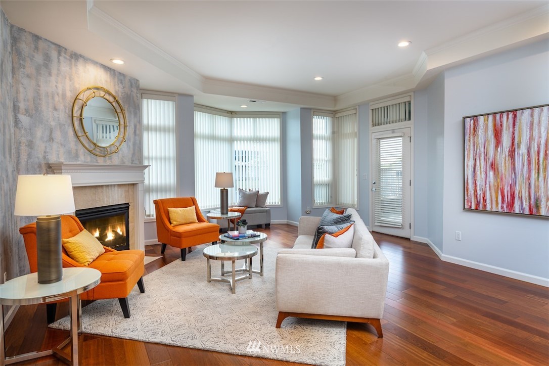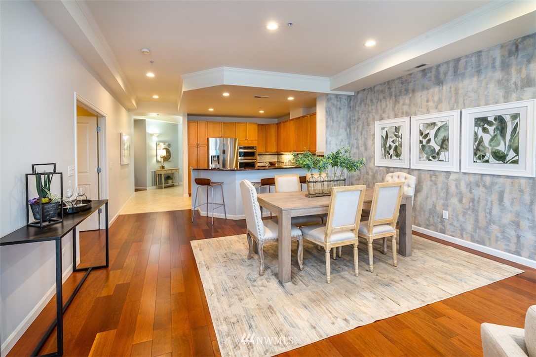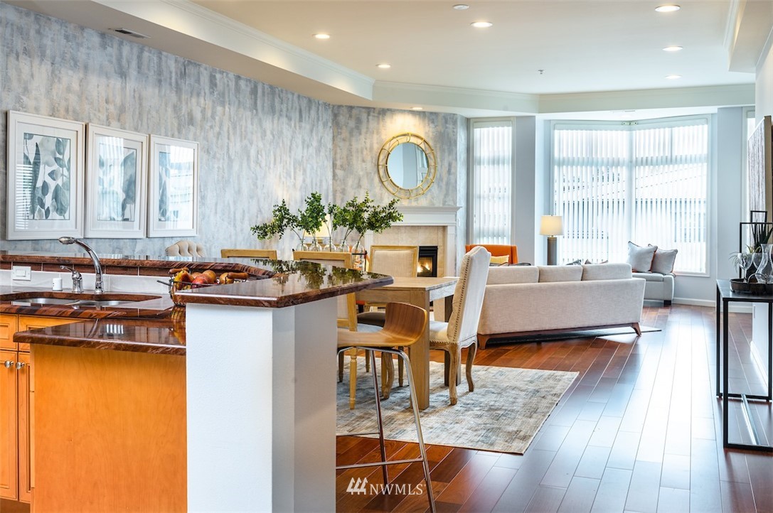 Enjoy all the urban Kirkland lifestyle has to offer right outside your front door. Spacious & elegant 2 bedroom condo with office in the gorgeous & newly renovated 520 Condo building. Step into the open floor plan & take in all the upgrades including gleaming Brazilian cherry floors & beautiful handpainted walls. Light filled great room w/ gas fireplace & chef’s kitchen including Venetian marble counter tops & new SS appliances. A large island is perfect for entertaining. The luxurious main suite includes bath w/ jetted tub & walk-in closet. Great room & main bedroom open to private deck w/views. Separate laundry room w/sink. New HVAC & water heater, secure garage with 2 parking spots & storage unit. Pet friendly. This one has it all!