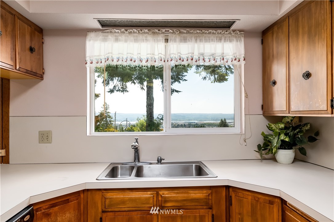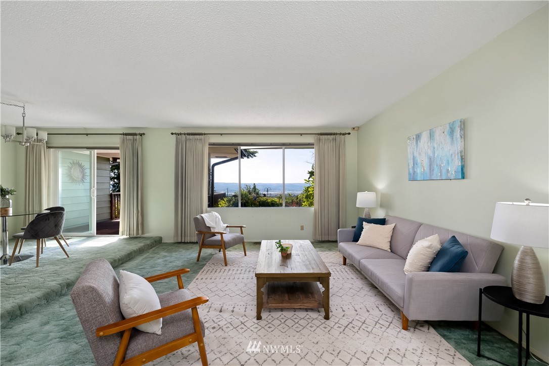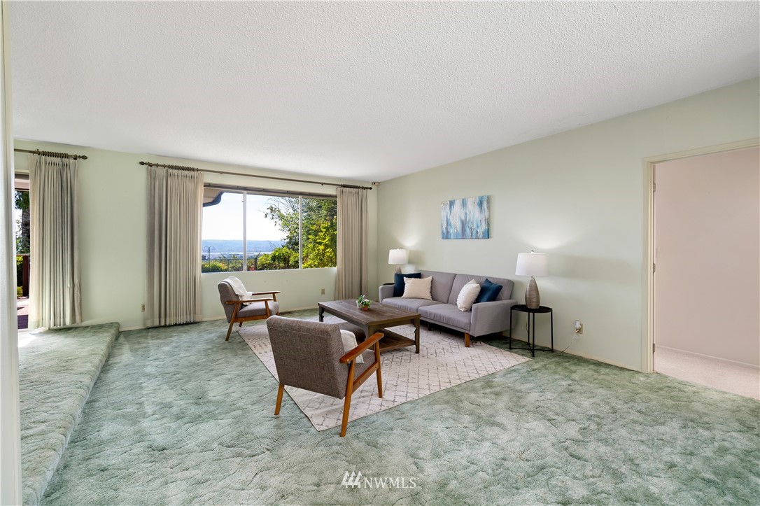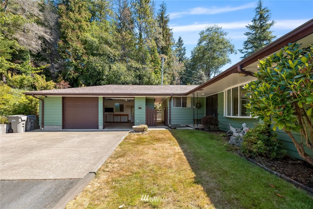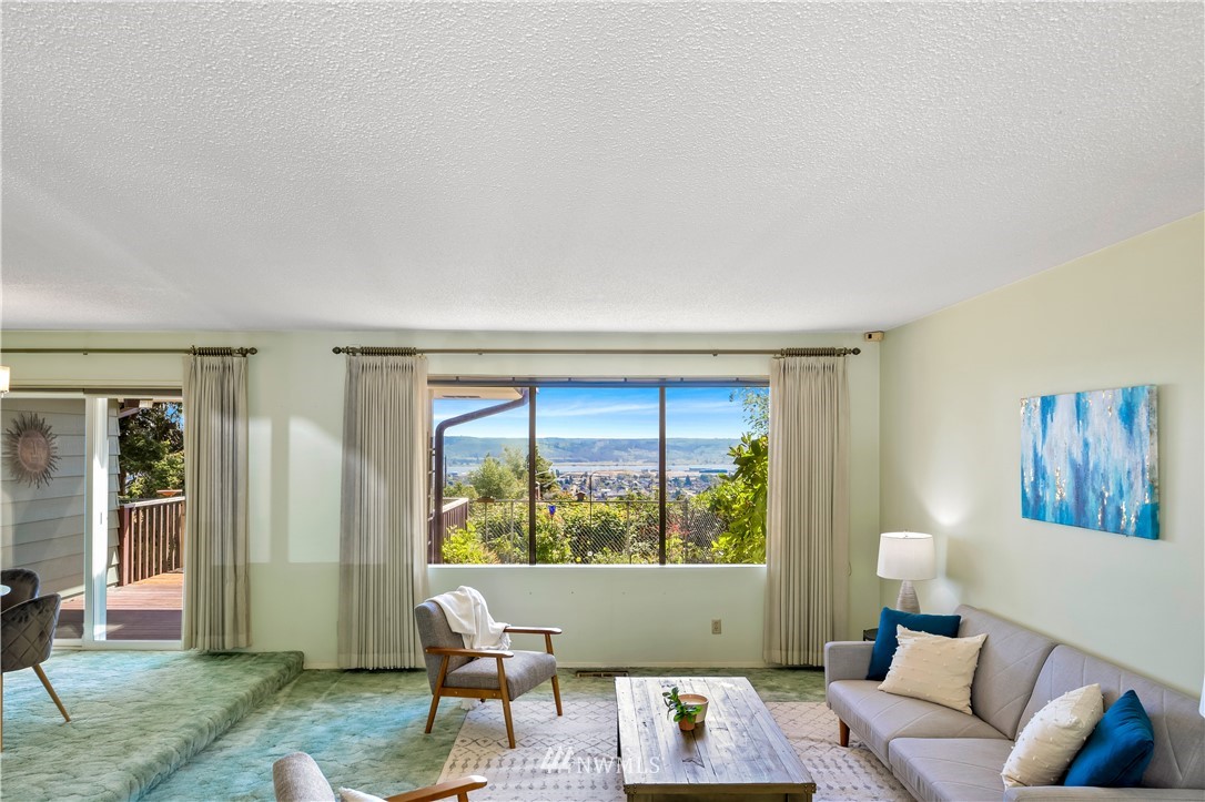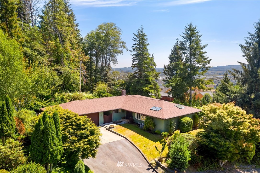 Wonderfully maintained 3 bed, 1.75 bath Mid-Century home nestled up on the hill. 1775 sqft of living space, secluded dead end street location, amazing city and river views, and convenient single level floorplan. Open concept living and dining areas overlook the back yard with master bedroom with en-suite on the right and kitchen, informal living with fireplace, and two additional bedrooms to the left. Bright and airy throughout with tons of skylights and storage. Kitchen features hidden bar area and peninsula seating. Outside you'll find a finished two car garage with storage room, large porch, patio space with covered storage, and fully fenced back yard. Upgrades to the home include newer roof, heat pump, furnace, and exterior paint!