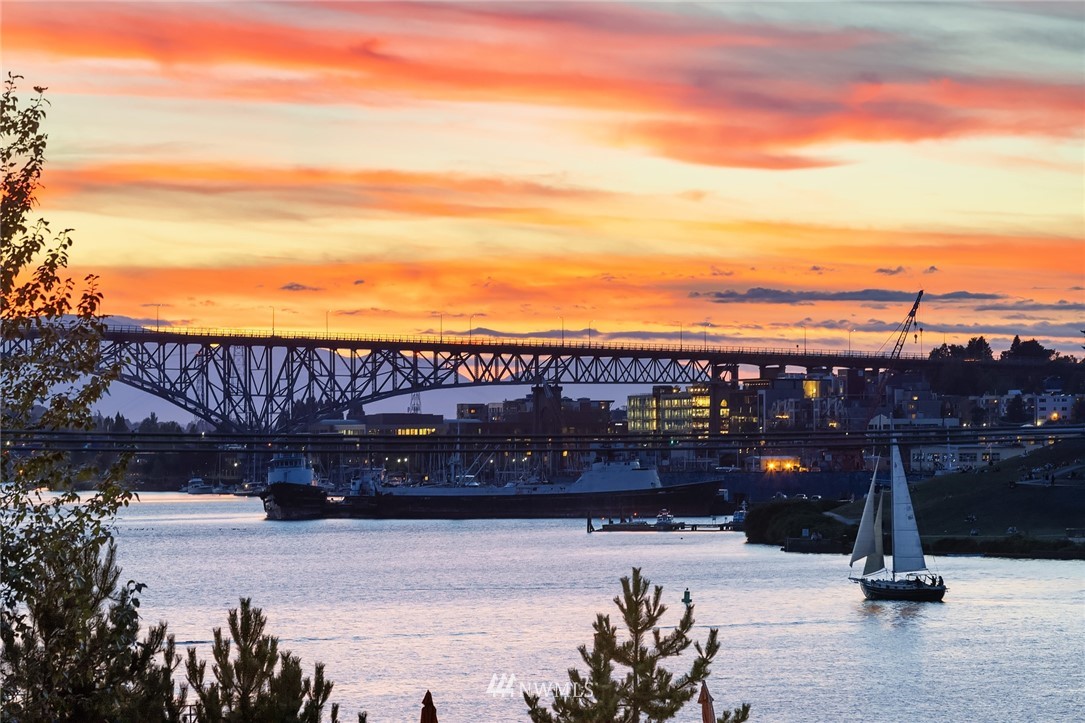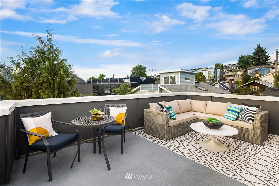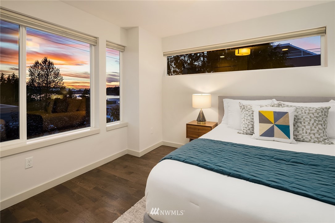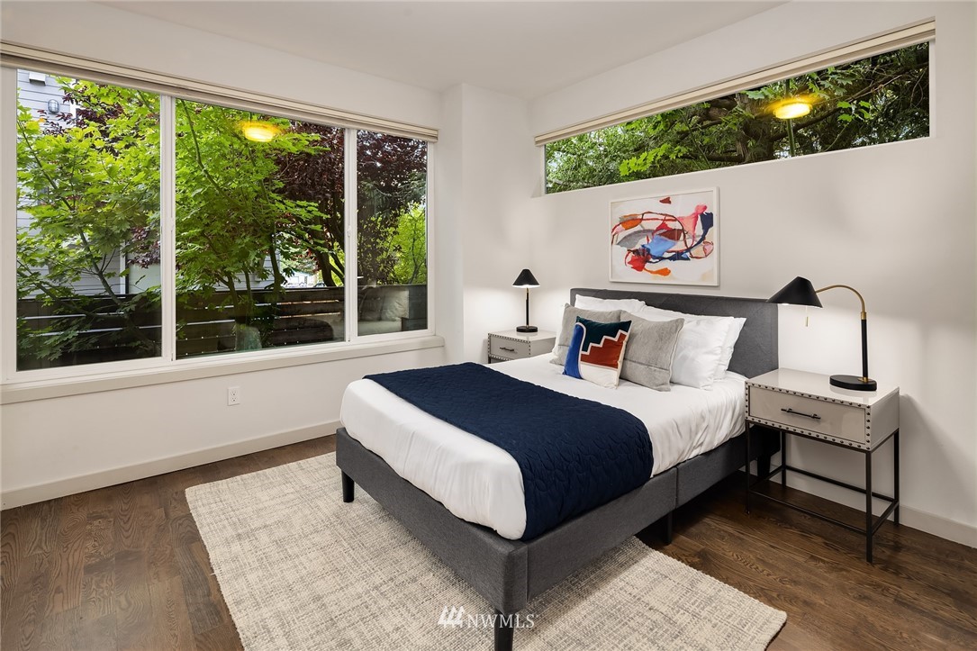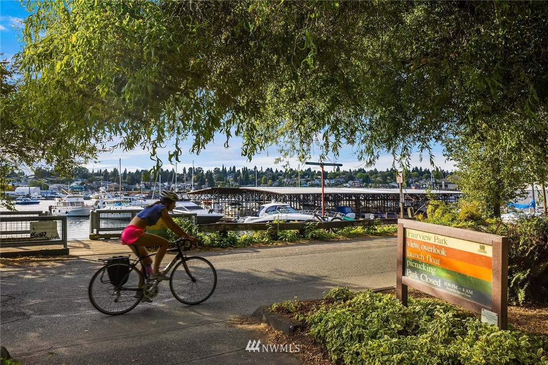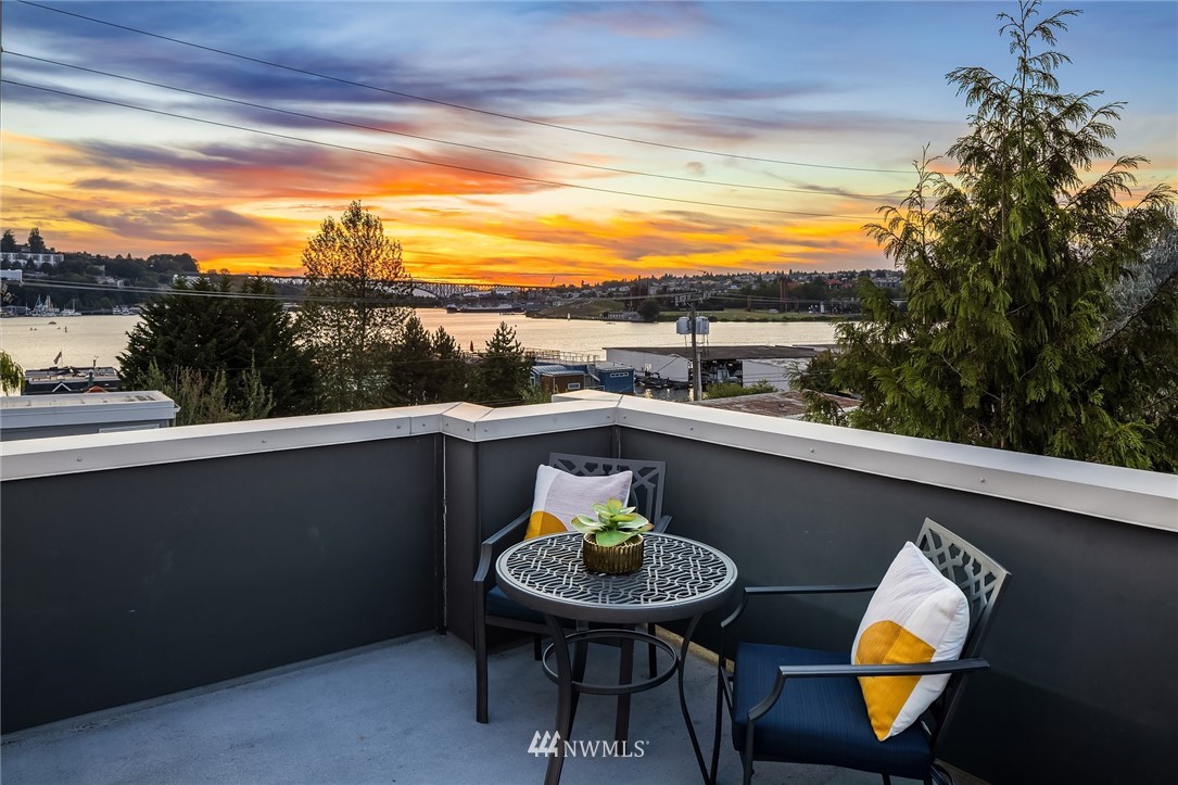 Spectacular tri-level 2BR Eastlake TH with rooftop deck offering panoramic views of Lake Union, Gas Works Park + Olympics. Impress guests with front-row seats to fireworks on the Fourth + Christmas boat show or just relax while savoring brilliant sunsets. Built Green 4-star home reflects a sophisticated contemporary design aesthetic inside + out. The true open-concept main living area fills with natural light from walls of windows and is highlighted by solid oak hardwoods + high ceilings. Modern kitchen features luxe S/S appliances + refined finishes. Entire upper level is spacious owner’s suite incl. spa-like bath + WIC with built-ins. Short walk to Lake Union waterfront/neighborhood parks + also convenient to UW, Fremont, SLU + downtown.