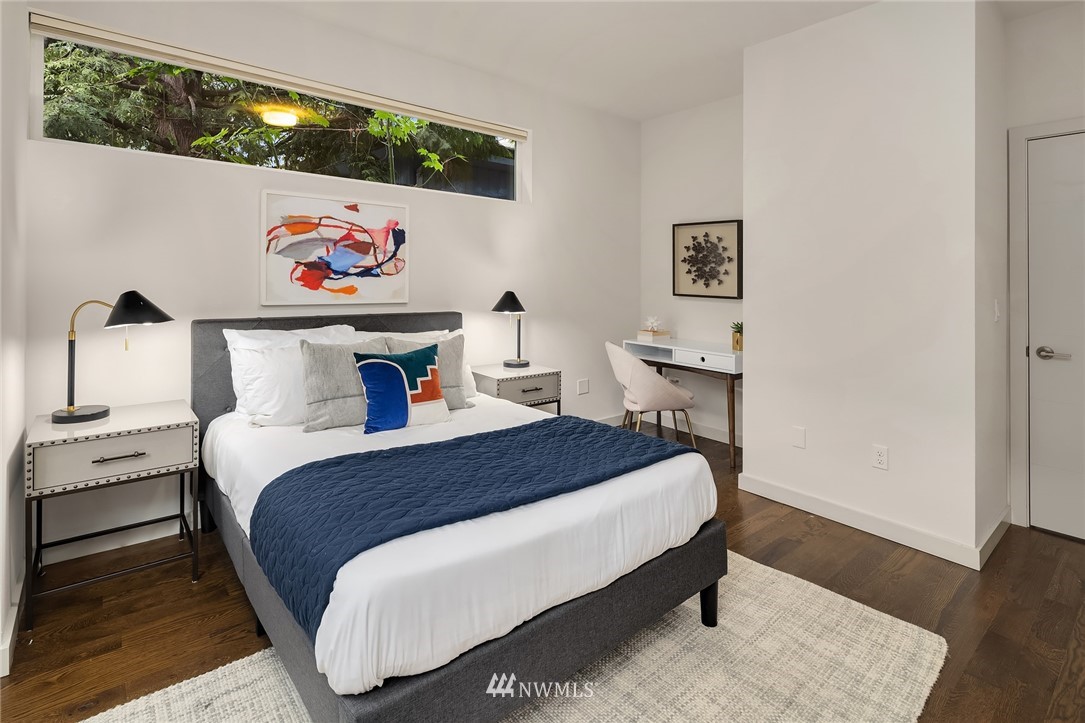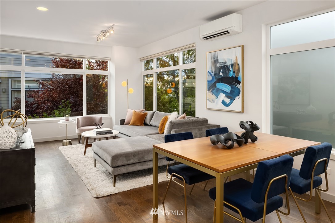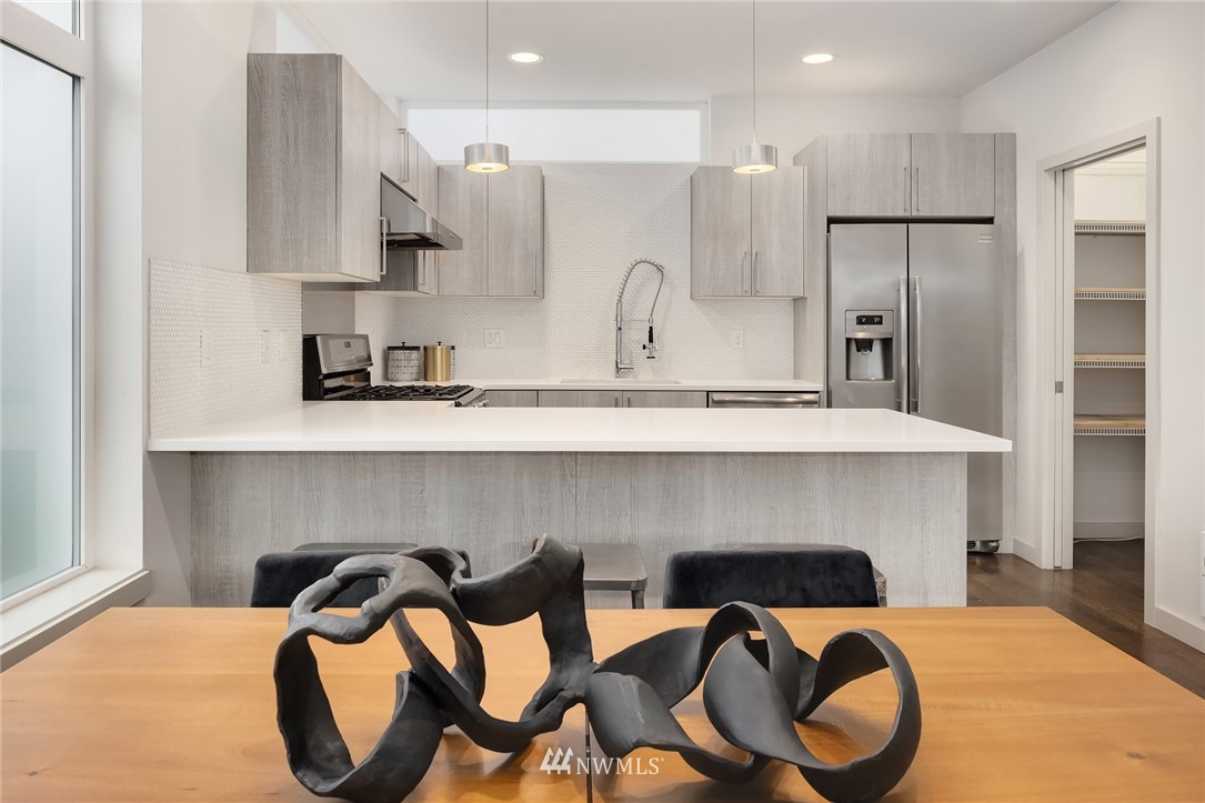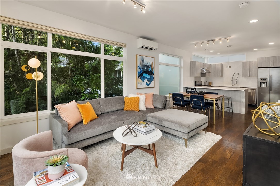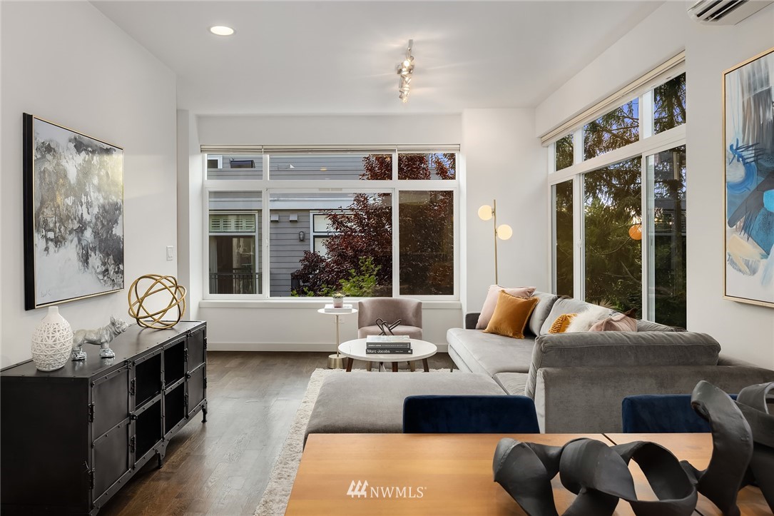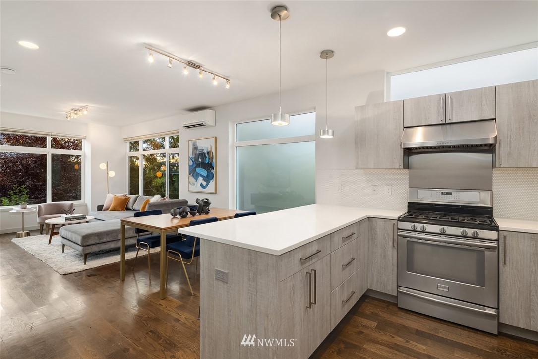 Spectacular tri-level 2BR Eastlake TH with rooftop deck offering panoramic views of Lake Union, Gas Works Park + Olympics. Impress guests with front-row seats to fireworks on the Fourth + Christmas boat show or just relax while savoring brilliant sunsets. Built Green 4-star home reflects a sophisticated contemporary design aesthetic inside + out. The true open-concept main living area fills with natural light from walls of windows and is highlighted by solid oak hardwoods + high ceilings. Modern kitchen features luxe S/S appliances + refined finishes. Entire upper level is spacious owner’s suite incl. spa-like bath + WIC with built-ins. Short walk to Lake Union waterfront/neighborhood parks + also convenient to UW, Fremont, SLU + downtown.
