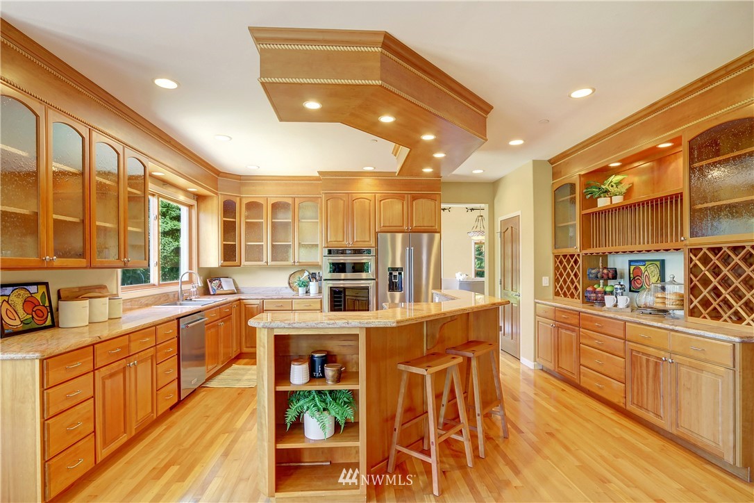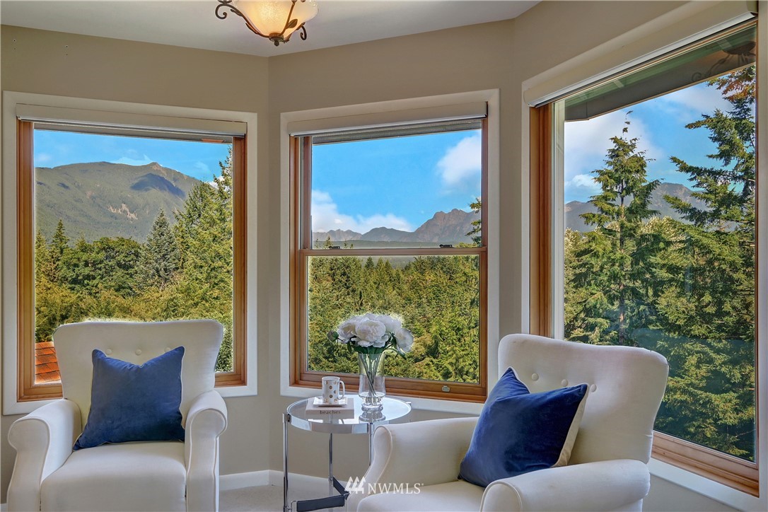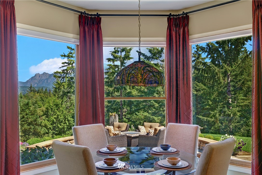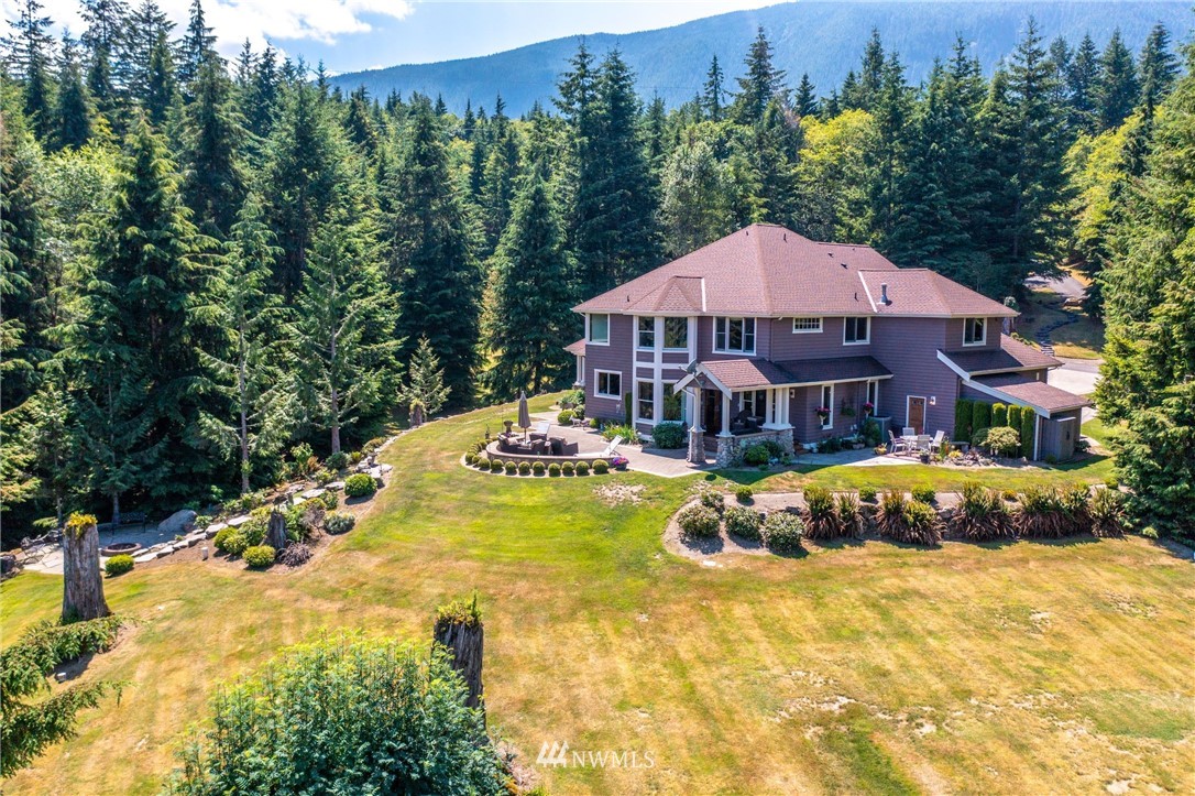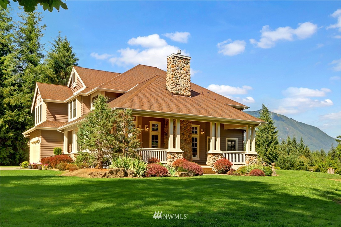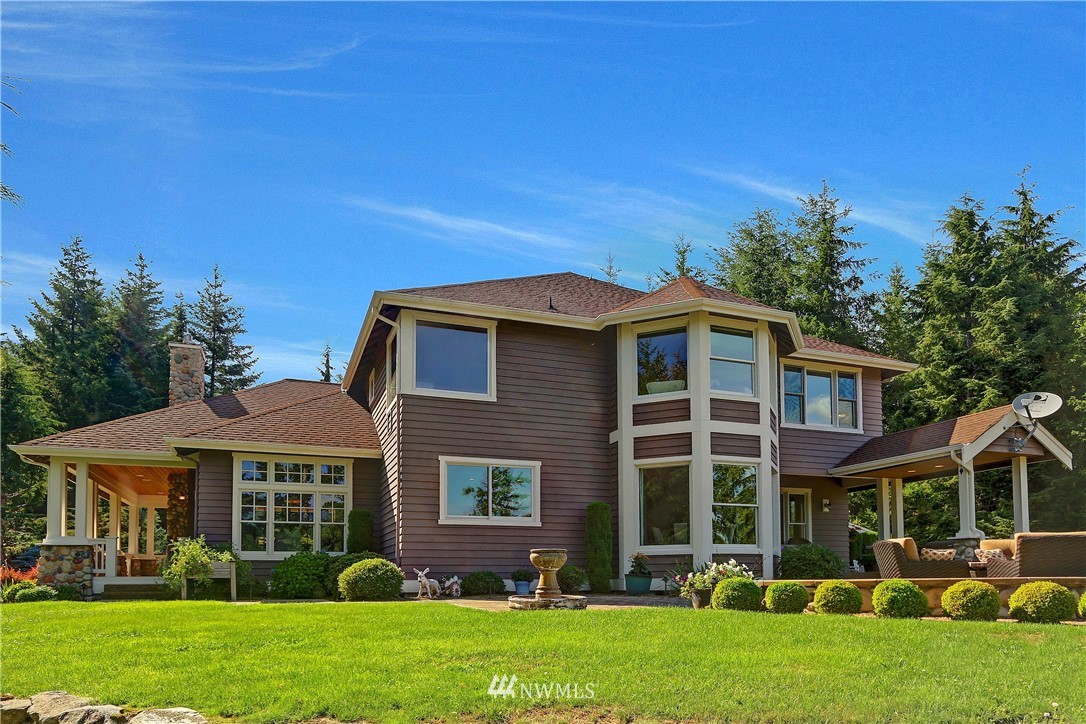 This incredible 3,740 square foot, 4 bedroom estate has 3 ensuite bedrooms on the upper level, plus a spacious main floor office/den and a big upper level bonus room. The kitchen is a chef’s dream and features a large center island, imported granite slab countertops, beautiful wood cabinetry and stainless steel appliances. Incredibly spacious primary bedroom and luxurious 5-piece bath.  Situated on a picturesque, private and serene 9.93 acres that offers breathtaking views of the Cascades. The backyard is heaven with multiple entertaining or relaxing areas. Large 3 car garage with high-end, four-post car storage lift that doubles as a service lift, turning it into a 4 car garage. This home has been lovingly maintained and is a real beauty!