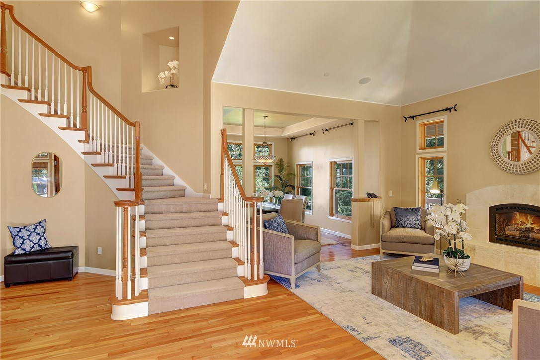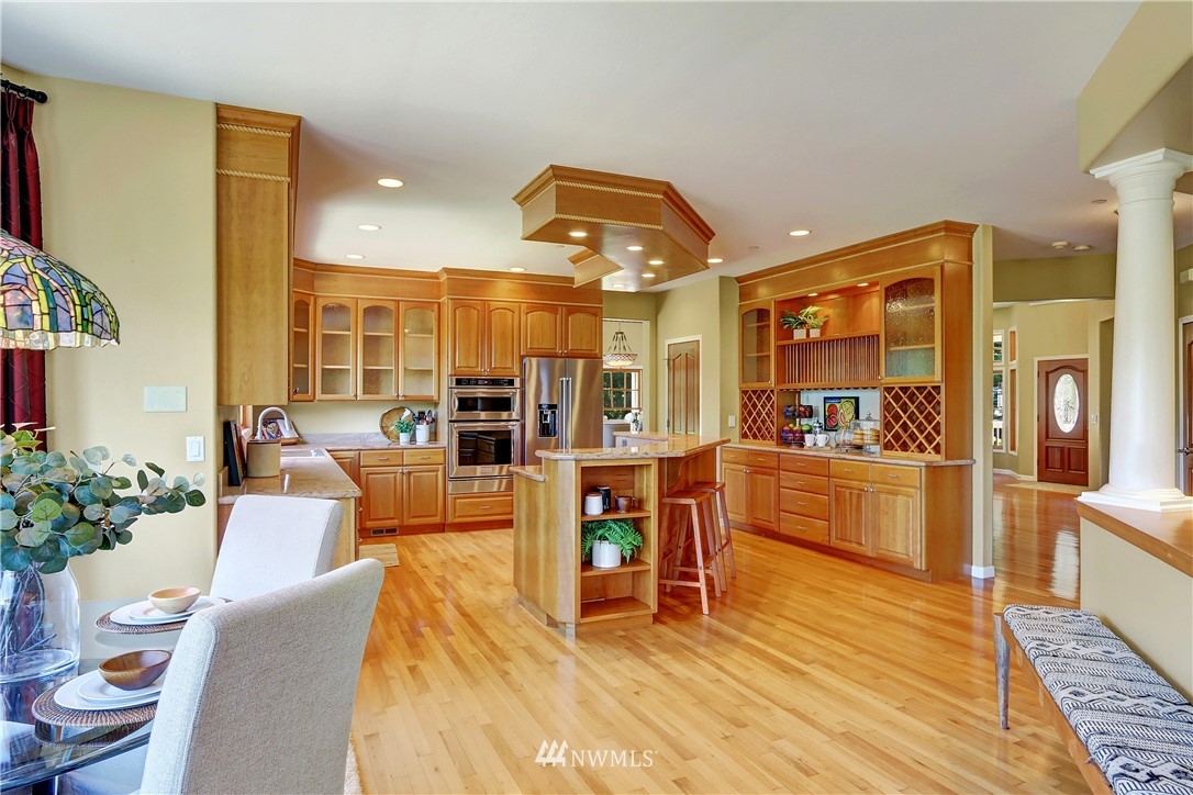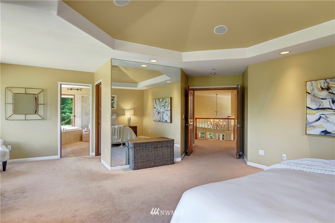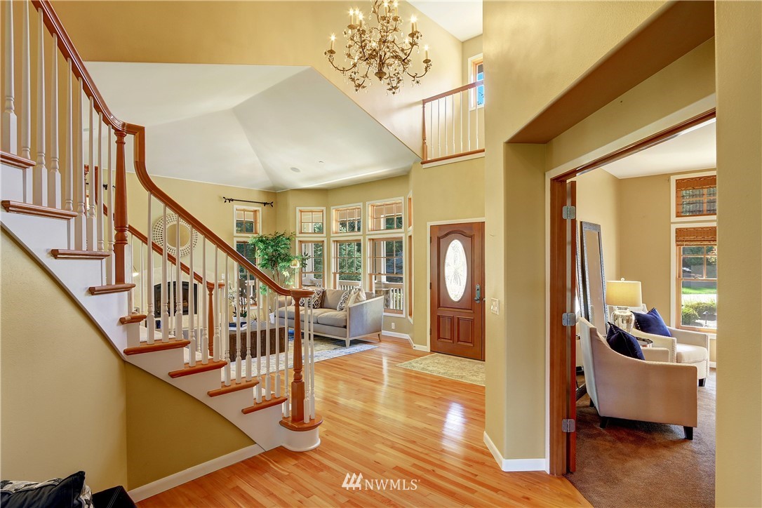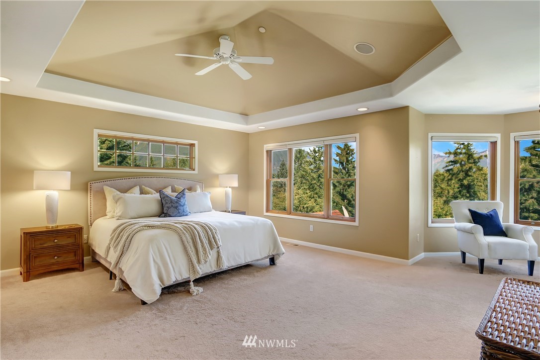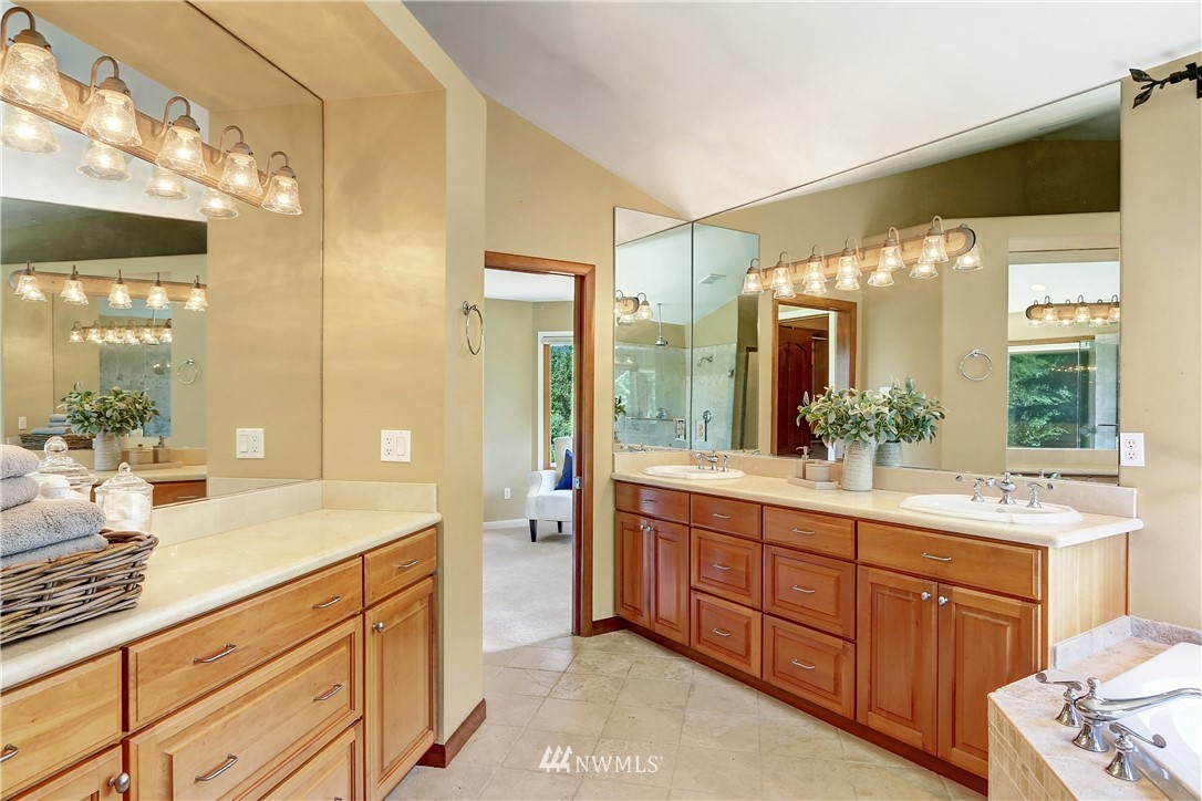 This incredible 3,740 square foot, 4 bedroom estate has 3 ensuite bedrooms on the upper level, plus a spacious main floor office/den and a big upper level bonus room. The kitchen is a chef’s dream and features a large center island, imported granite slab countertops, beautiful wood cabinetry and stainless steel appliances. Incredibly spacious primary bedroom and luxurious 5-piece bath.  Situated on a picturesque, private and serene 9.93 acres that offers breathtaking views of the Cascades. The backyard is heaven with multiple entertaining or relaxing areas. Large 3 car garage with high-end, four-post car storage lift that doubles as a service lift, turning it into a 4 car garage. This home has been lovingly maintained and is a real beauty!