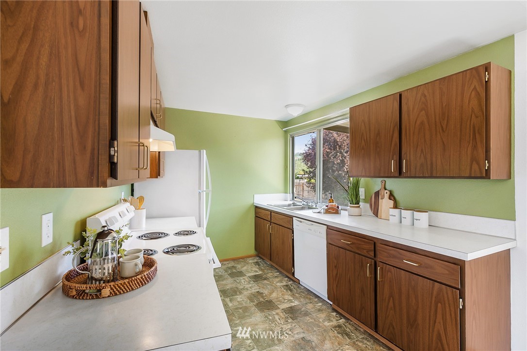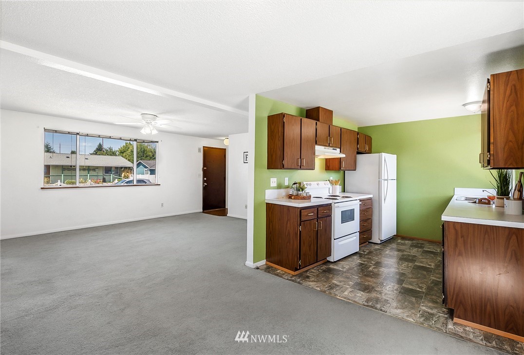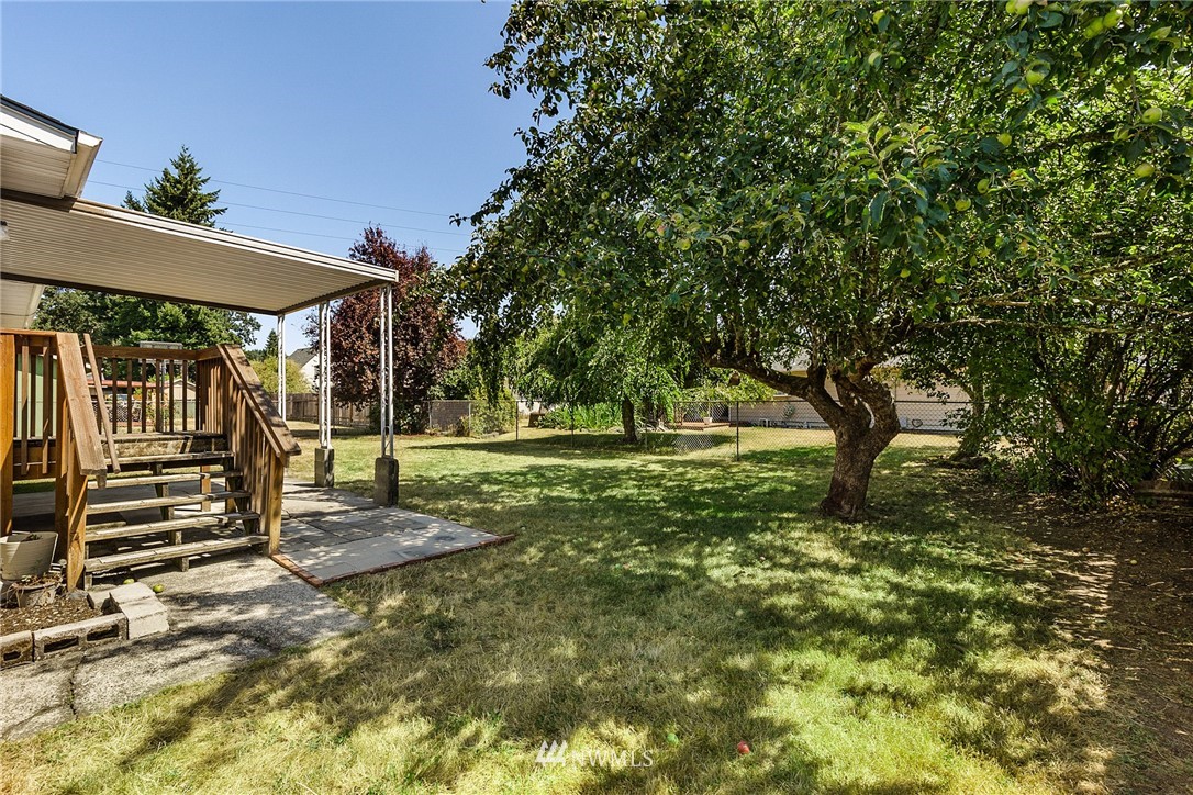 Welcome home to this well maintained 3 bedroom, 1 bath rambler. The kitchen has an abundance of cabinets for storage and clean white appliances. The living area has large windows making the home feel open and bright. Three spacious bedrooms including a master with an attached half bath. A full bath/utility room completes the home. Entertain in the fully fenced backyard on the patio or under the mature apple tree. Close to restaurants, shopping, & I-5. Easy commute to JBLM.