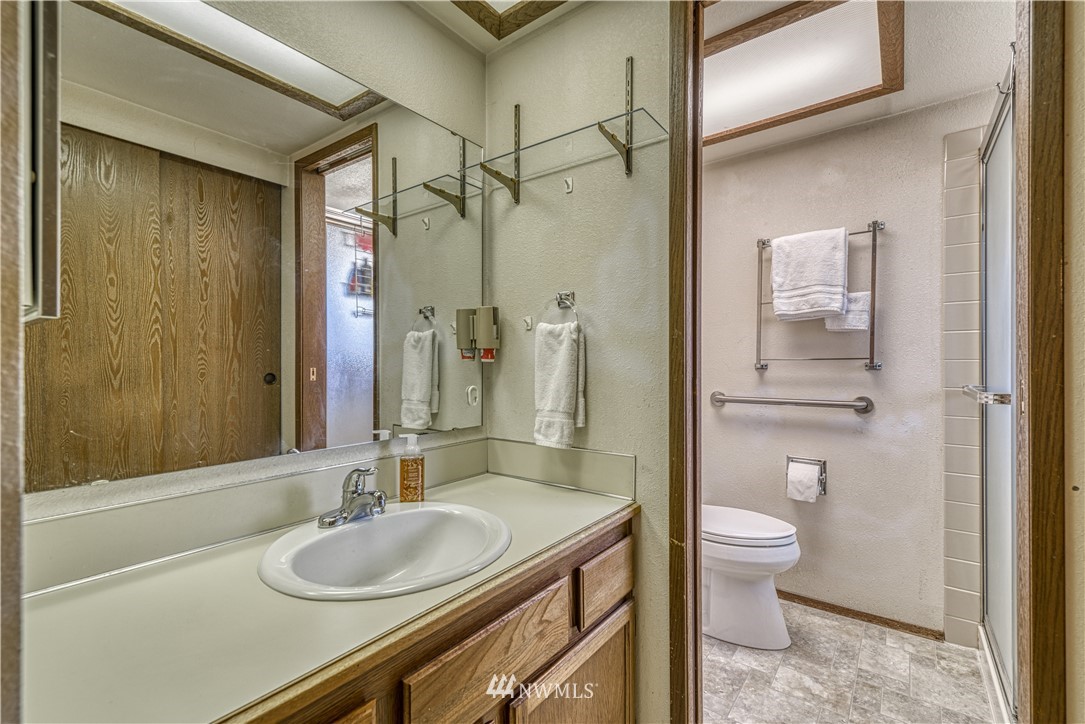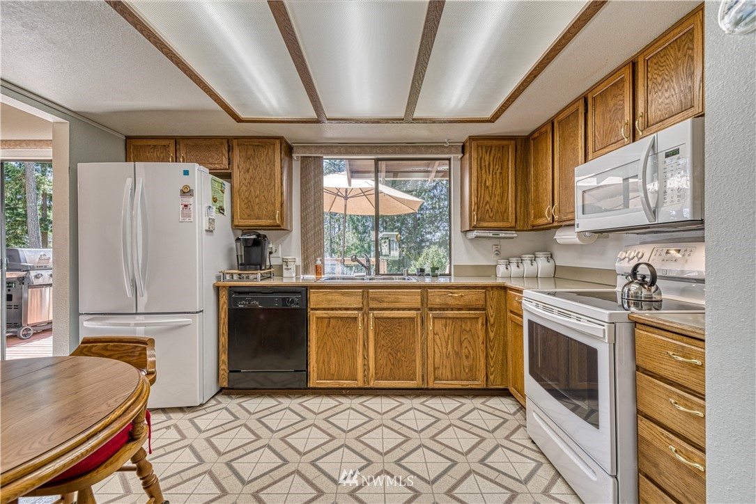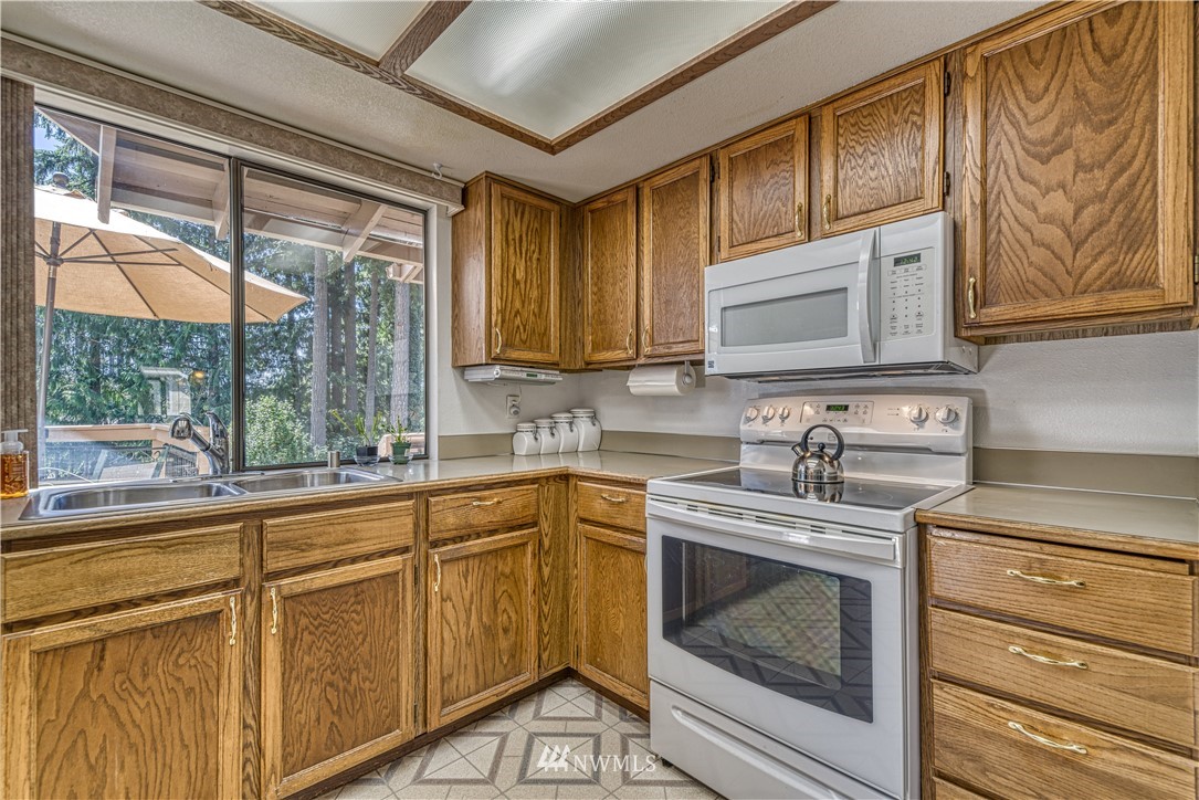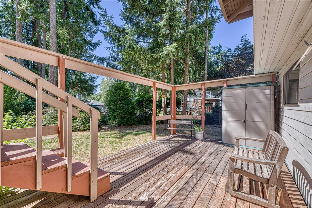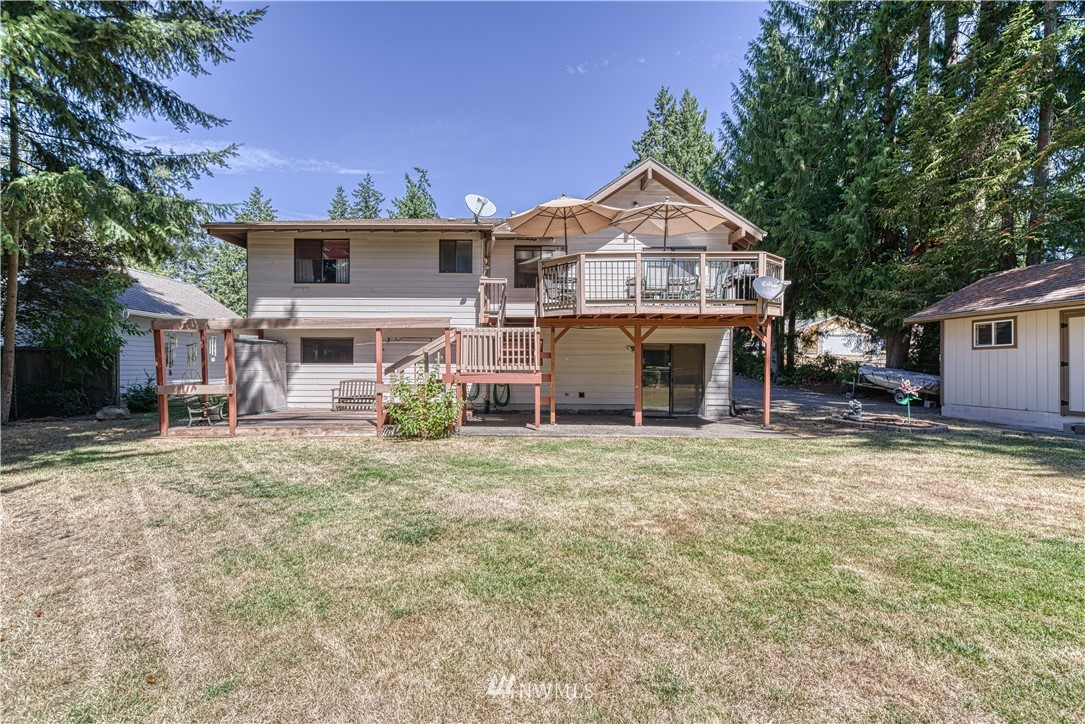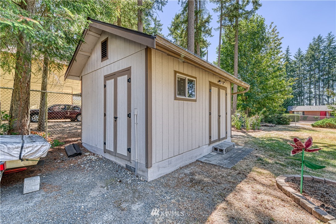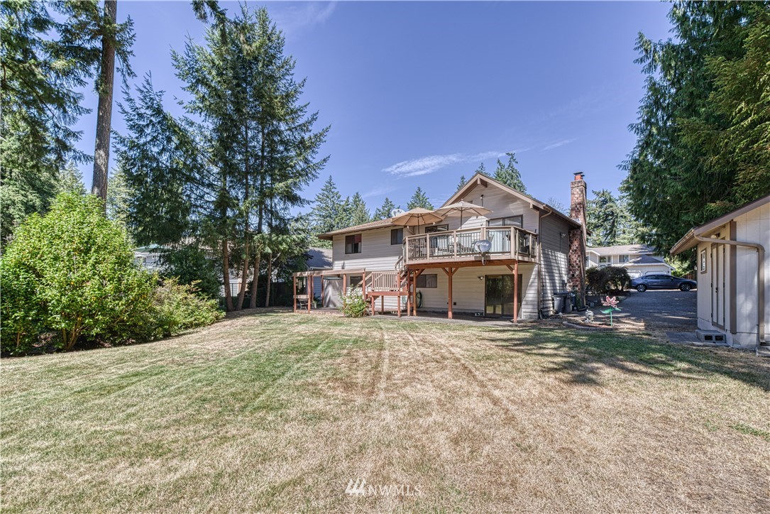 Incredible Value in Silverdale! One owner, impeccably cared for home on a quiet street that is just steps away from C.K. Middle School + C.K. High School. This is a big, solid house with a cheerful, patriotic facade on a large level lot. It features RV parking, a shop with power, attractive landscaping and a fully fenced backyard for critters, playing + gardening. Enjoy both sun and shade at this home: living room has a slider out to an entertainment deck and the large family room on the lower level has wood stove & a slider out to a shady, covered patio. Wood fireplace, wood stove + A/C. Lower level utility rm has a sink + toilet. Oversized two car garage. Easy access to schools, Costco, hospital/medical offices, navy bases + ferries.