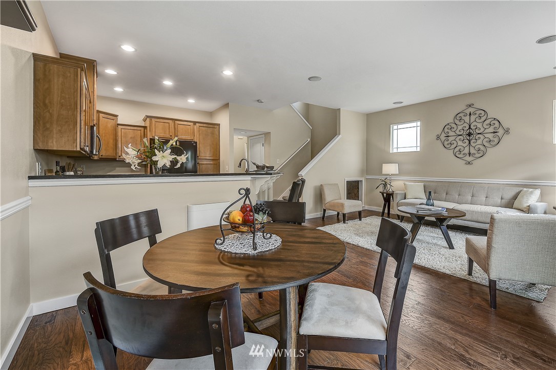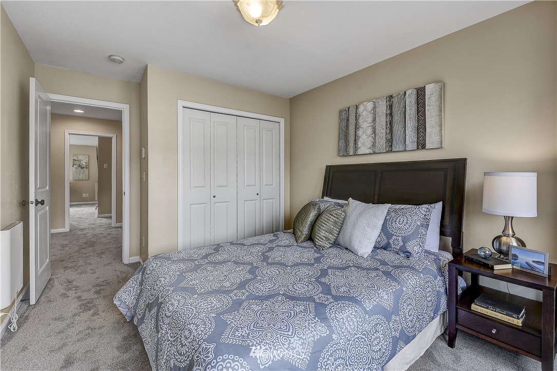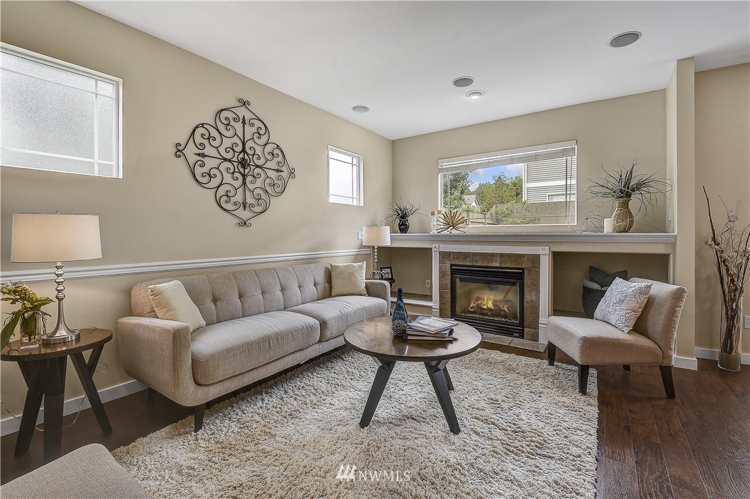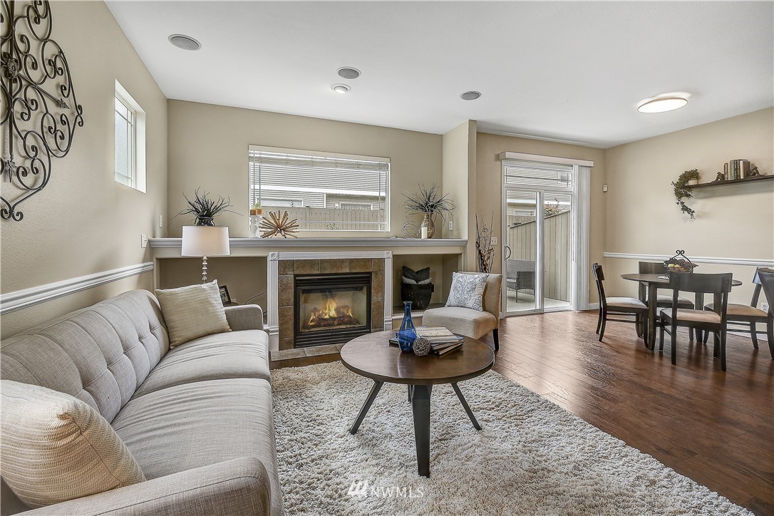 Stunning & Impressive End Unit in the Cottage Grove Townhomes! This 3 Bedroom 2.5 Bath townhome boasts wood tone flooring on the main floor, new carpets on the top floor, fresh interior paint, 10 foot ceilings, & loads of light. The spacious kitchen features granite countertops, gorgeous appliances & ample cabinets. The kitchen opens to a warm & inviting living room w/gas fireplace & dining area. The fully fenced backyard includes a large patio – perfect for entertaining. All three bedrooms are on the upper floor along w/the utility room (washer/dryer are included). Huge primary bedroom w/walk-in closet & an attached en-suite bathroom that includes a large tub & double sinks. Strong HOA w/good reserves & 2 car garage. Welcome Home!