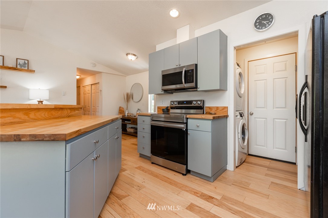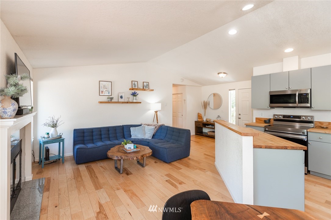 This lovely 2 bd 2 bth home at Sable Glen located in Steilacoom School District has been freshly updated, & you won't need to lift a finger! The new owners will appreciate the thoughtful updates. New laminate hardwoods throughout, new blinds, freshly painted interior & exterior. In the kitchen beautiful butcher block countertops, painted cabinets, new sink, microwave, & range. Lots of storage space and 1 car garage as well! Wood burning fireplace perfect for cozy winter evenings. The tall ceilings & number of windows make this open living area feel light, & spacious. All appliance stay including stackable W/D! The master suite has a full bath, & walk in closet. Enjoying entertaining on the deck, & the open space in the backyard! Must see!