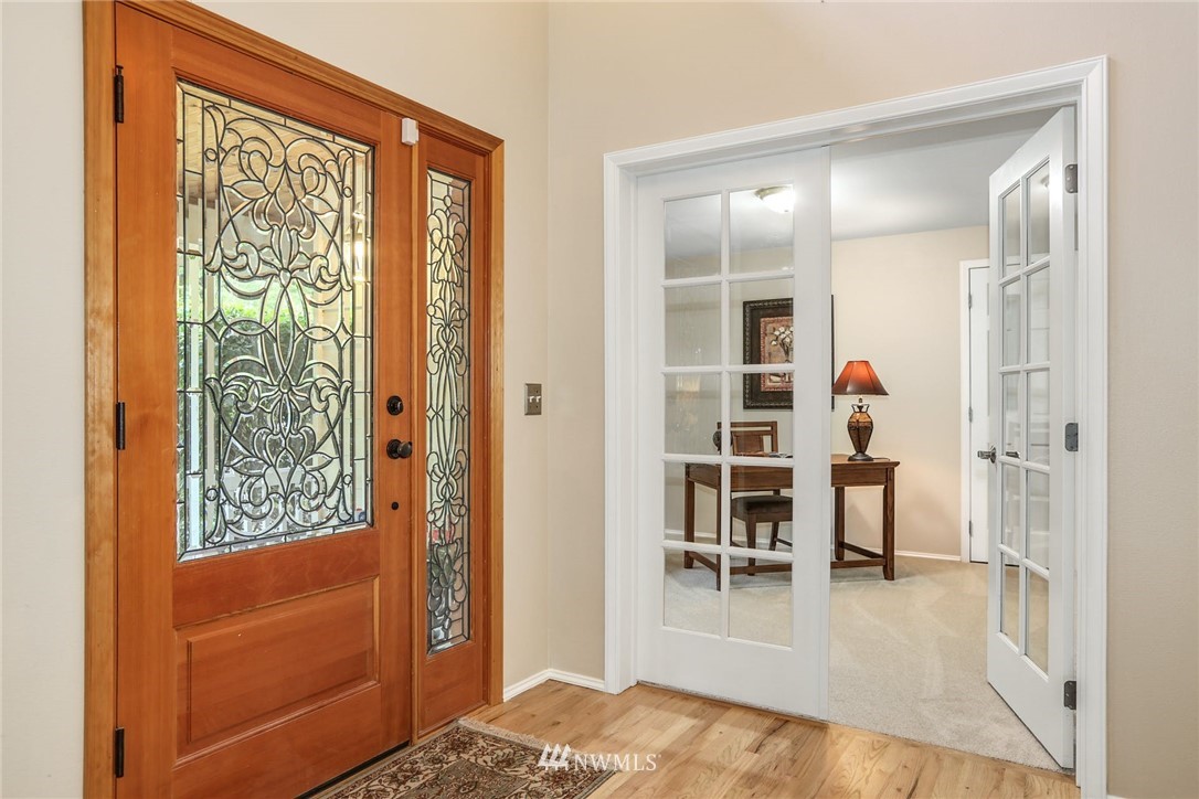 This lovely, refreshed home w/ traditional floorplan has all the rooms you want & need. The covered porch welcomes you into the 2-story entry w/ refinished hardwood flooring. Inside you’ll find an office w/ French doors on the main floor, & a formal living & dining room. The kitchen w/ pantry & newer stainless appliances flows to the nook & is open to the family room w/ gas fireplace. The sliding door off the family room opens to a large deck w/ an awesome hot tub & a level, fully-fenced yard. Upstairs are 3 bedrooms, including a 5-pc master suite w/ WIC. You’ll appreciate the newer roof, hot water heater, refinished hardwoods, brand-new carpet & fresh paint throughout. Quiet, private, park-like lot is the perfect setting for entertaining.