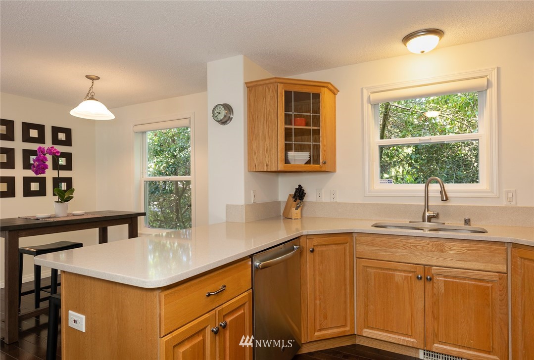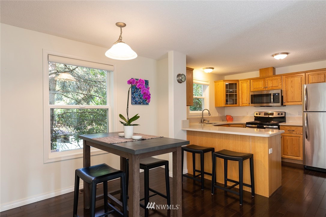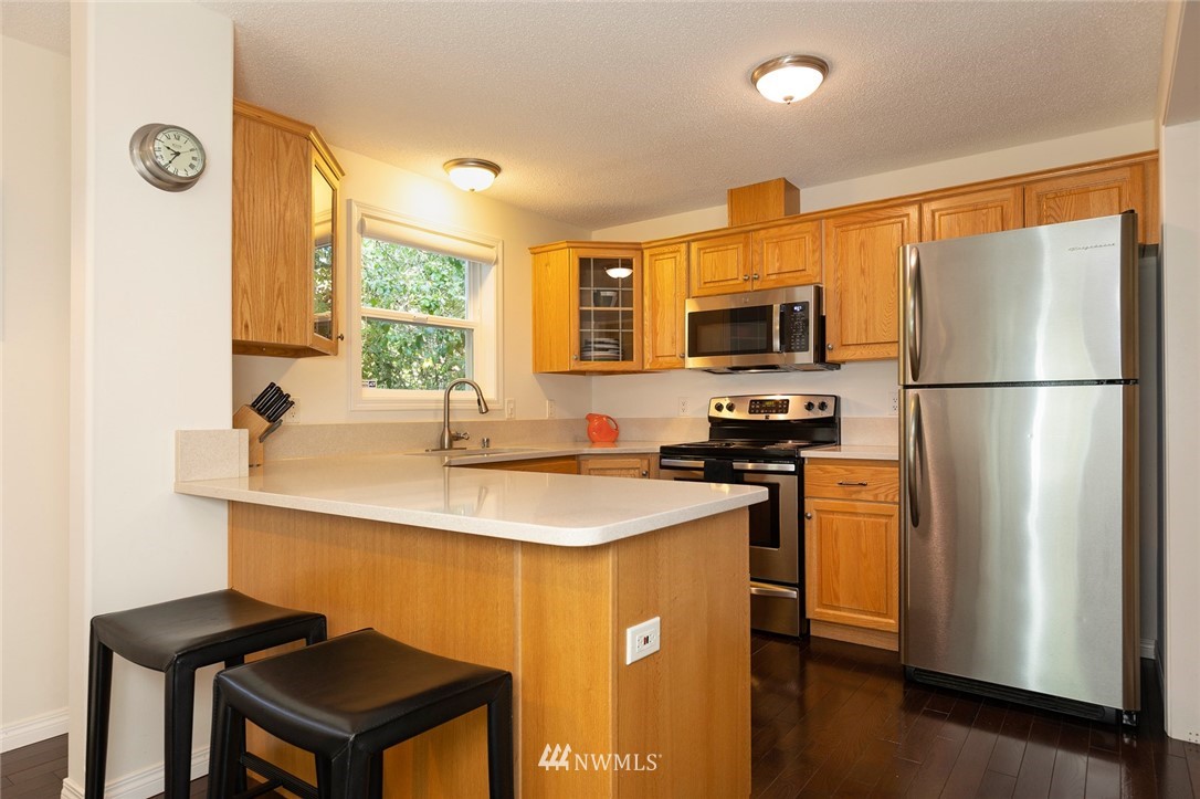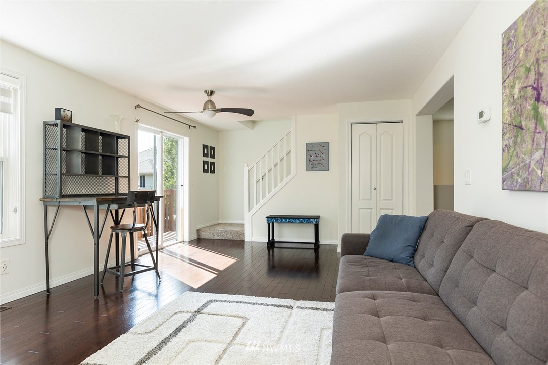 Live large in this delightful and spacious 1,994 square foot townhome which has been thoughtfully customized for the most discerning. Three bedrooms up include a full master suite, upgraded laundry and a second full bath. Modern open kitchen with Silestone countertops, stainless steel appliances and custom pantry. Cozy living room with gas fireplace and rich walnut finished hardwood floors. Custom blinds and closets installed throughout. Extra bonus room/workspace includes separate adjoining half bath. Two car garage. Rapid Ride coming just one block away in 2022. Easy commute to Seattle and short jaunt to great shopping such as PCC, Trader Joes and Target.