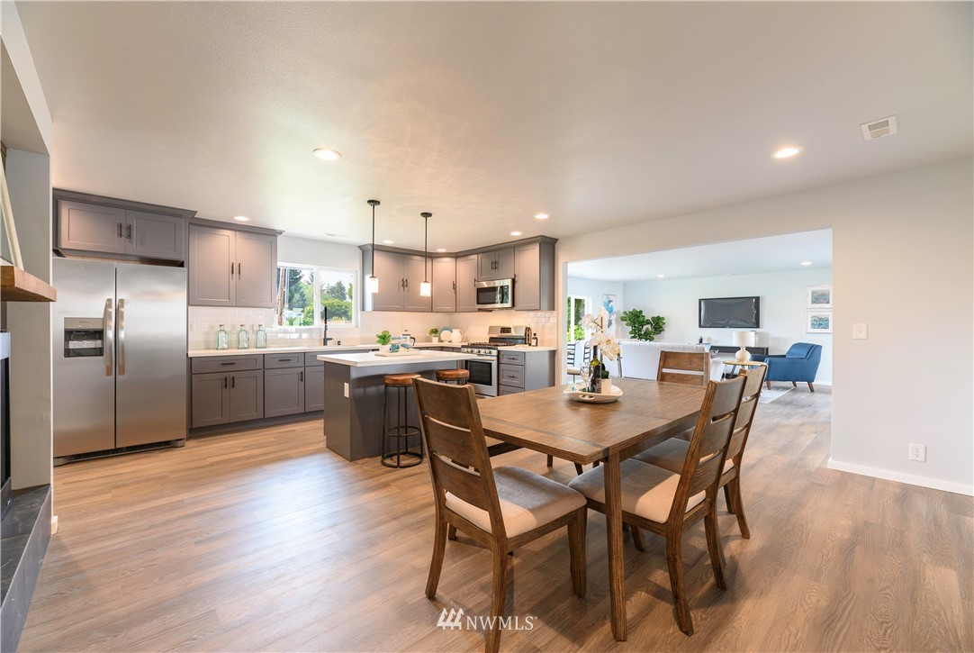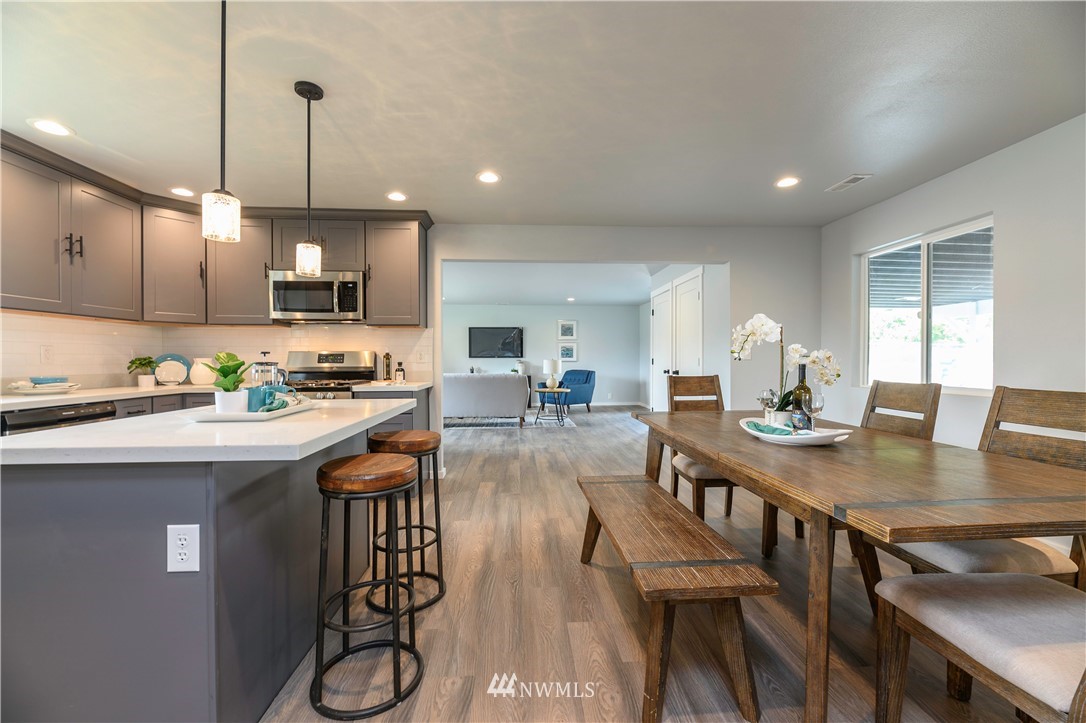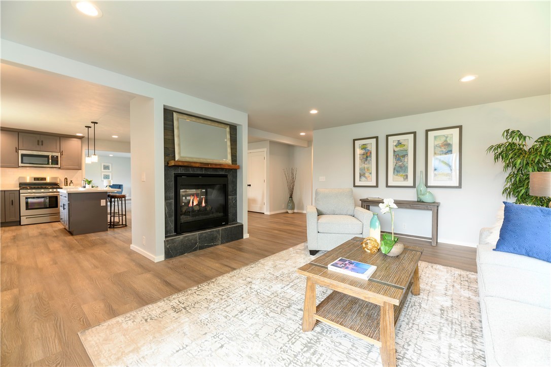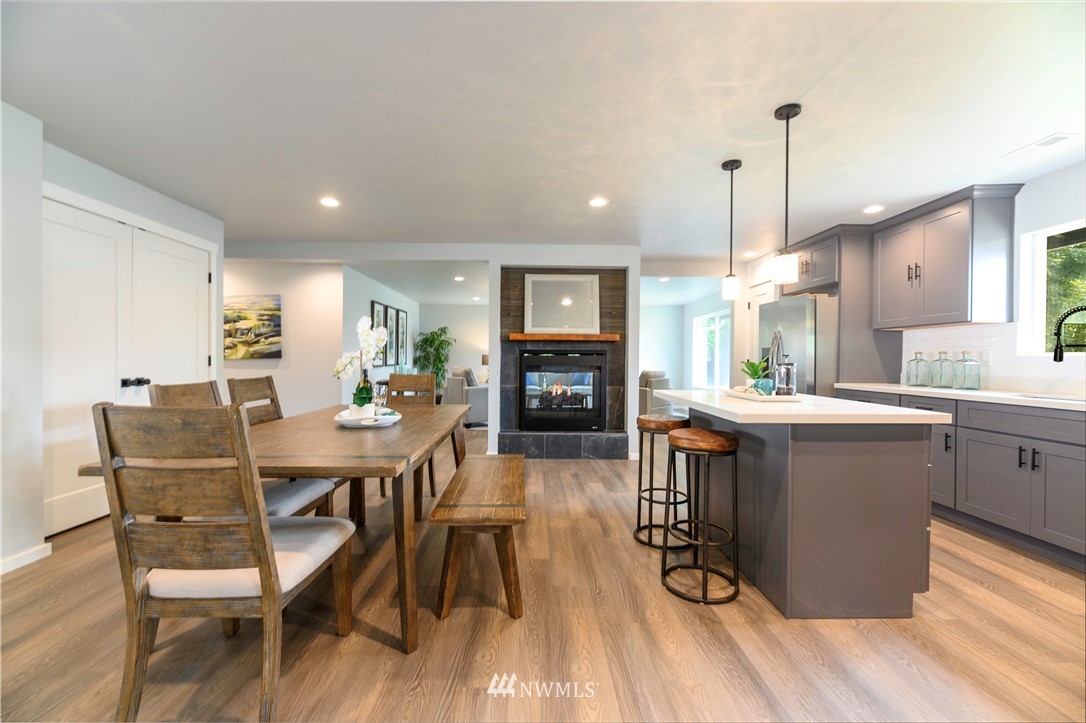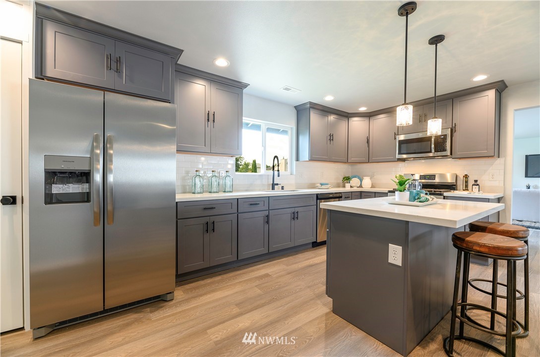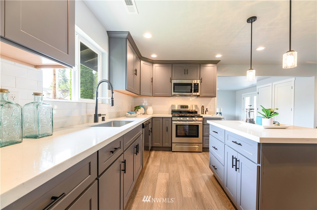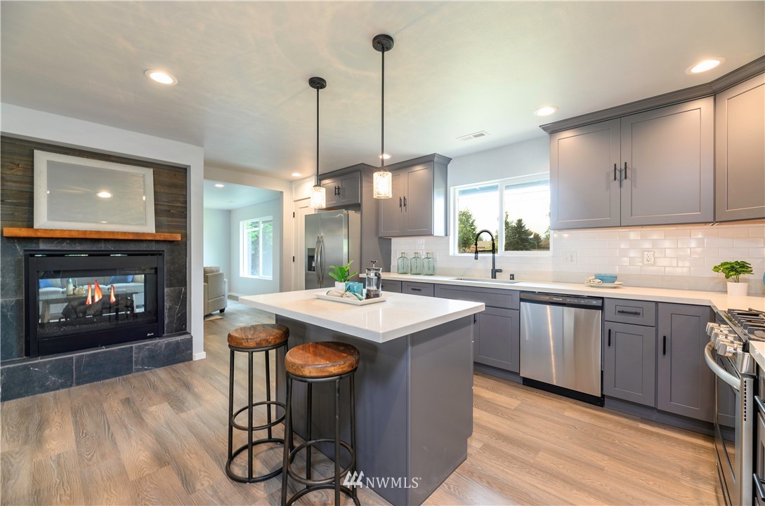 Better than new construction! This solid built home has been completely remodeled and updated for you!! High end finishes make this home simple to LOVE! Enter into an open living area with an amazing DOUBLE-SIDED fireplace. The brand new dream chefs kitchen has all new cabinets with tons of space. White quartz counters and all new stainless appliances. The kitchen opens to the giant family rec room. This home just flows with an easy living floorplan. New vinyl planked floors and carpet throughout. 3 large bedrooms including owners suite with full bathroom attached. Outside you will find a large .38 acre corner lot fully fenced with large yard space. 2 bay SHOP + beautiful covered outdoor entertaining area! New windows and hot water heater!